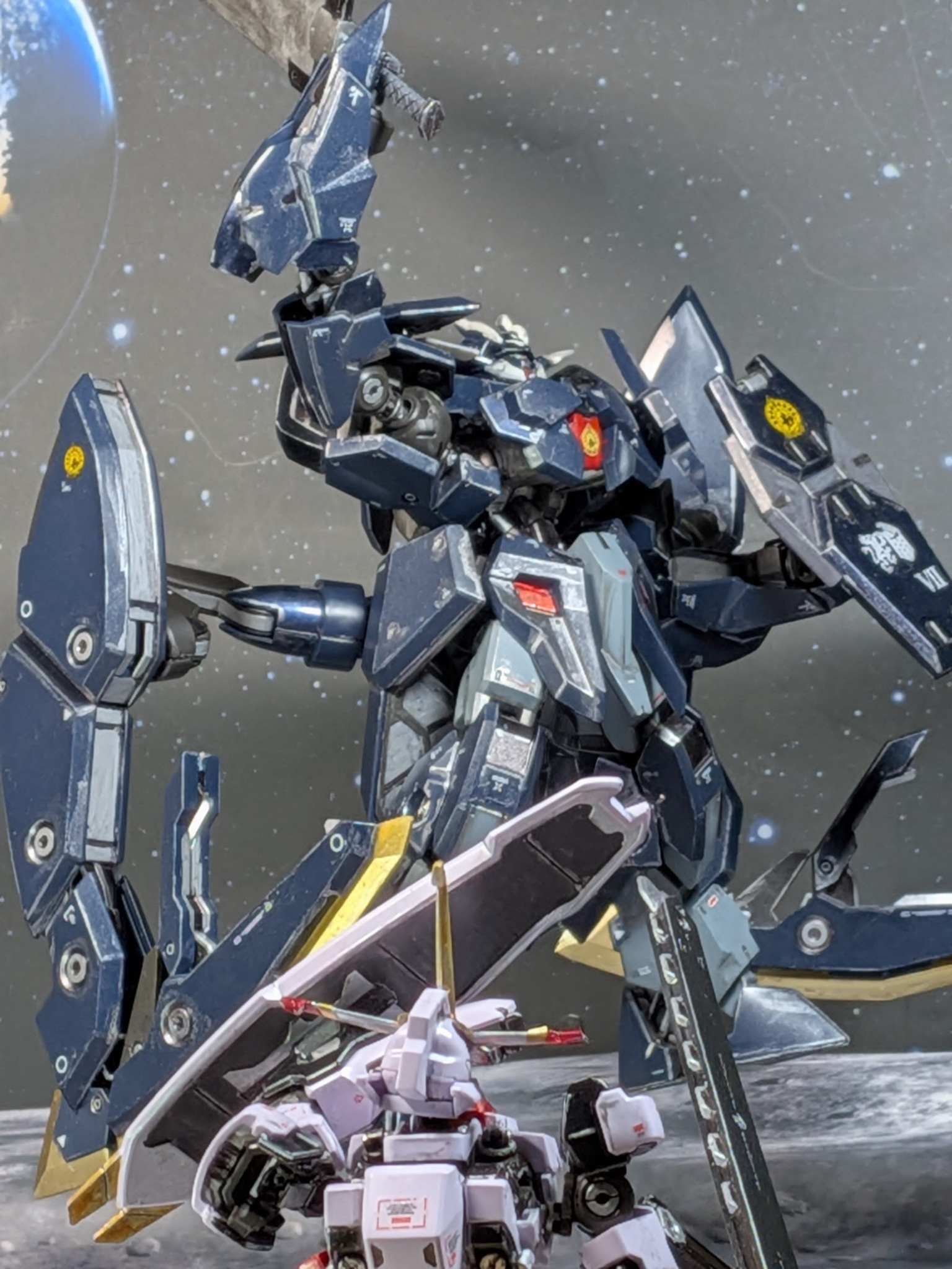 こんだけでかい盾が二枚もあるから盾は要らないのですが、見栄えが良いので持たせちゃいました(gundam-kao7)テヘペロ