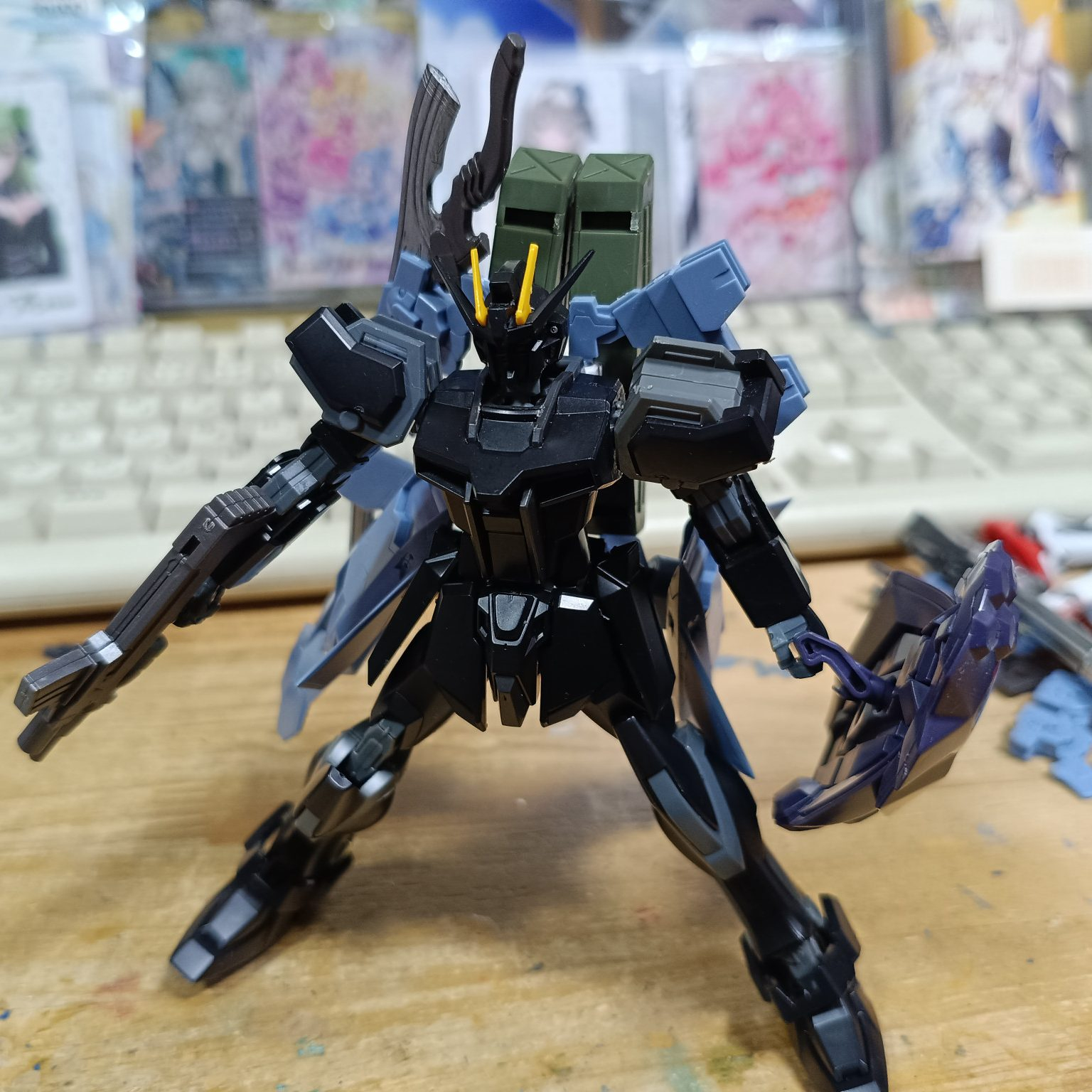 なるほど(;・∀・) ダークダガーくん確かにいましたね ジャンクBOXですぐに組み立てれたストライクがだいぶ前に組んだエコプラのこのストライクだたので これを少し改造しました まあ後ろのスカートに穴を空けて不知火のジャンプユニットであってたかな?あれを付けれるように改造しましたなおキラヤマトと白銀 武の声ネタの改造ですね