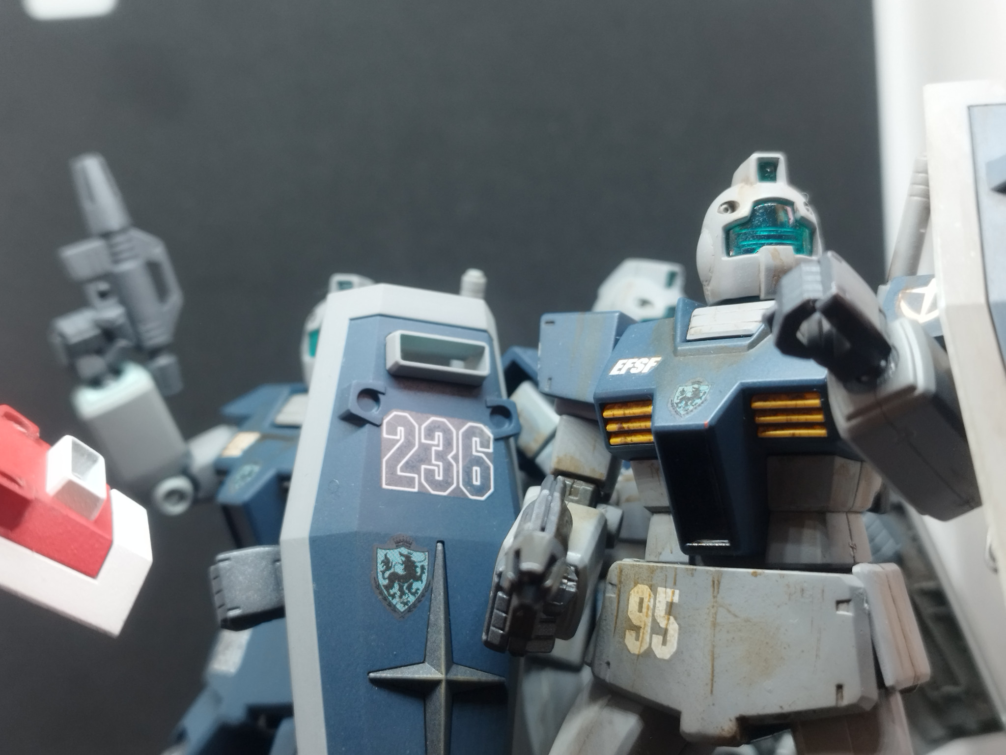 …とまぁ積んでたジムを3機まとめて作ったらこうなりました。番号は汎用品を。あとは適当にデカール貼り付けました。