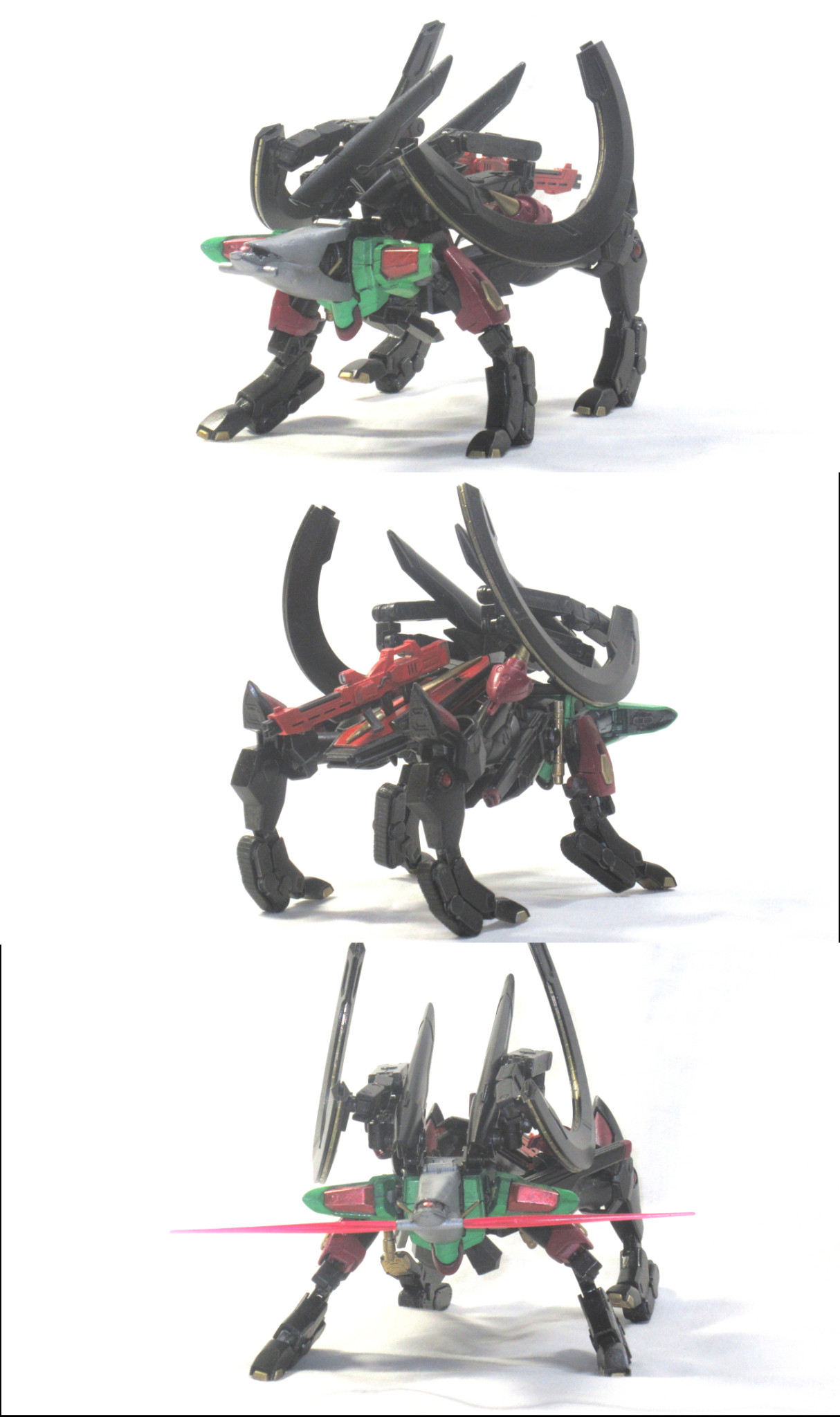 ライジングフリーダムの機首を途中で切り飛ばしてバクゥの頭をくっつけてパテで段差を均して……で作ったバクゥヘッド。