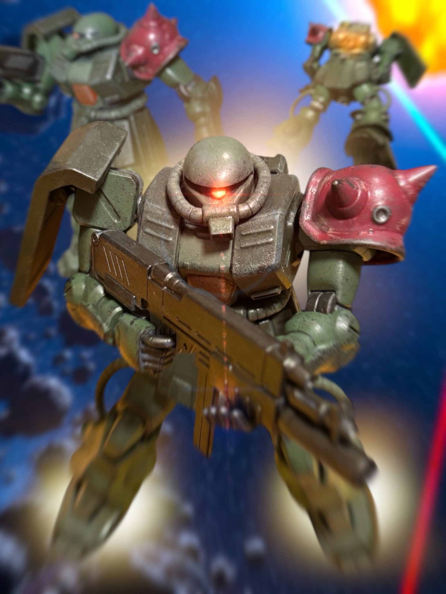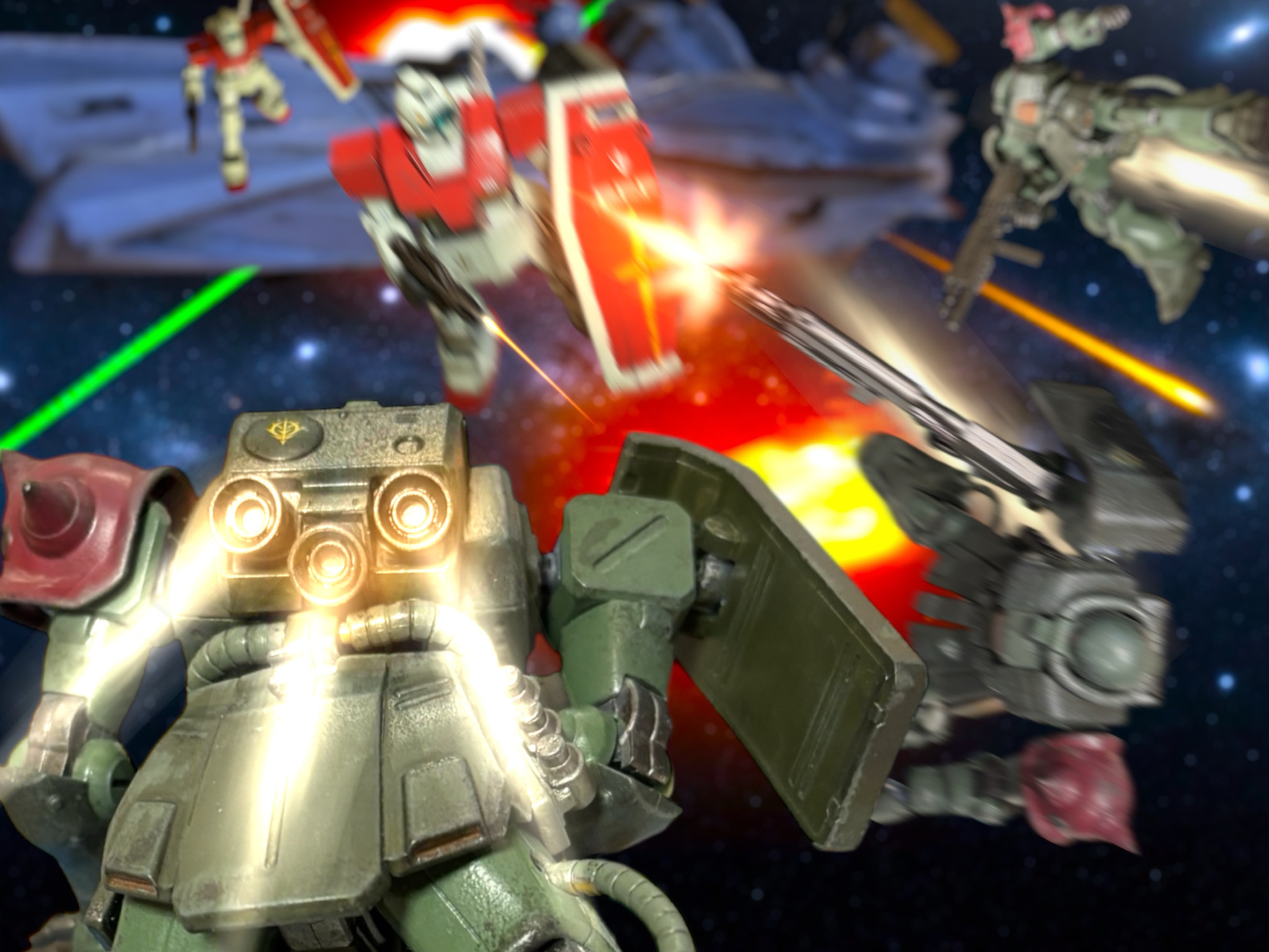 紅白戦第2弾は、シャドウファントム第2部に登場し、中東から撤退した若いジオン兵たち、アビー、マイロ、イアンの後日談です。むせる色味にしたかったのですが、どうでしょうか?笑