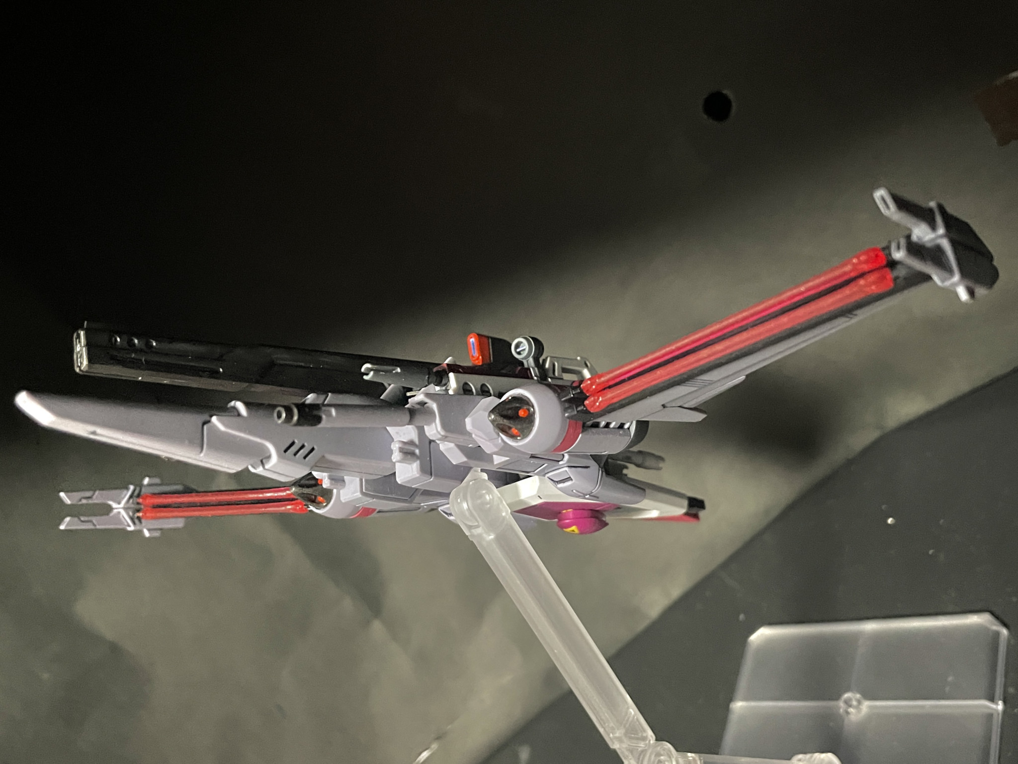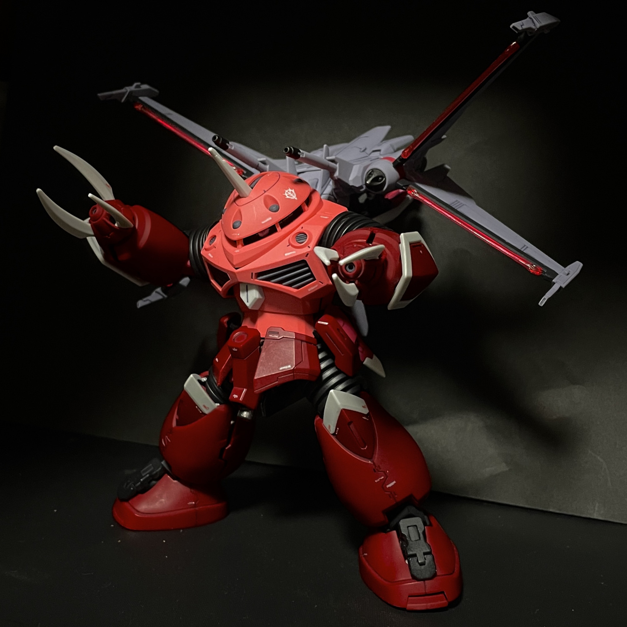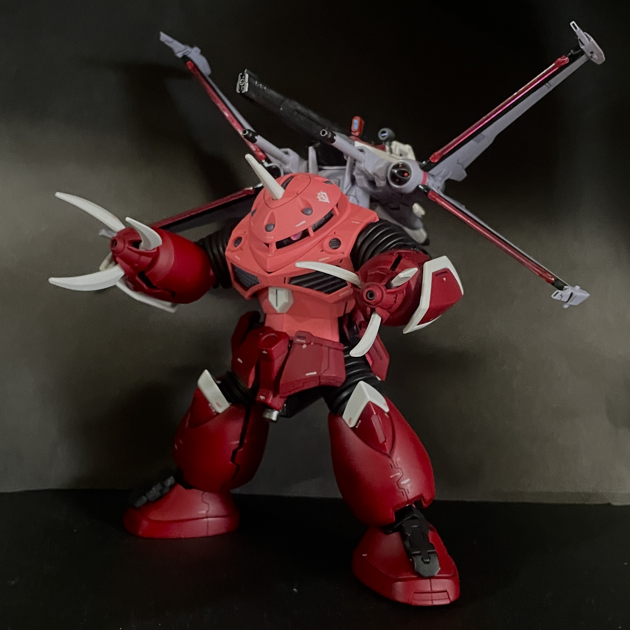 爪も赤いガンダム仕様でガングリップ型にしたアダプタを持たせて挟み込み