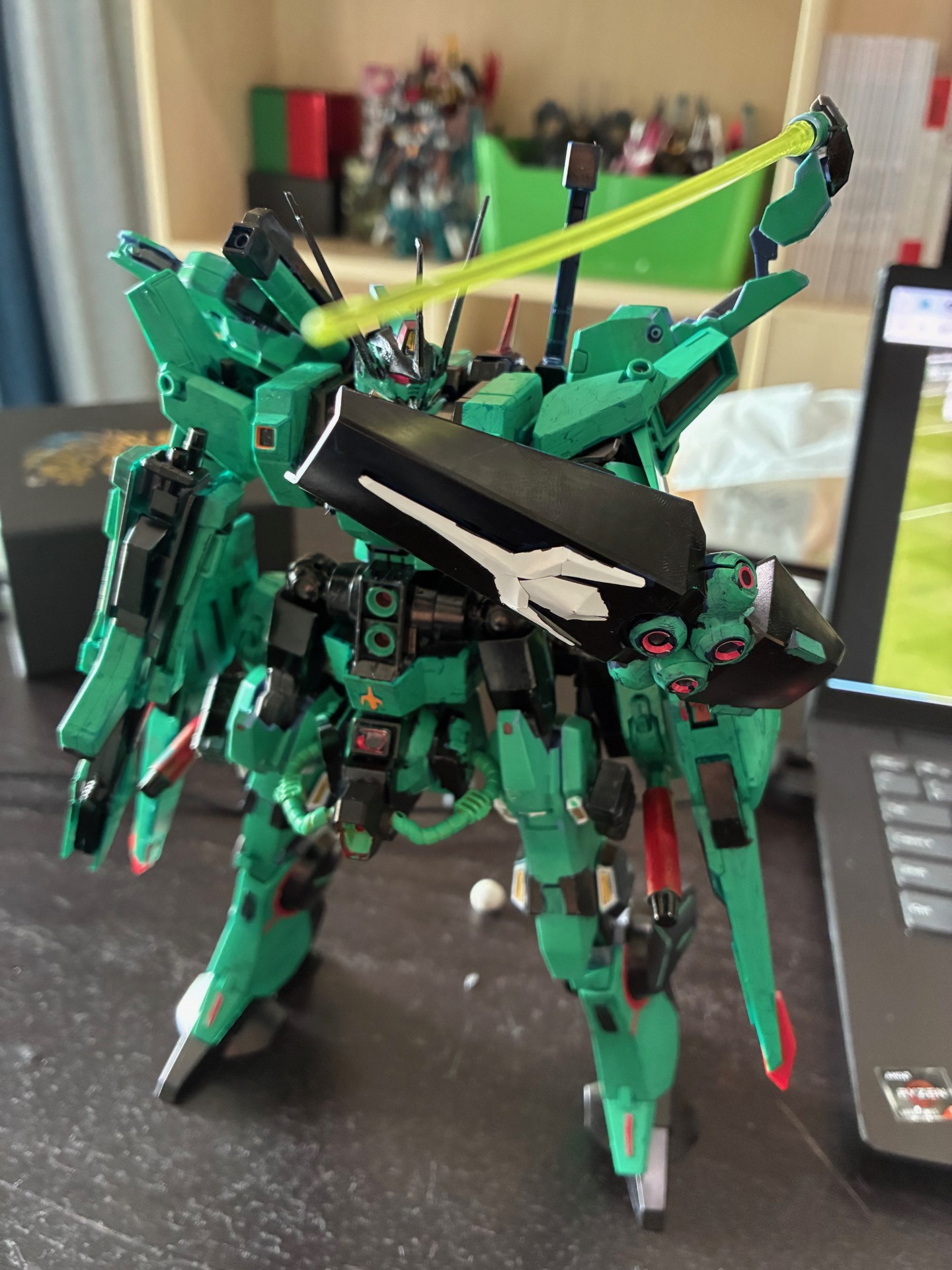 主に遠距離を意識した武装ですが、合計6個の腕(バックパックにトーベンウルフの腕を装備)で近距離でも対処できる。でもそのため操縦の難易度も高く、強化人かニュータイプがパイロットしか務めない、という脳内設定。