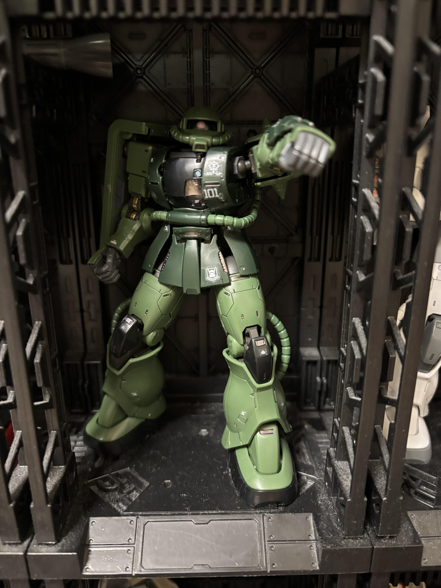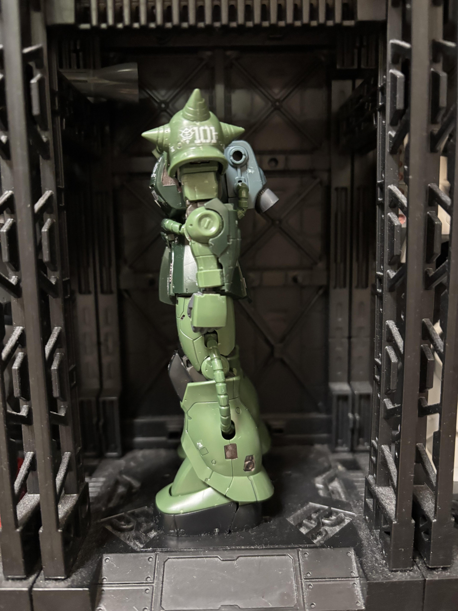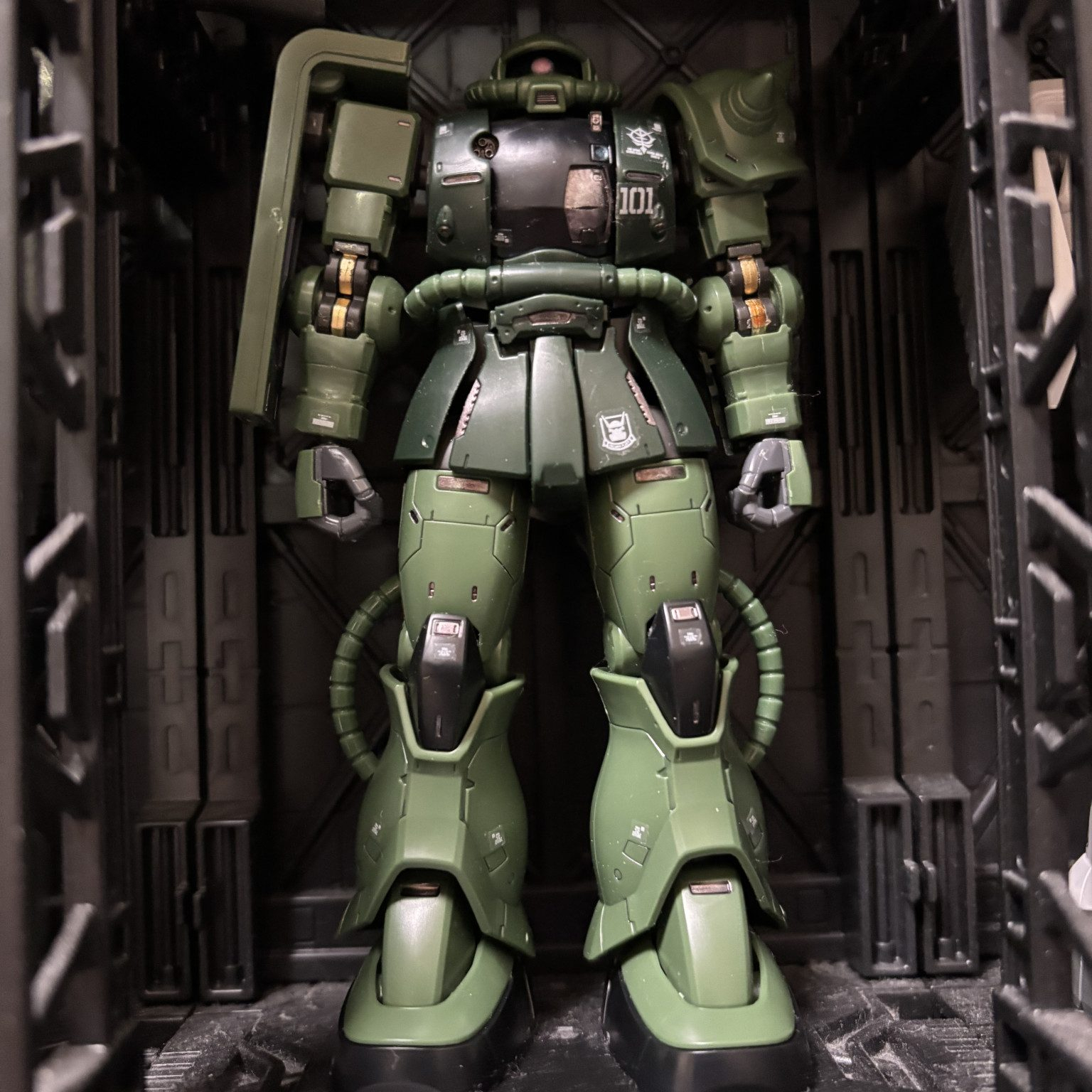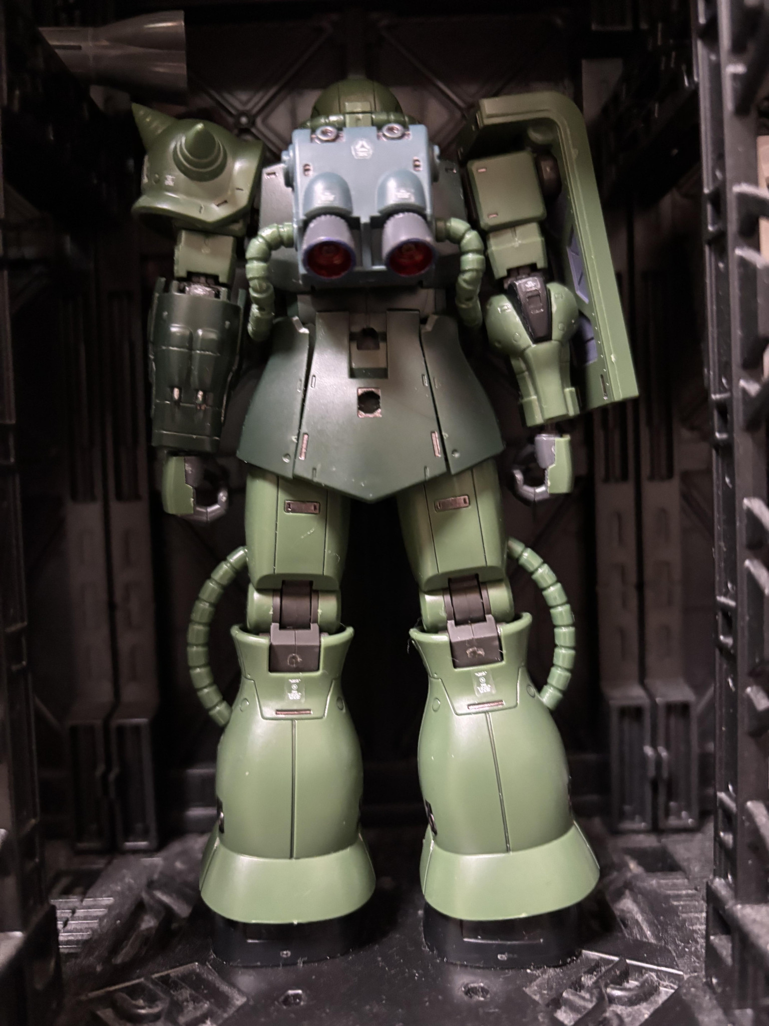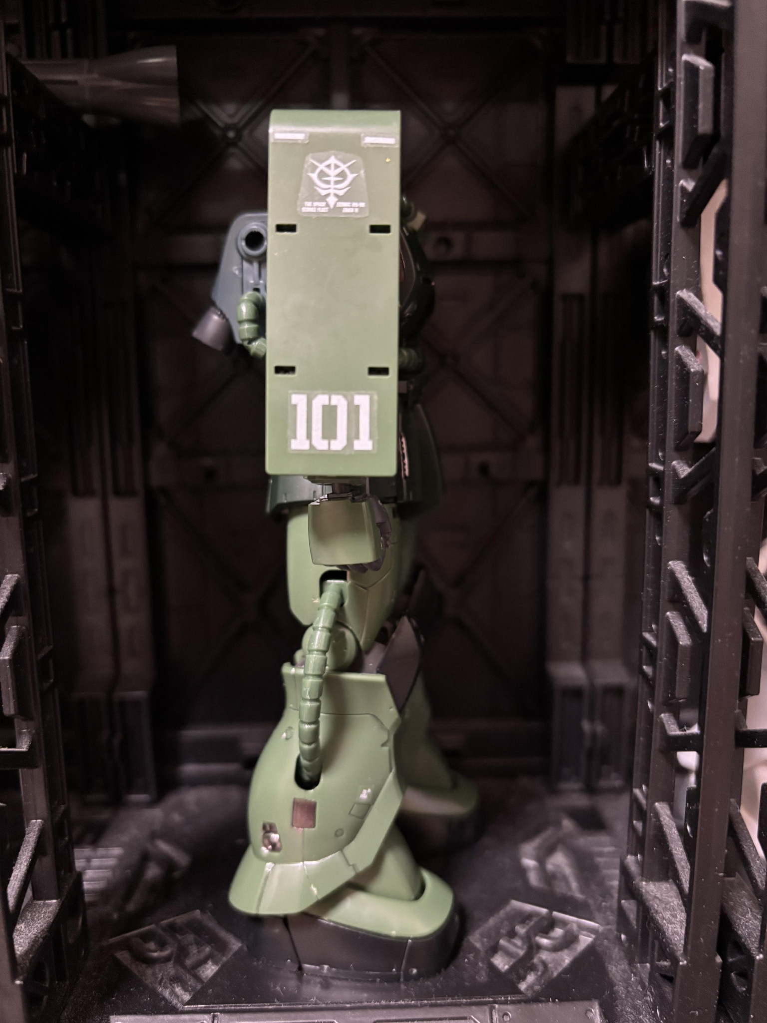 装備はシャアのザクオリジン盤のバルカン二門仕上げ(小1になった息子のザクです)名前は白ザクくん