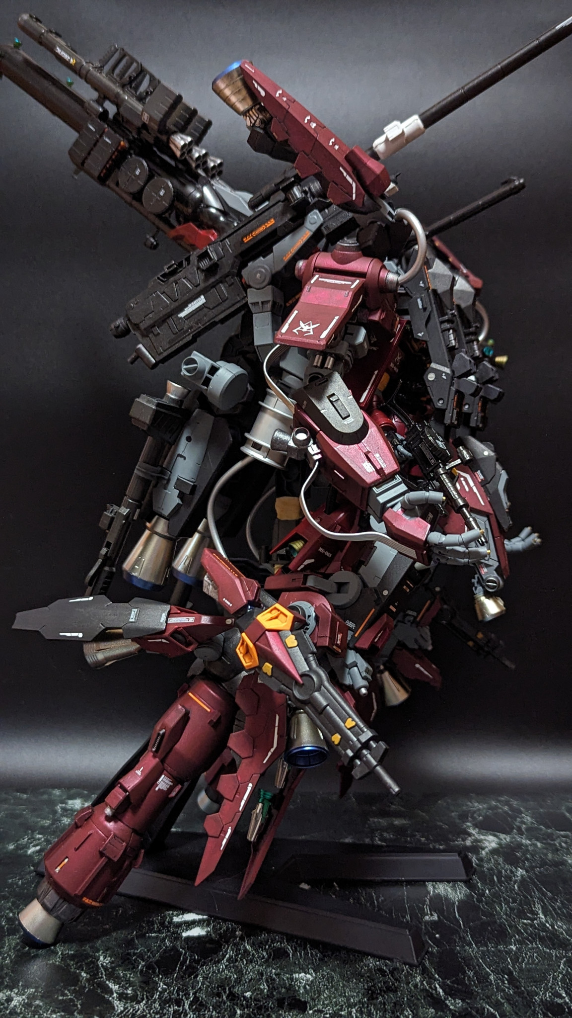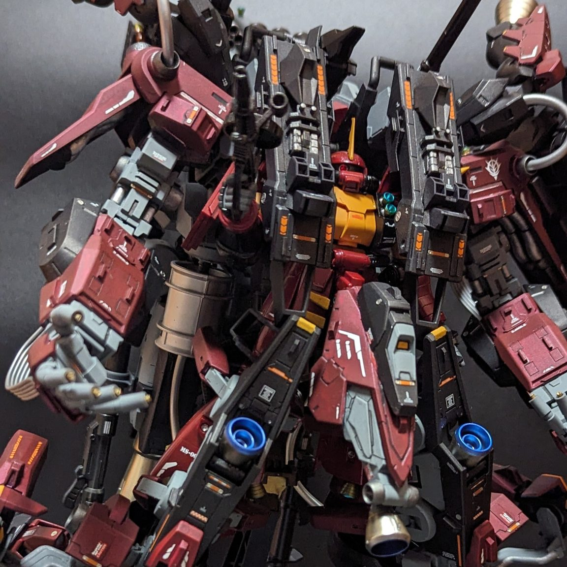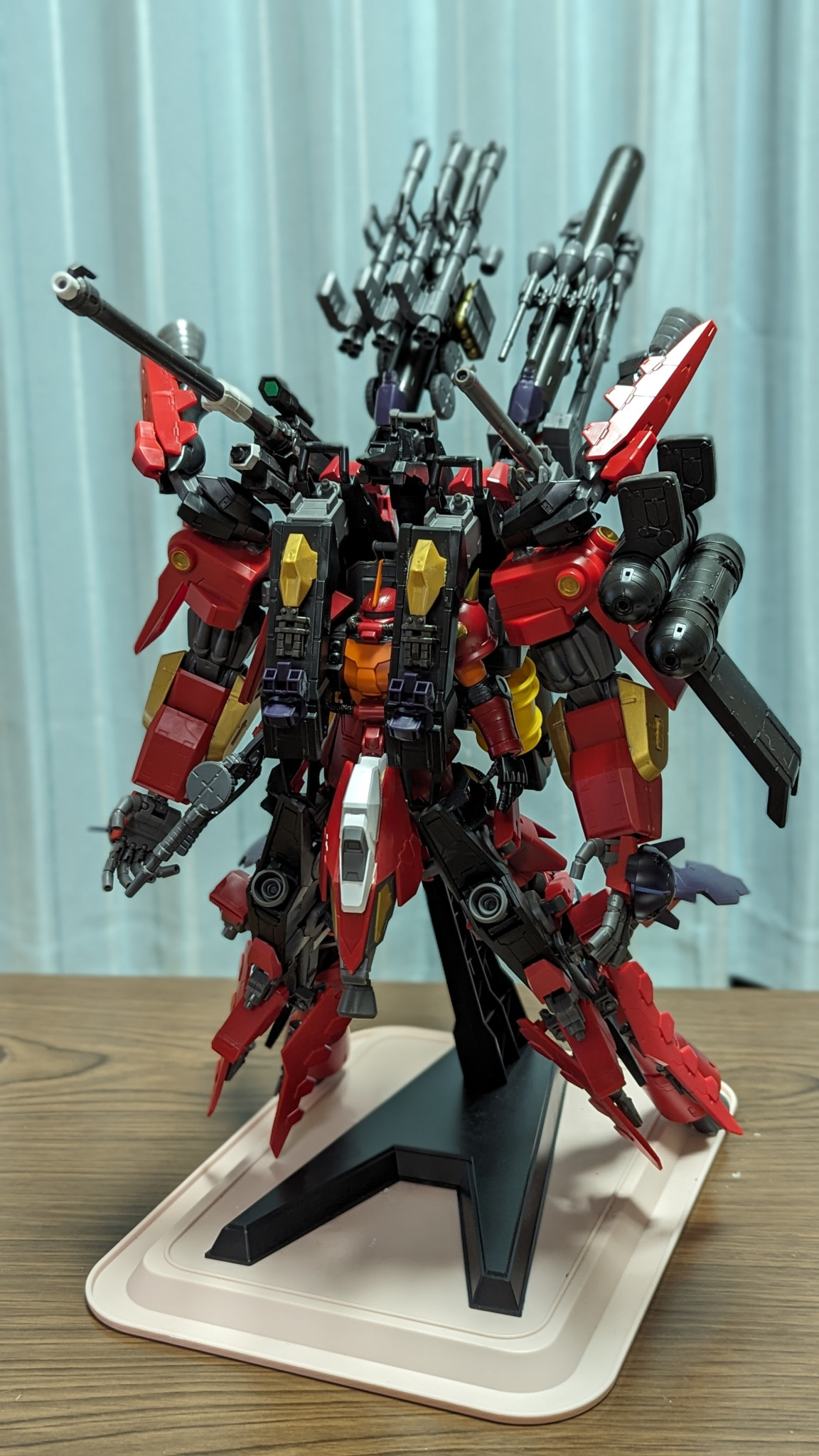 コメント失礼します🙇凄まじいほどのメカざんまいですね!このマッシマシの姿で寿司ざんまいされたら、逃げるしかありません😁全身の武装も、左肩のプロペラントタンクもしびれます😝カッコいいです!