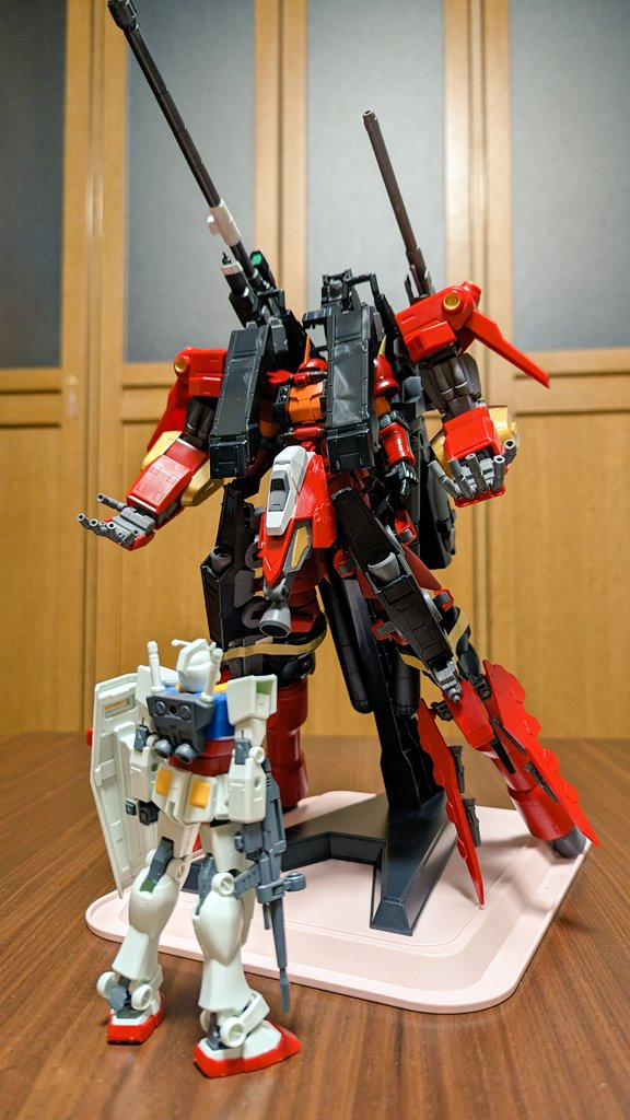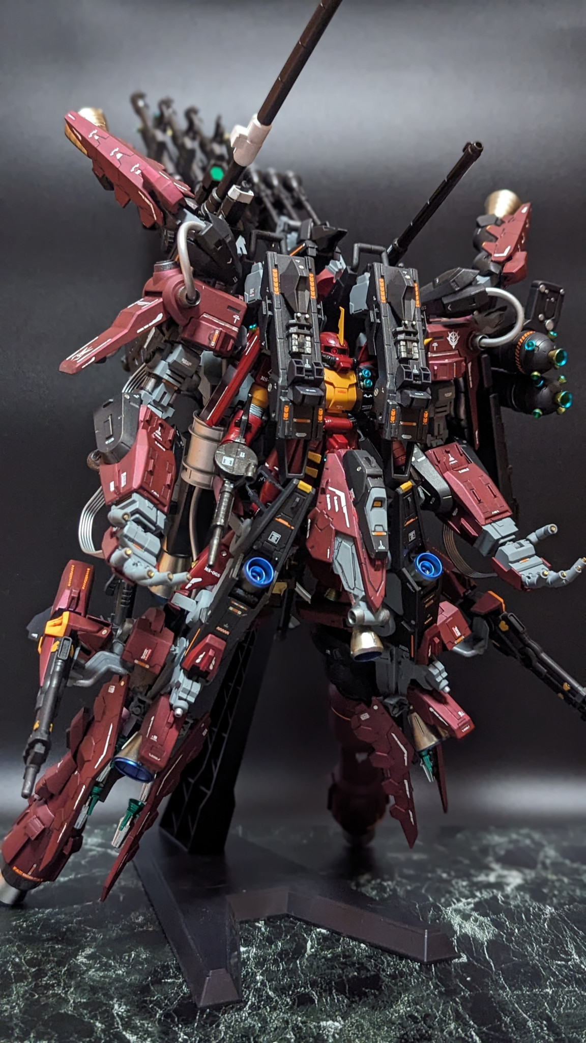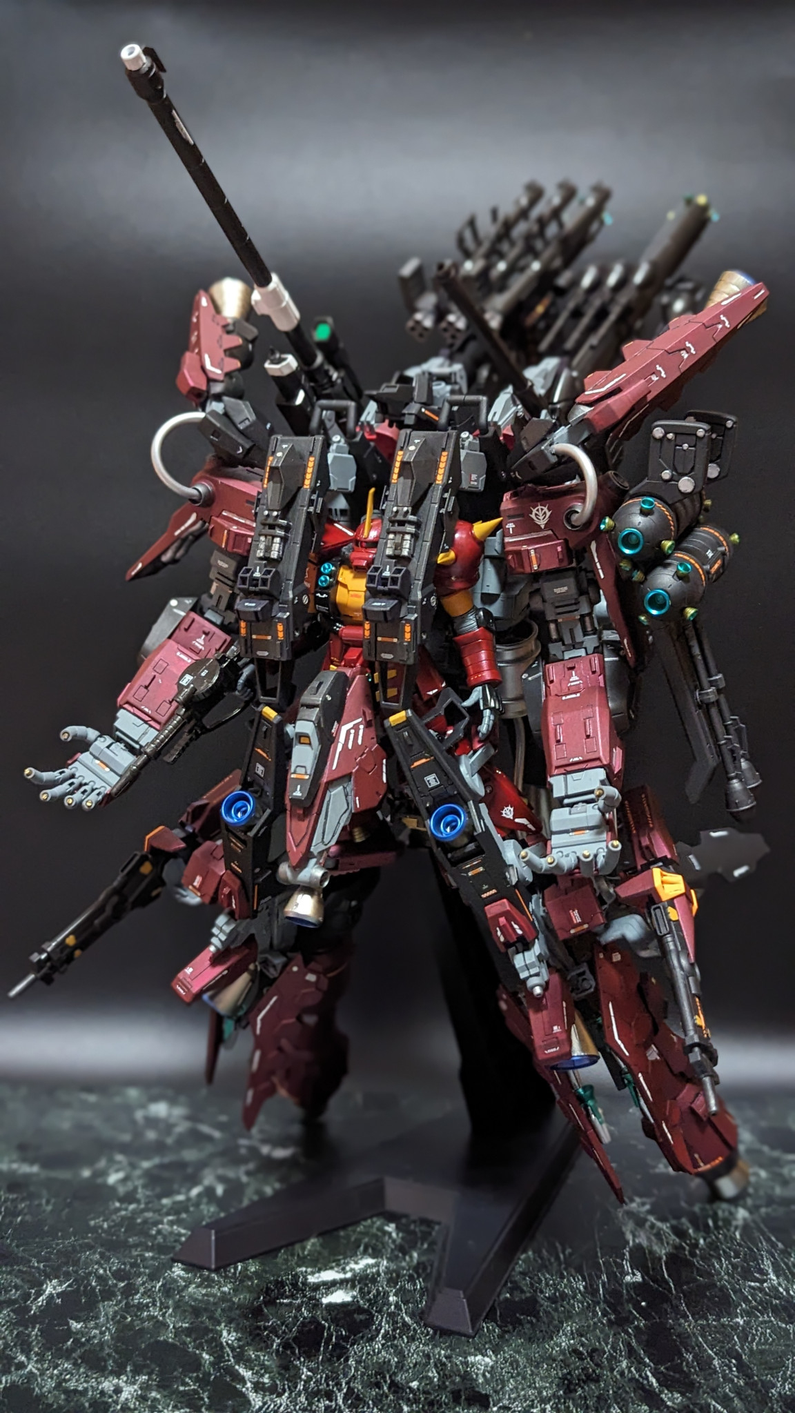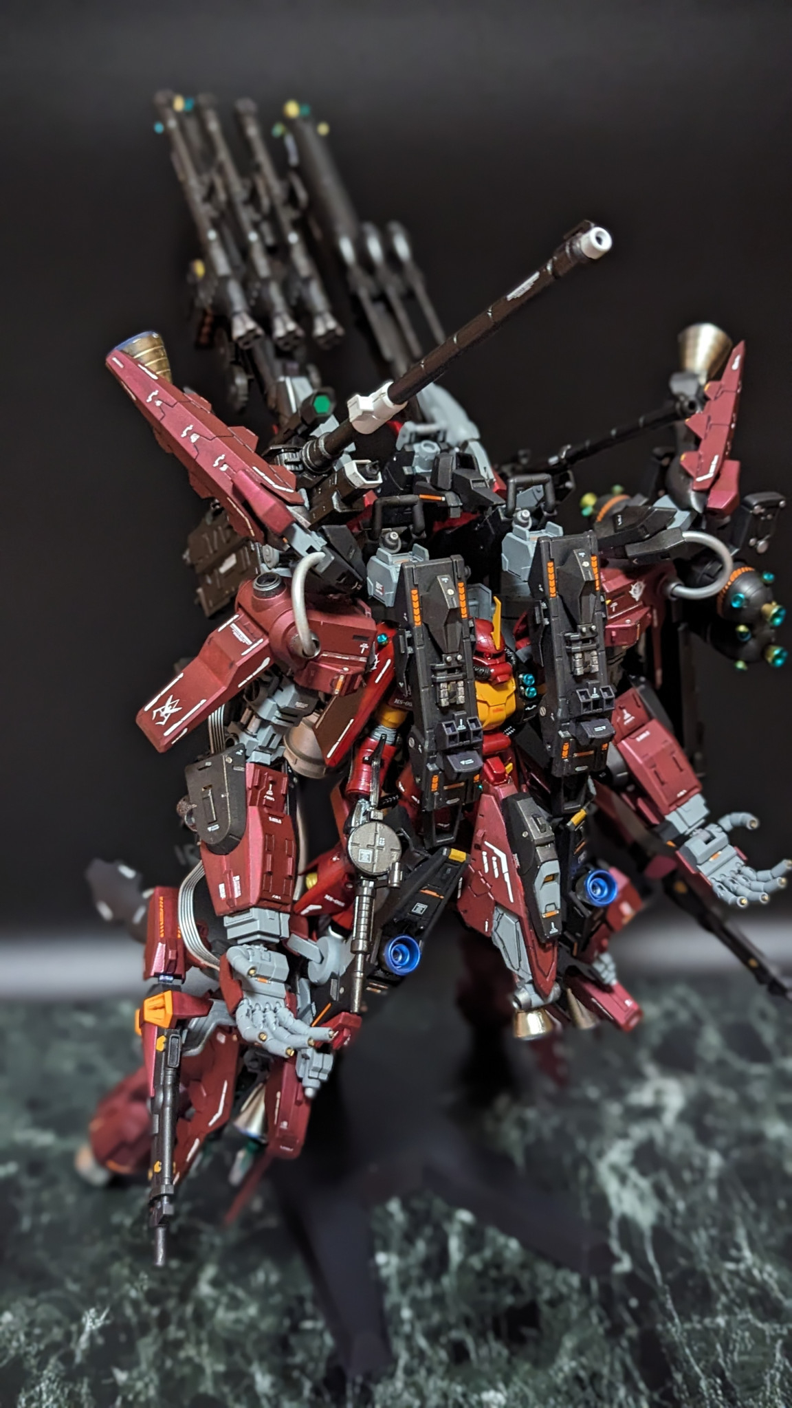 コメント失礼します🙇凄まじいほどのメカざんまいですね!このマッシマシの姿で寿司ざんまいされたら、逃げるしかありません😁全身の武装も、左肩のプロペラントタンクもしびれます😝カッコいいです!