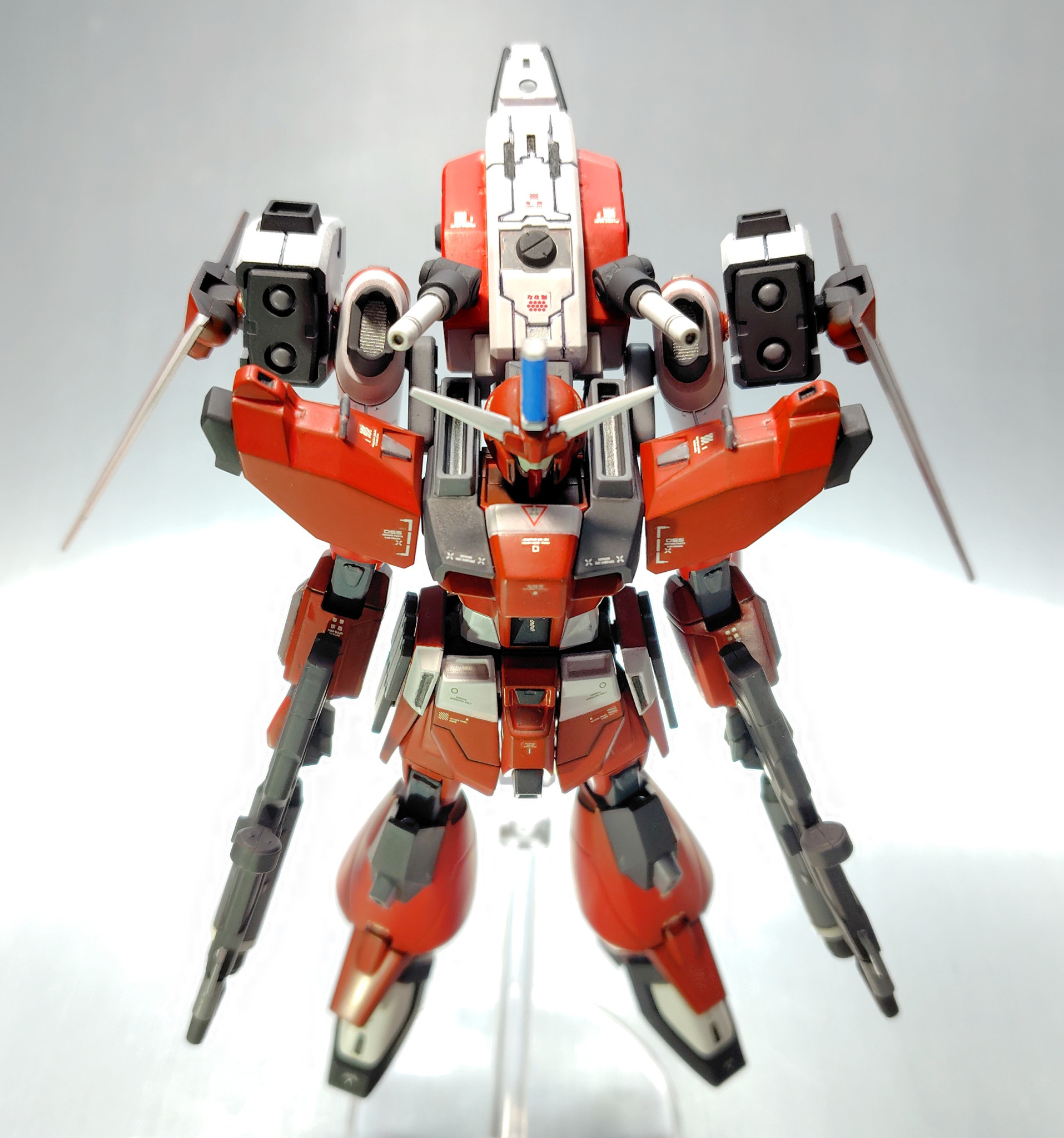 ヴェスバーと膝が連なる感じが立体的にやりたかったところです。メタスの肩と脚のイメージで変形連結ガッチャンコできるともっと良かったんですが技術的に無理でした。