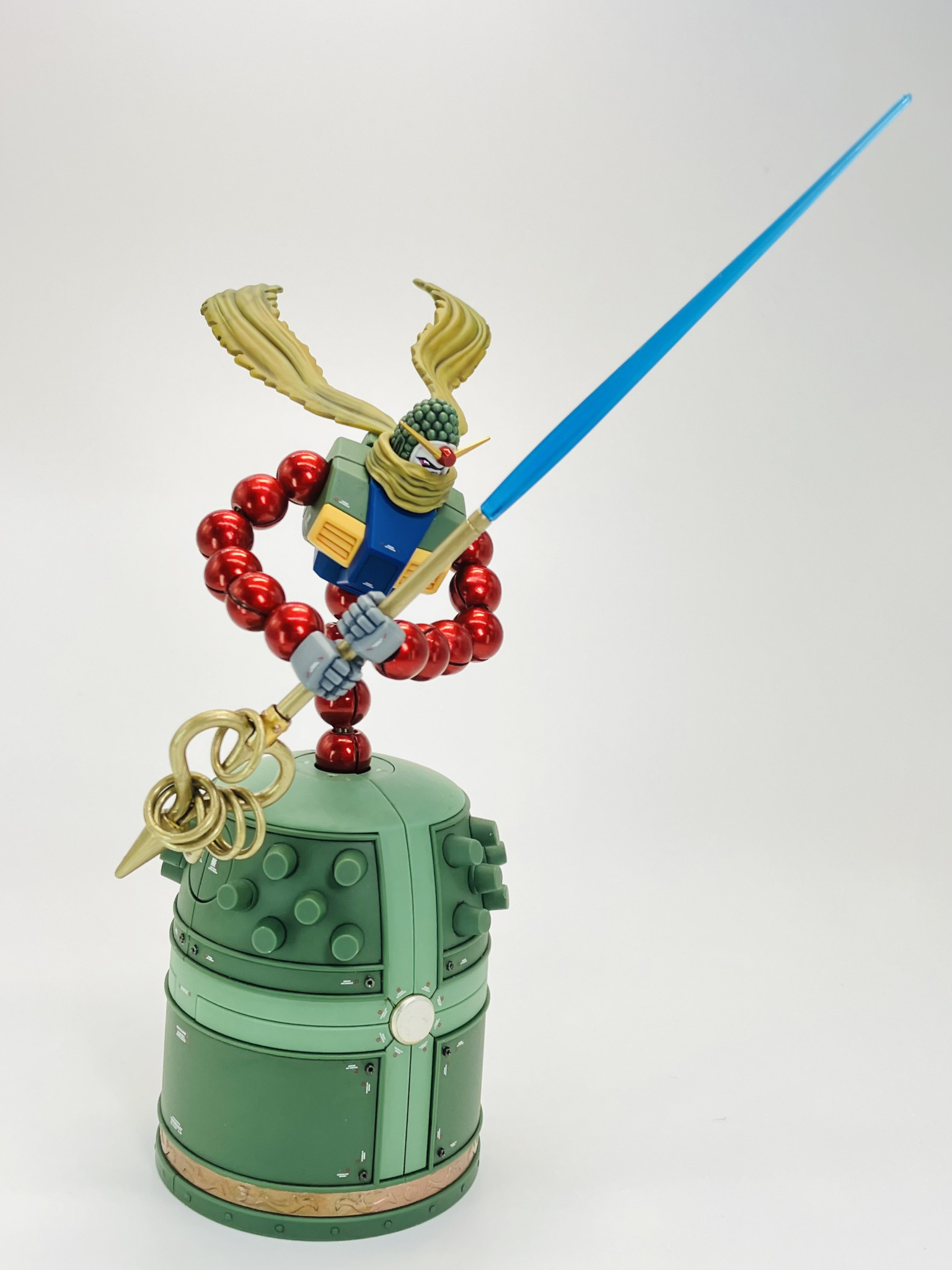 仕込み刀を抜刀😉 ツインアイはレジン液でちょいプラス😉✨殺意溢れる視線🤩 あ❗️錫杖の前後が逆ですね🤣