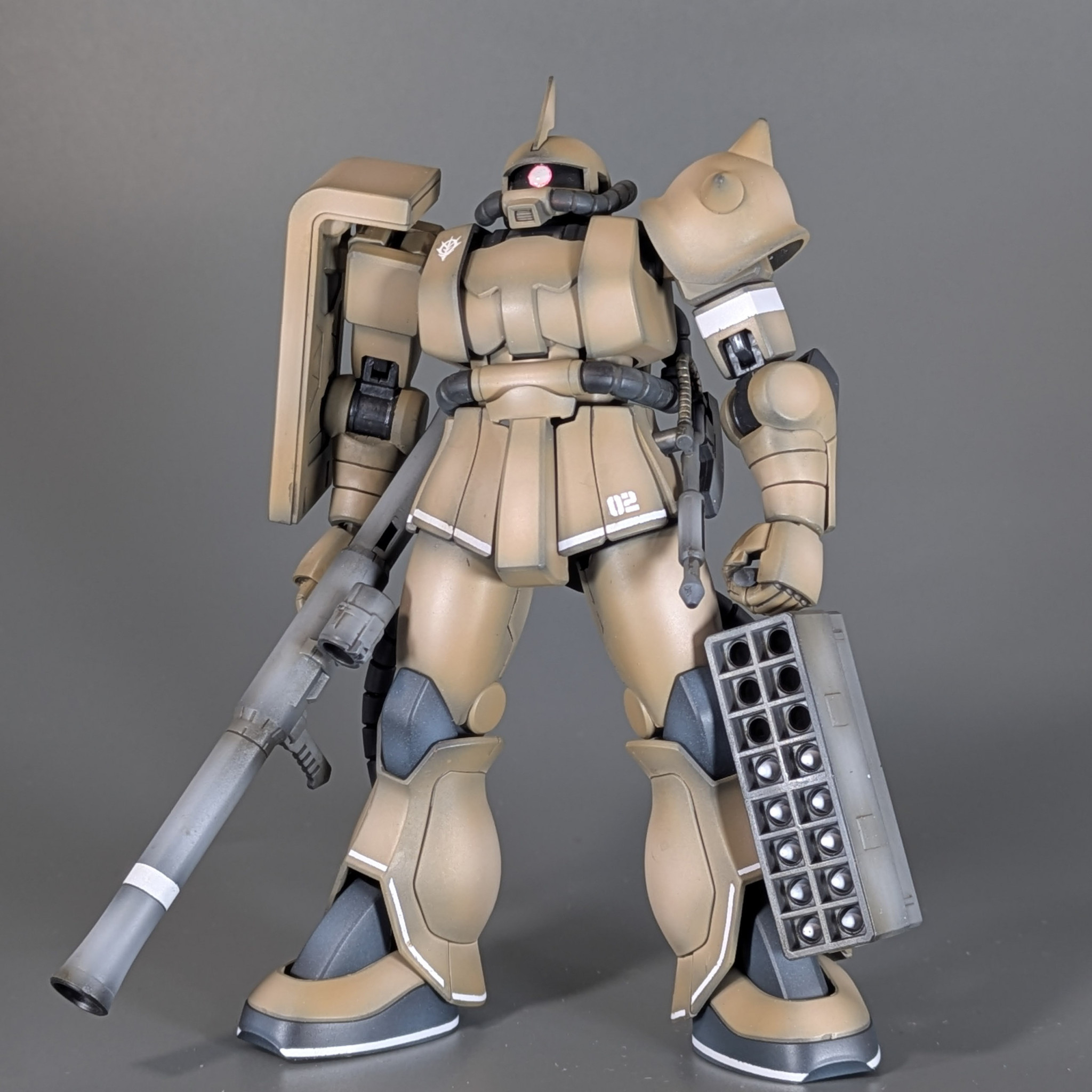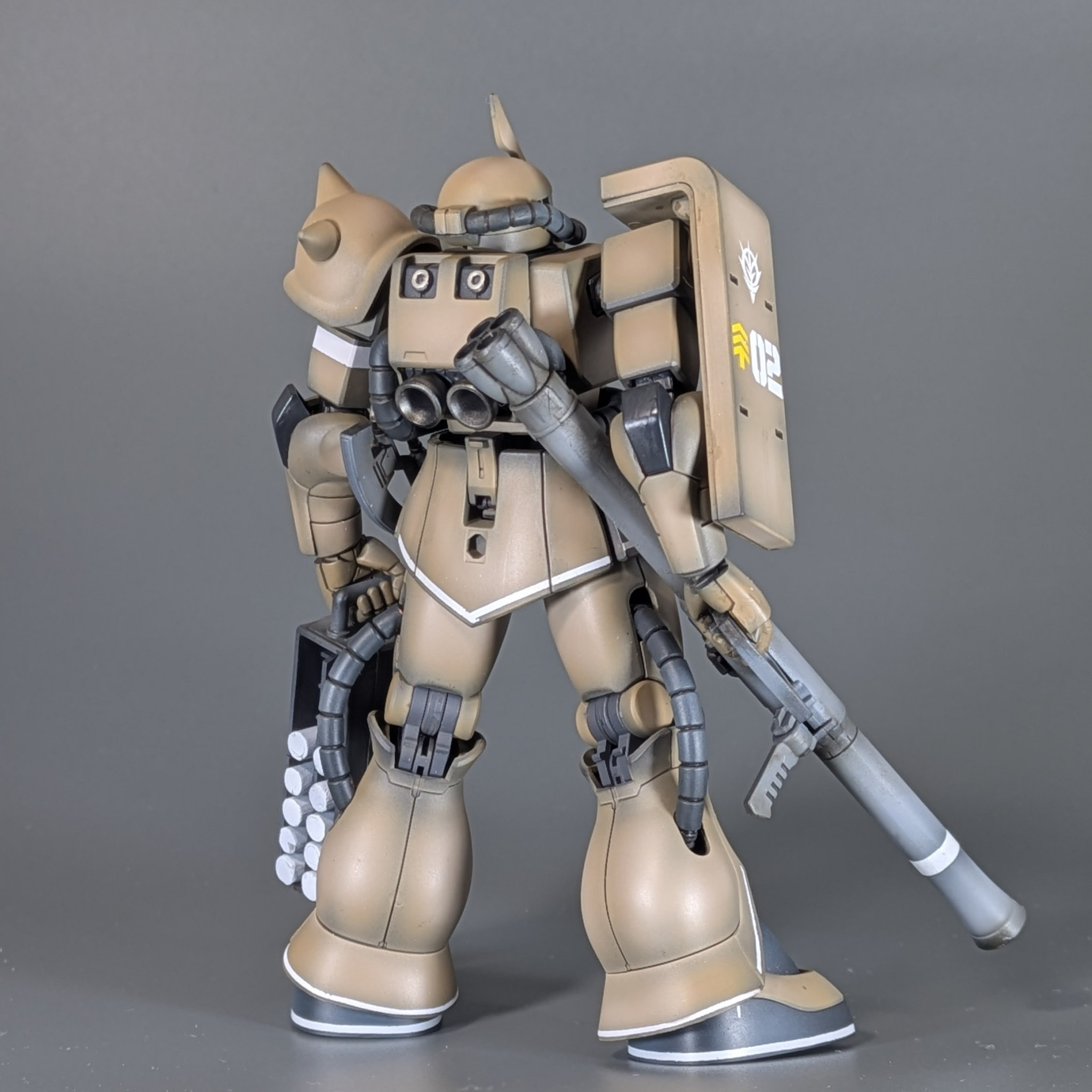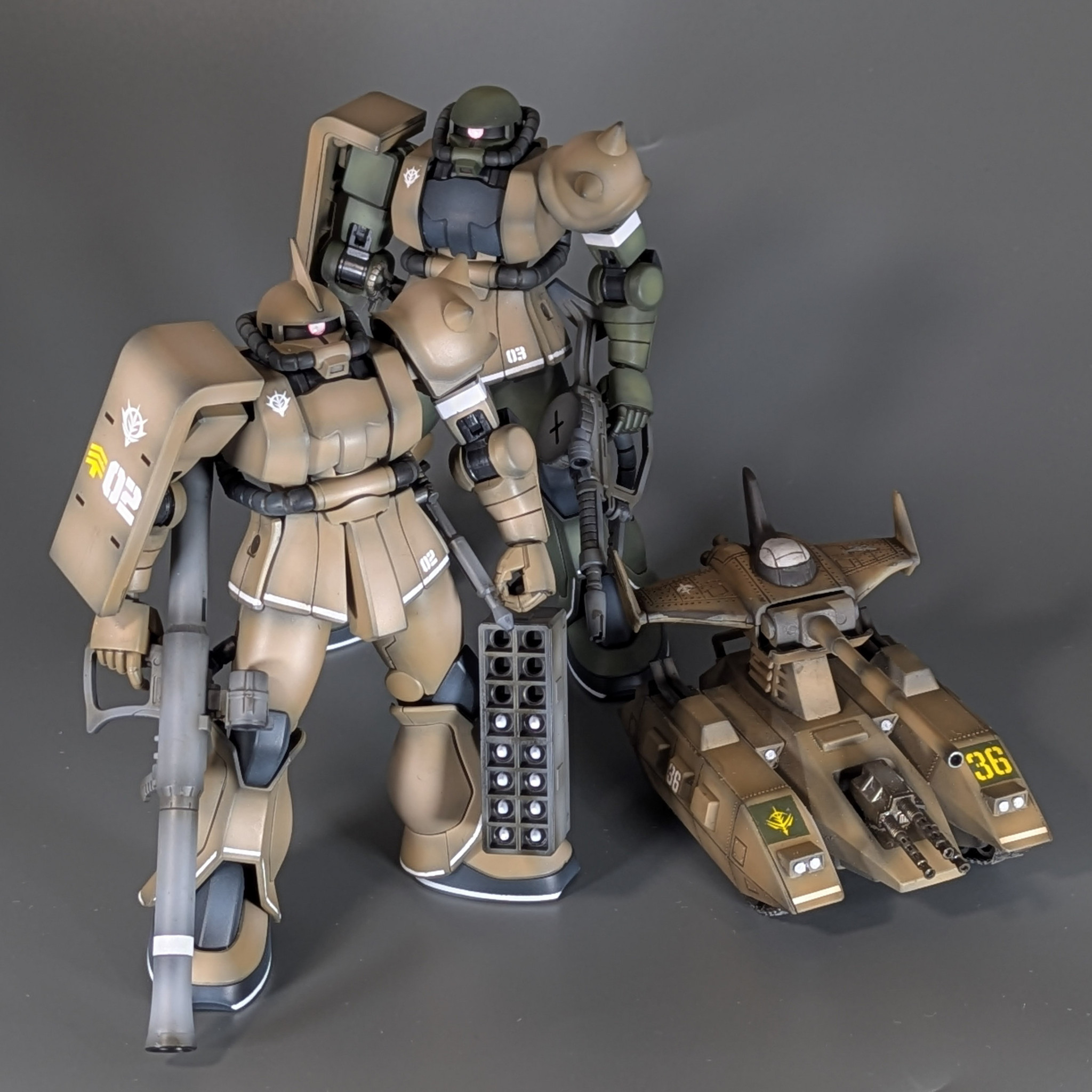 バズーカラックいいですね。2機のザクの塗装も同一じないのに統一感があってカッコいいです。参考にさせていただきます。