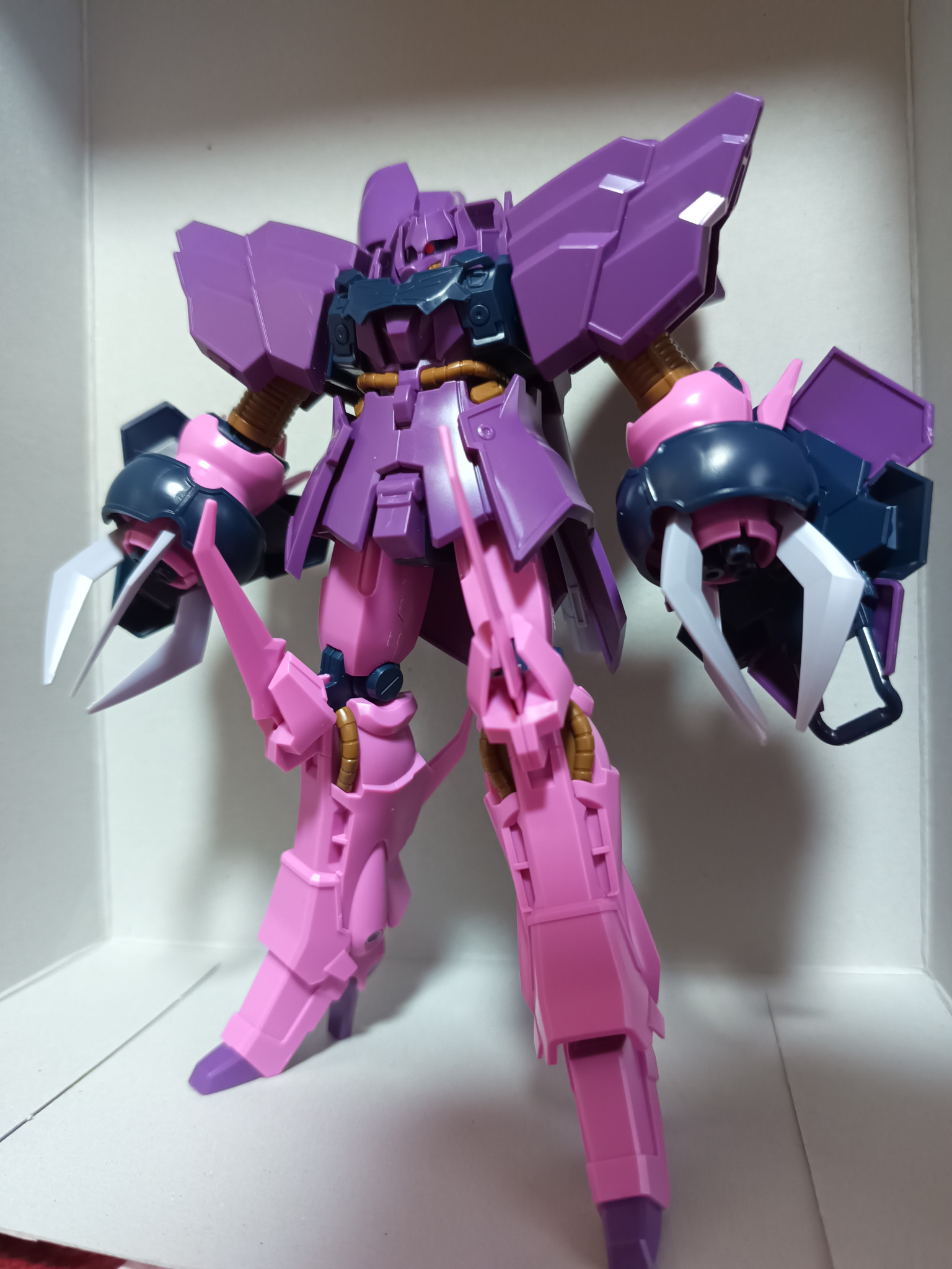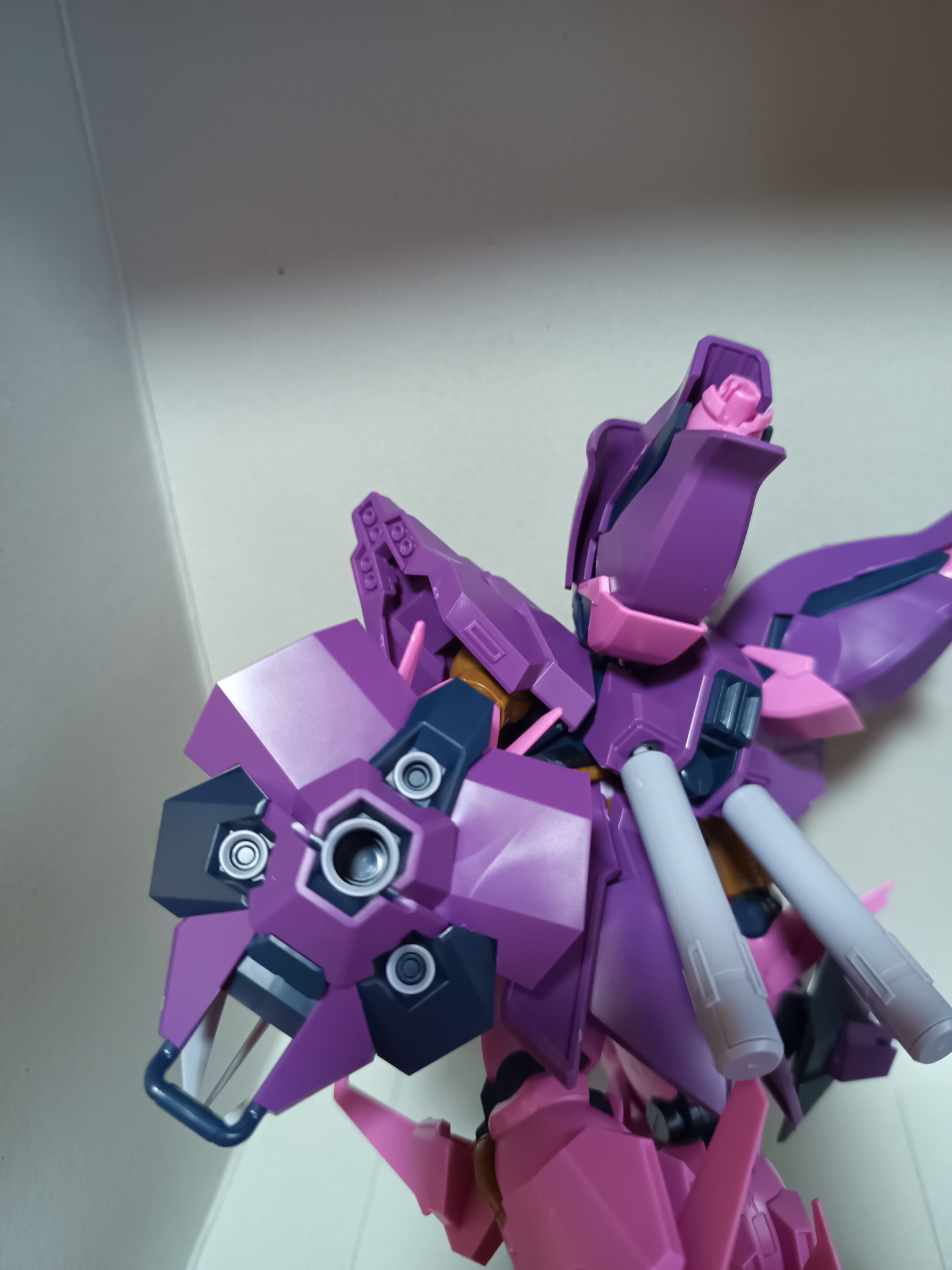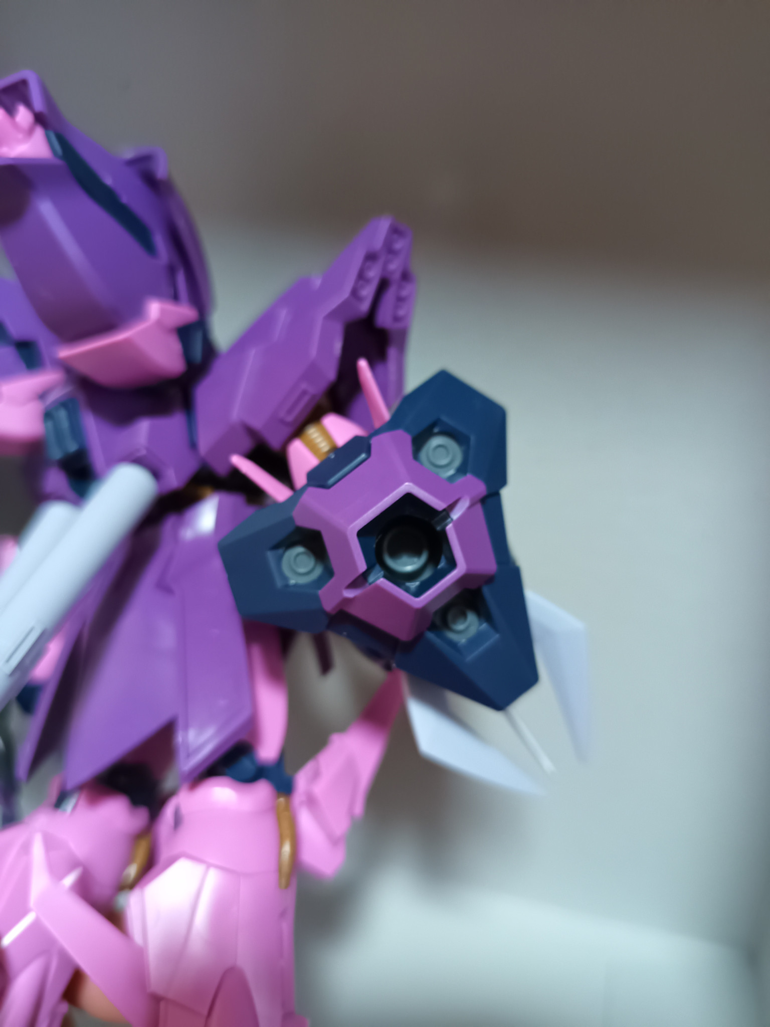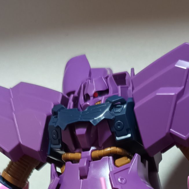 シールははろうか悩みましたが、袖付き機体共通でそのうち塗装する、と言い聞かせて貼っていません。胸部位は貼っても良かったかも…?そもそも成型色が不思議な感じなのでいつか塗装したい…