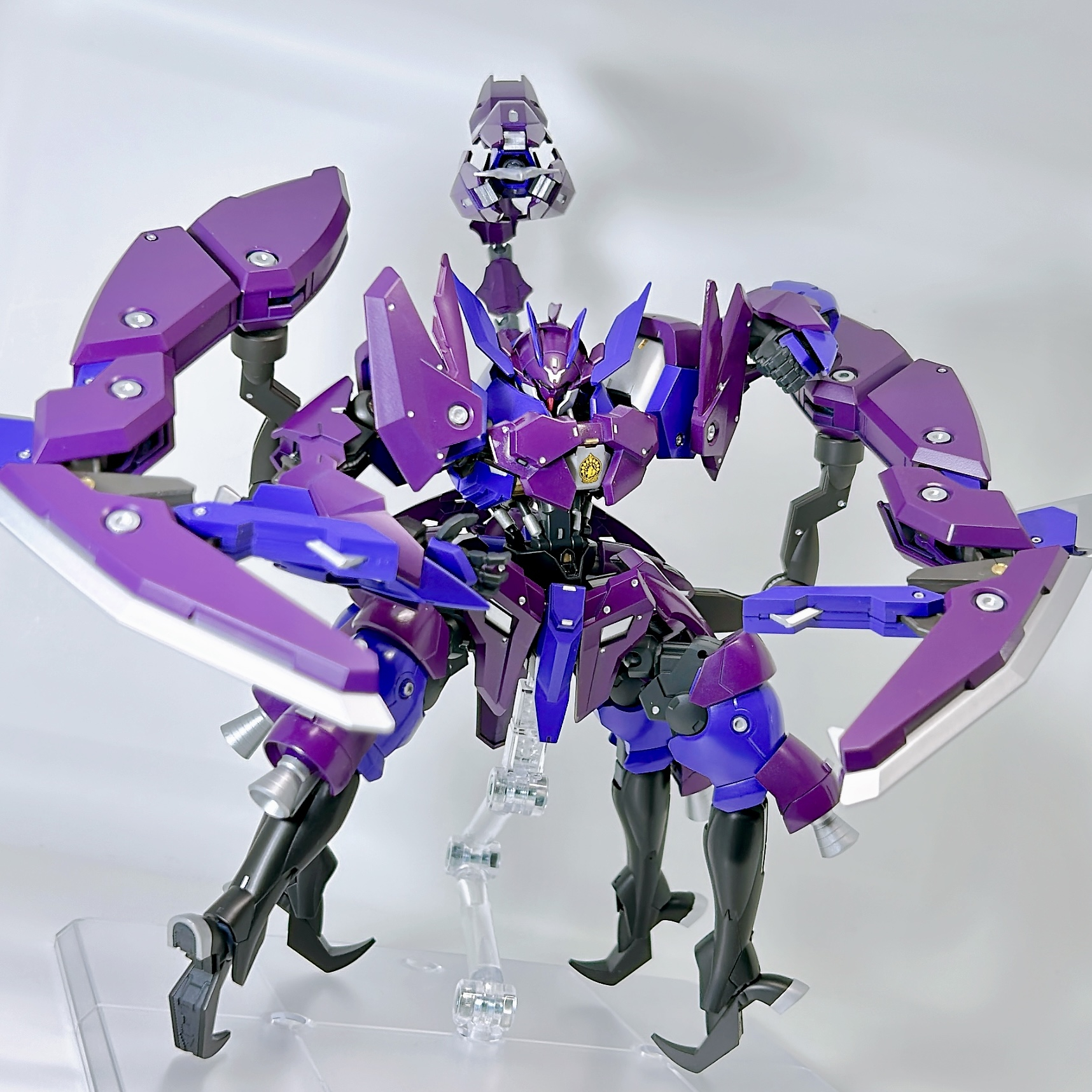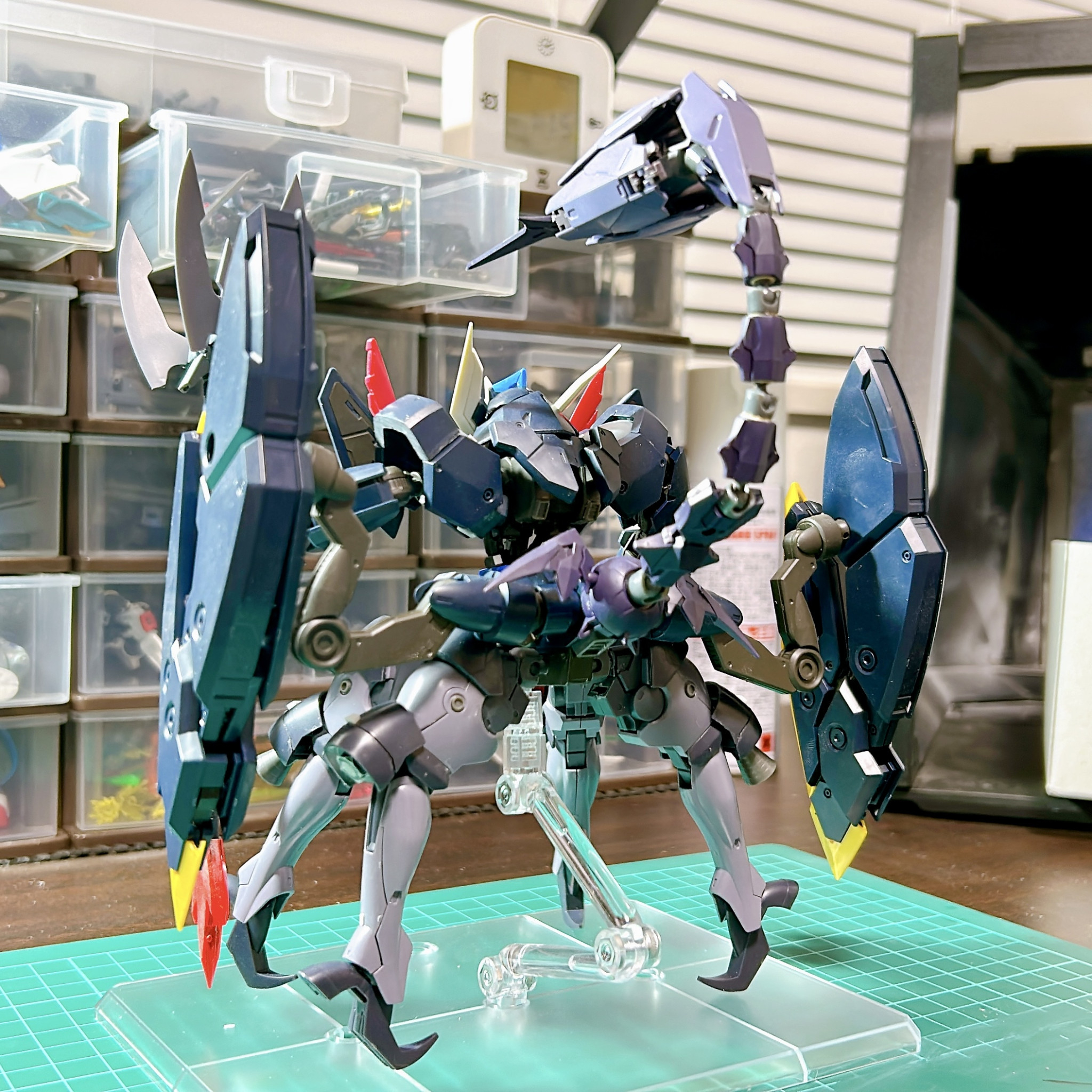 ガンダムザガンのシールドプライヤーユニットを見て、ビビッと来て、エルドラドブルートの脚部とミカエリスのビームブレイサーで蠍に見立たてたミキシングにしてみました♪