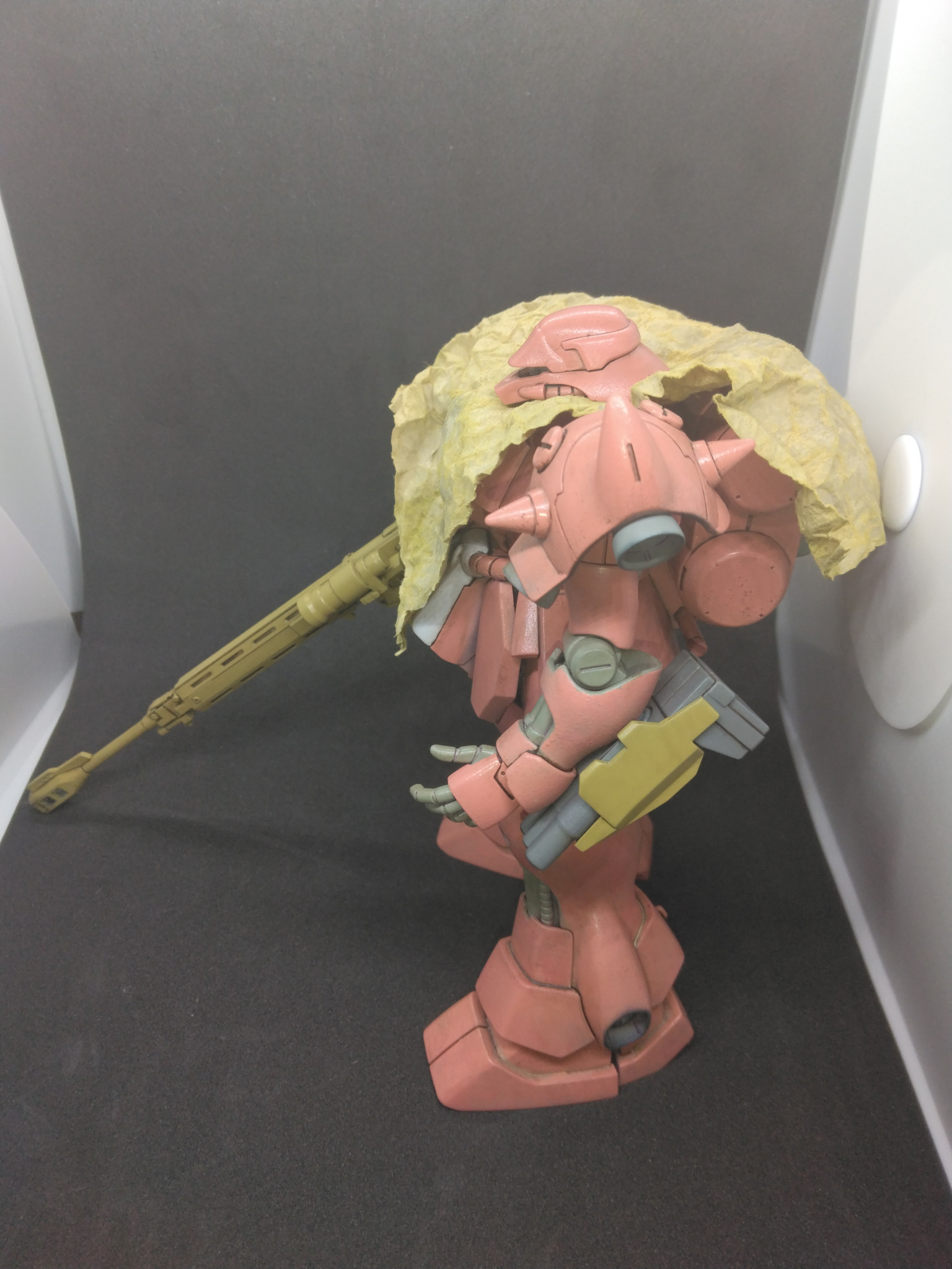 MSレッド(C)→ピンク(C)→MSシャアピンク(C)を缶スプレーで塗装後、MSシャアピンク(C)をスポンジ塗装