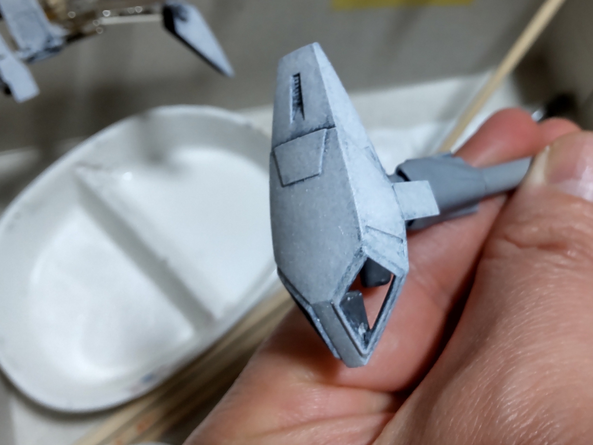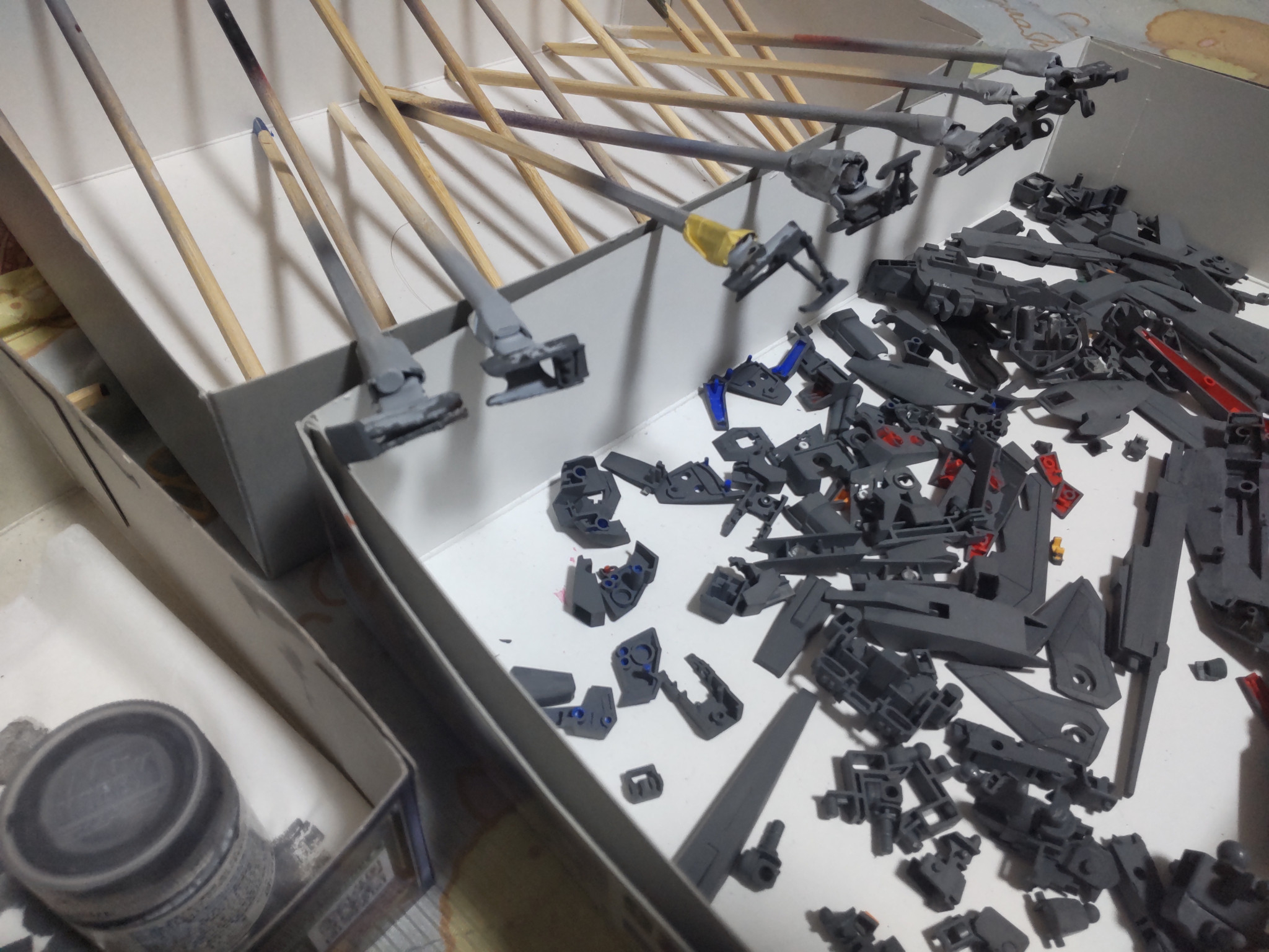 普通であれば下準備→捨てサフ&チェック→サフ→塗装といった手順をとるのが一般的ですが、今回はパチ組→塗装です。