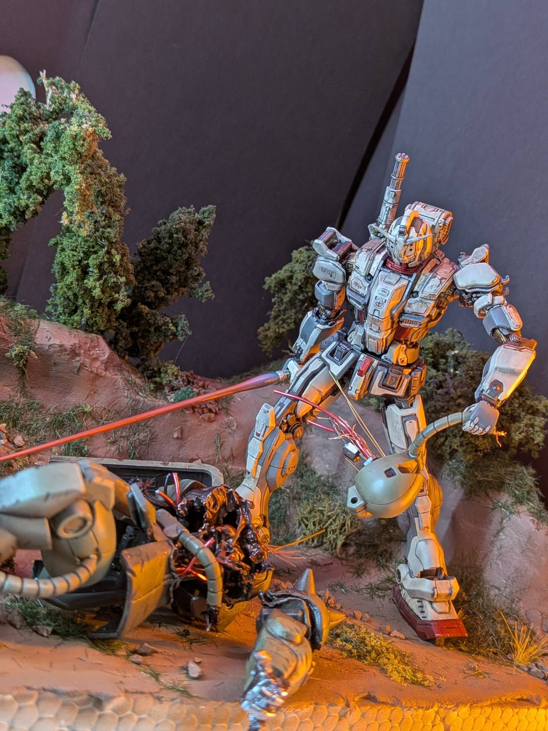 今回のテーマは【悪いガンダム】をイメージしたジオラマなので、少しプレデターのような倒した後も頭部を引きちぎることで演出してみました‼️