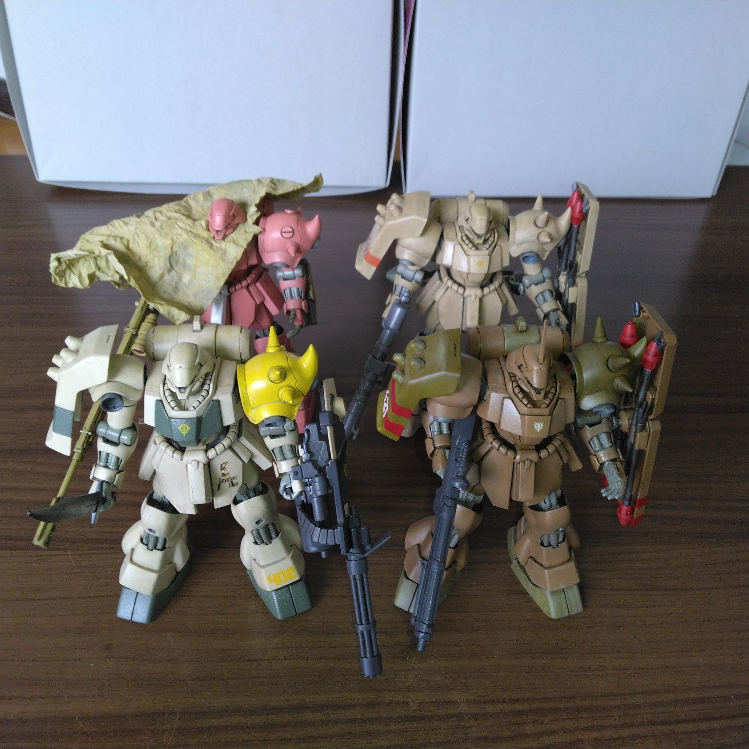 ガンプラを始めた頃から、やってみたいと考えていたオリジナル部隊のそろい踏みが実現し、少々感慨深いものがあります😌