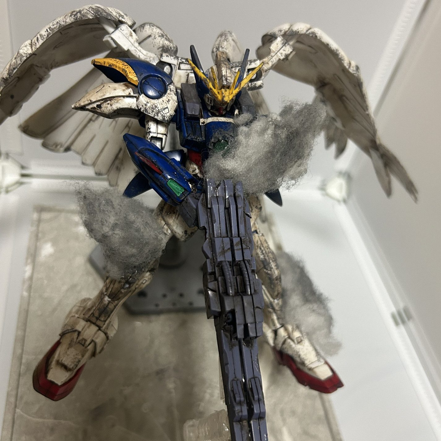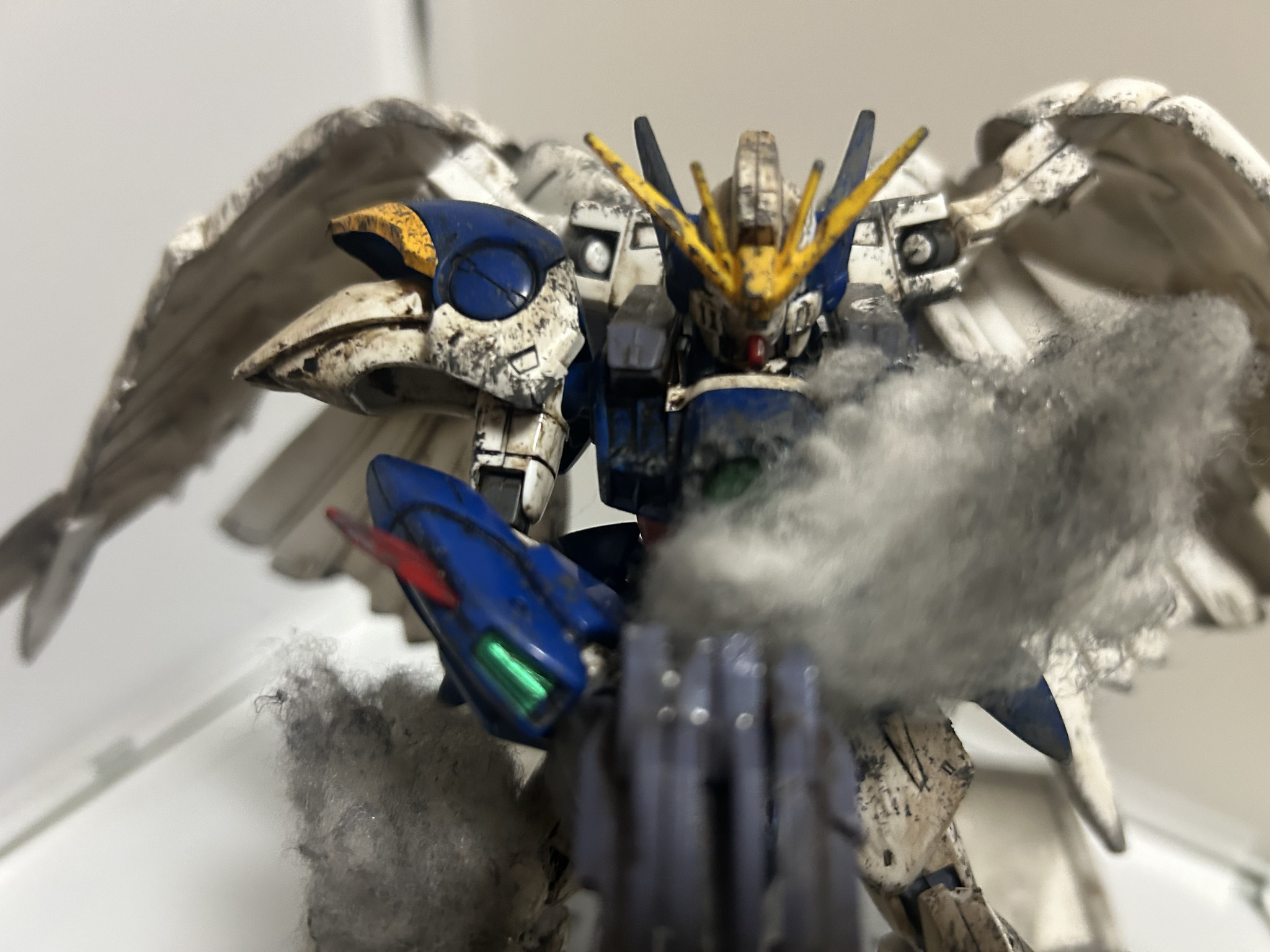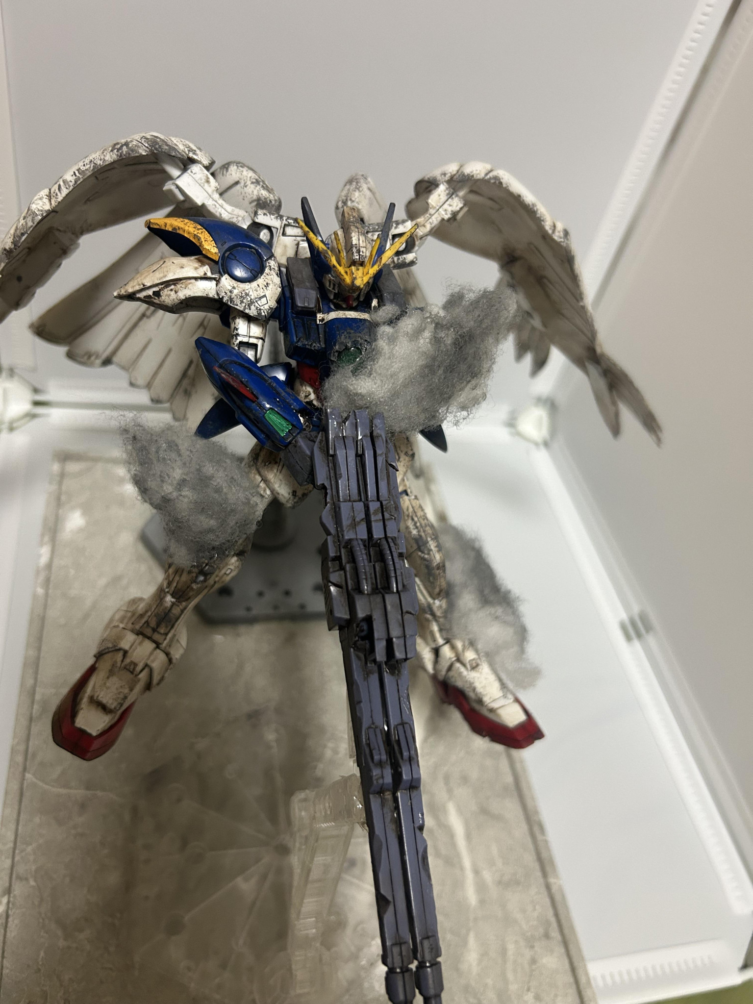 これが1番の問題だったと思います。自分は煙で隠してますがビームライフルの後ろ切りました!撮る角度によっては見えますがそれも愛嬌!