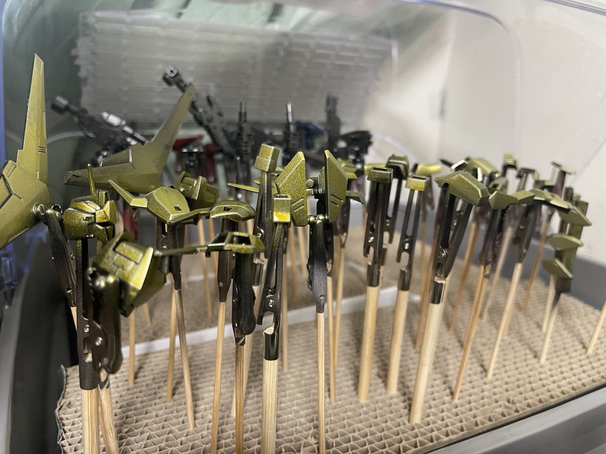今回から乾燥機を導入しました。デカイことを除けば便利です。水性ホビーカラーだと乾燥遅いのがネックですが、それが解消されるのがデカイですね。