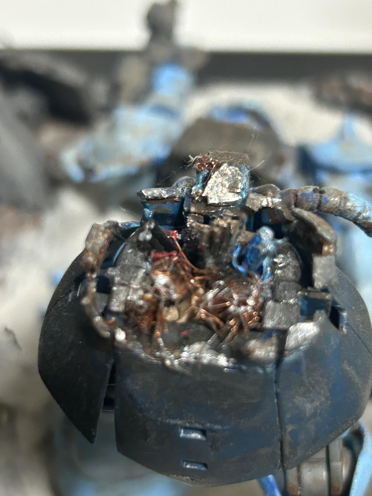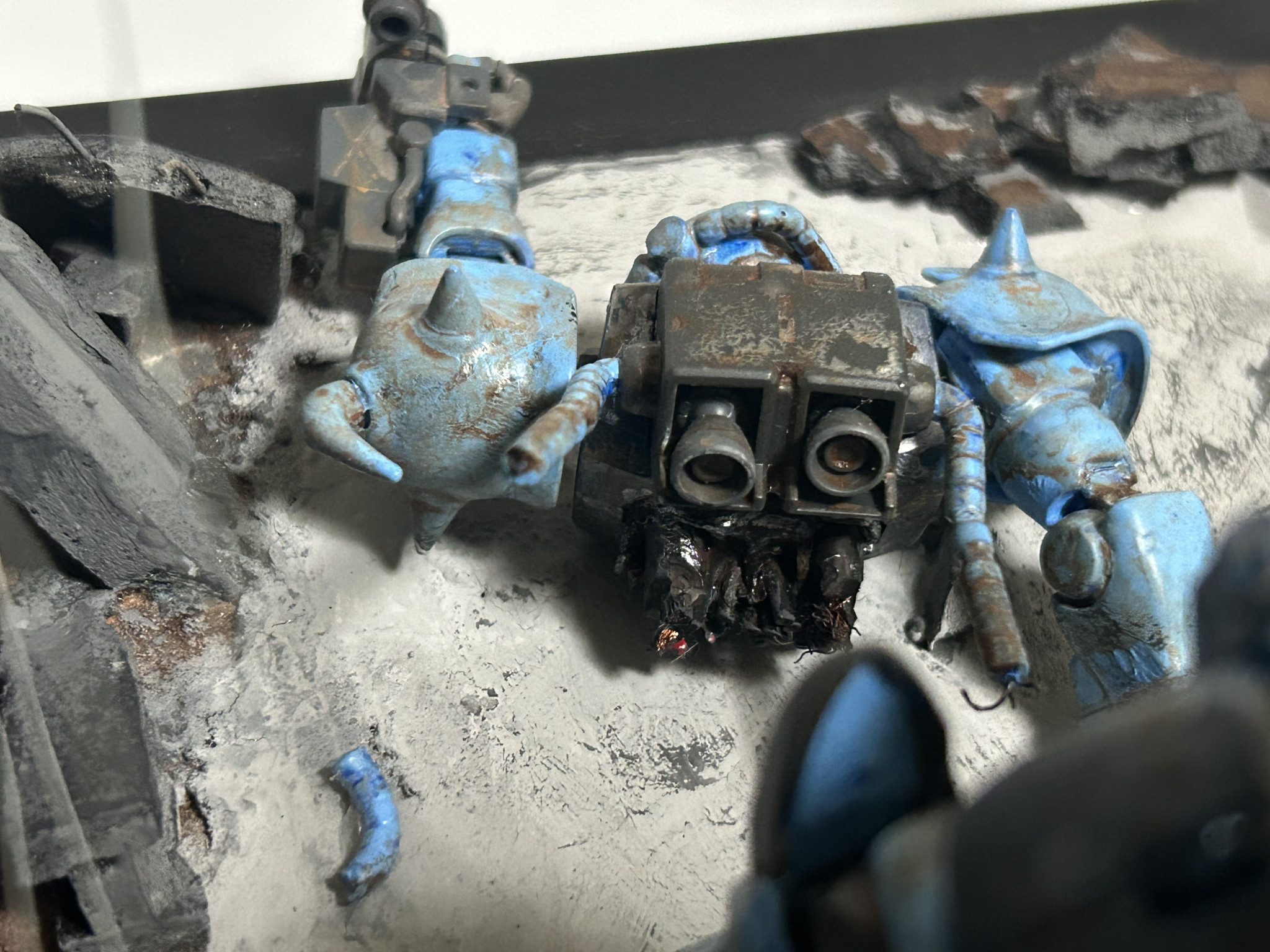 ちなみにグフカスタムの断面もオリジナルで自分なりに考えました。赤と青の配色にしたり細い配線が見えるようにしたり…ここが楽しかったなぁ…。