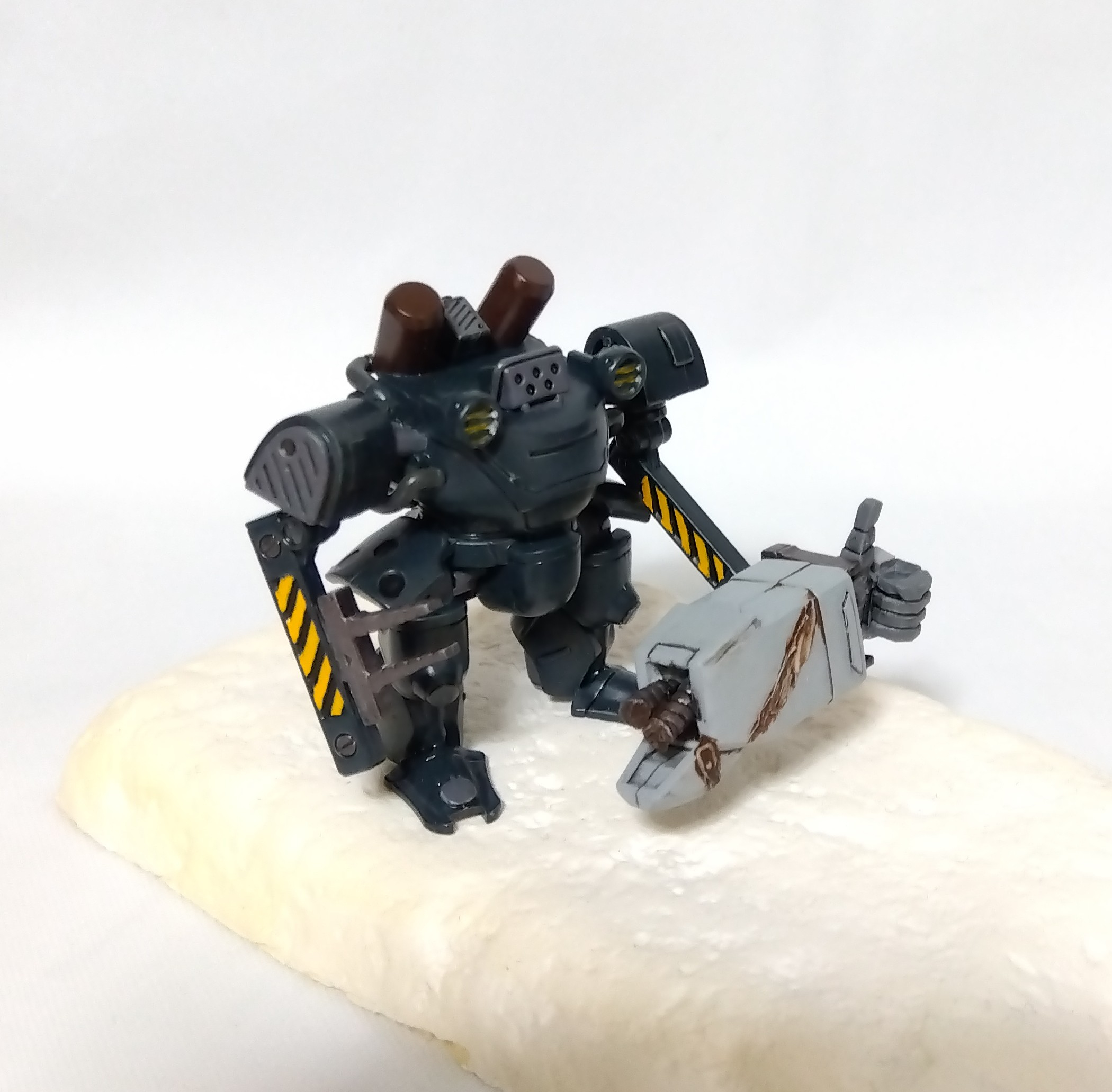 色は寒冷地仕様ジムみたいな灰色ベースで塗装、F90を参考にスキー板をランナーをゴリゴリ削って作成しました。