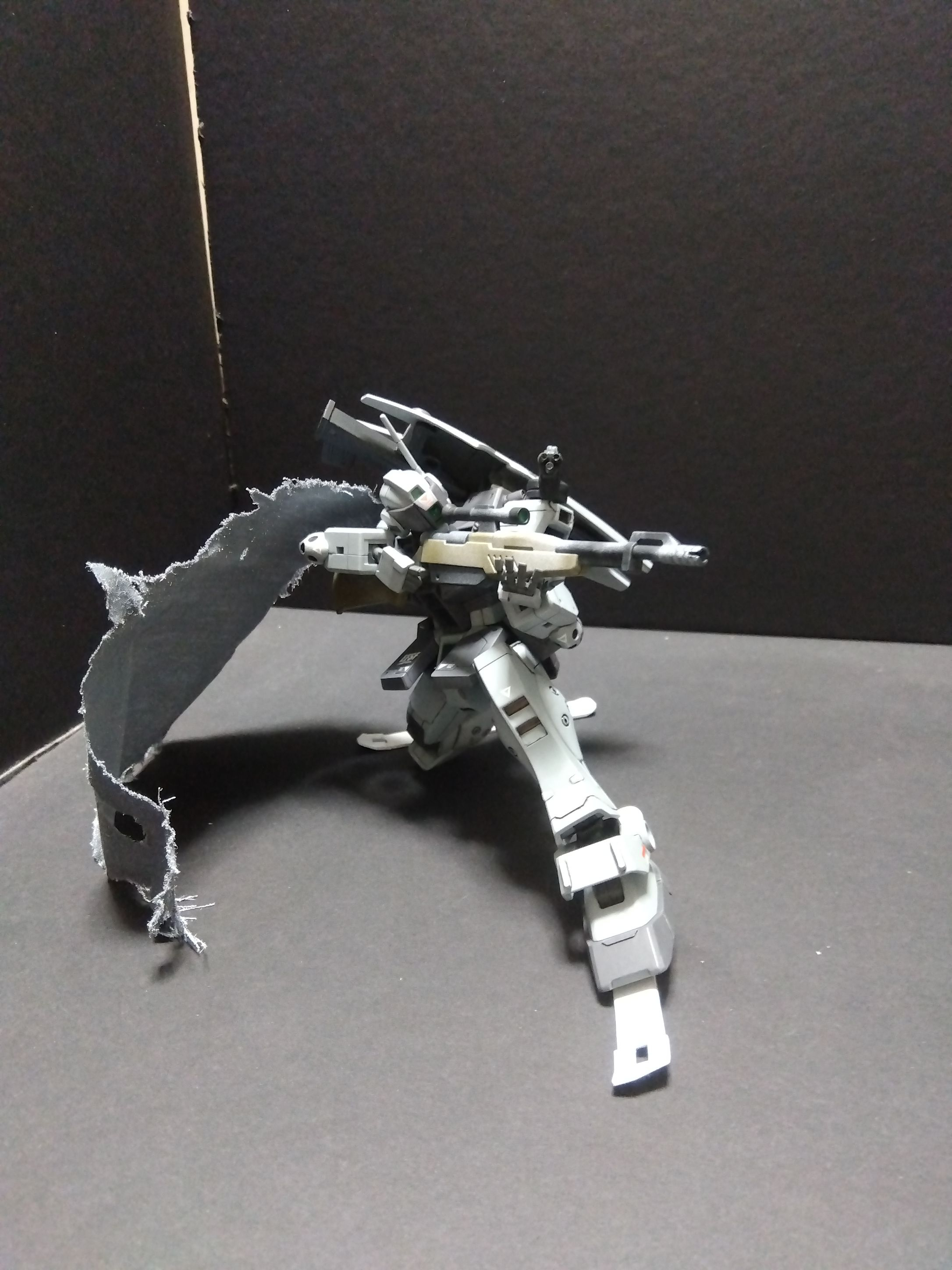 狙撃姿勢、MGほど間接が柔らかくないので一部パーツを外して再現しました。