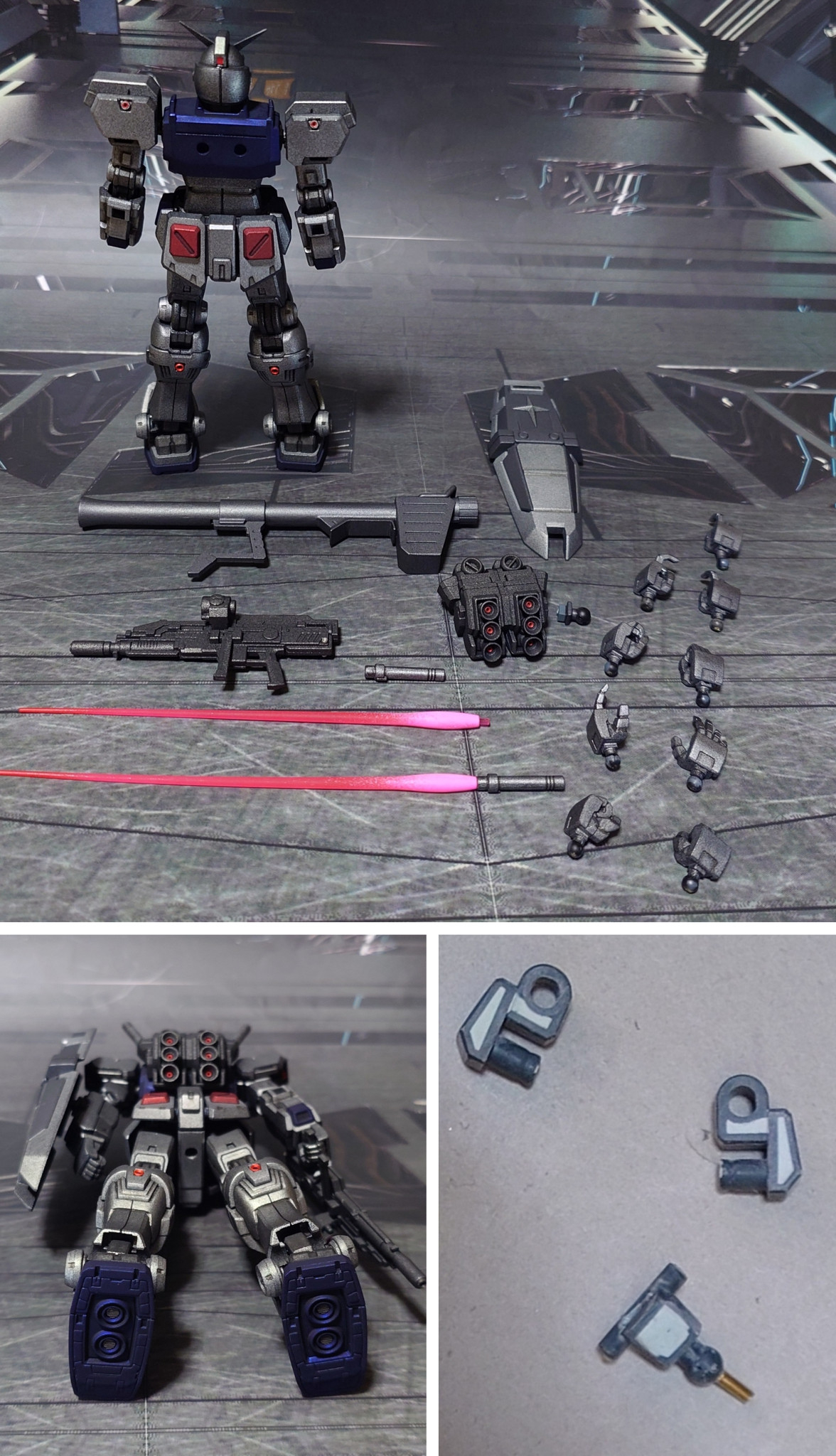 付属品一式、下からのアングル、肉抜き穴埋めの様子。
