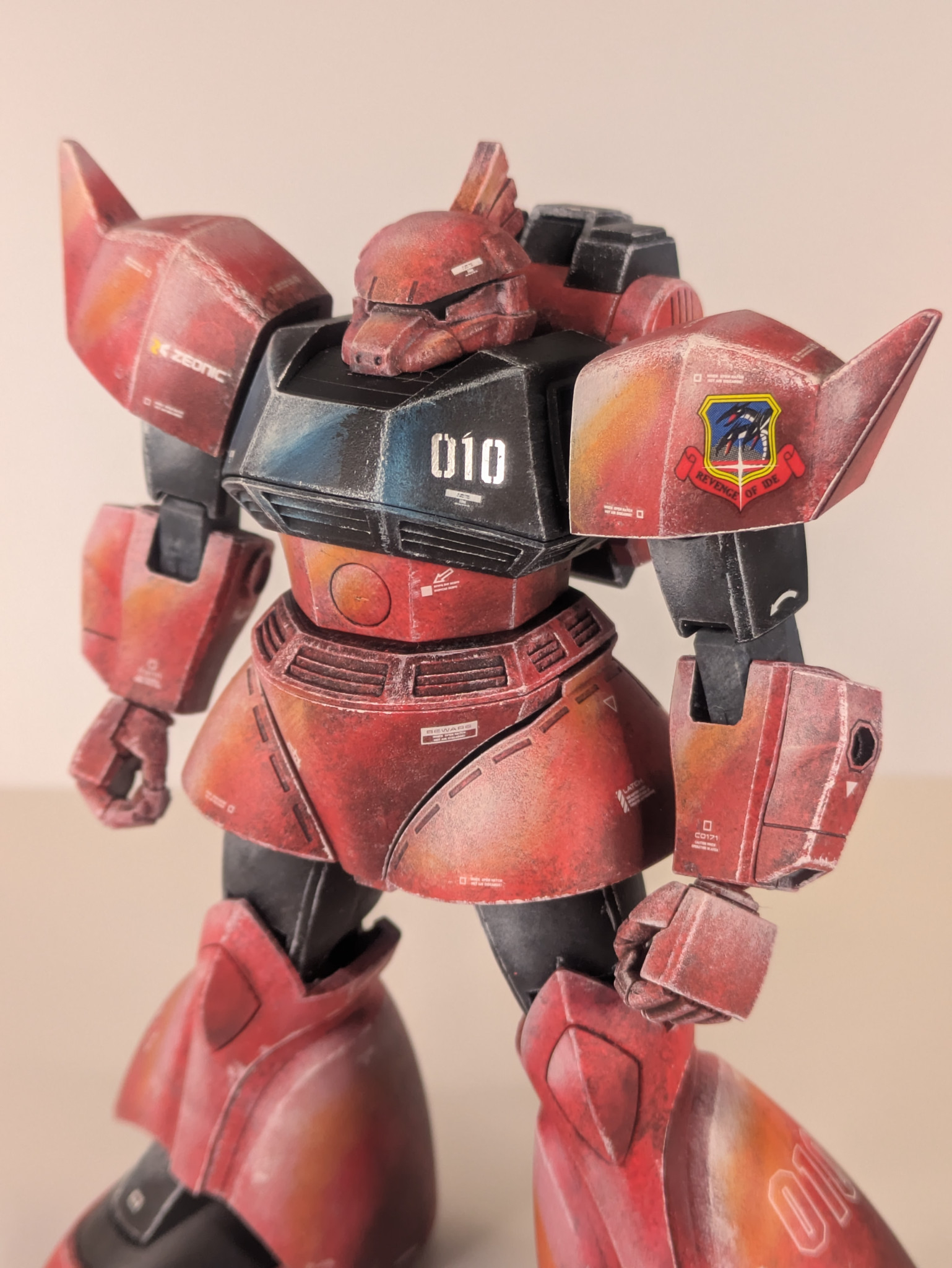 設定画準拠で作りましたが、左肩にはキマイラ隊のマーキングデカールを貼りました