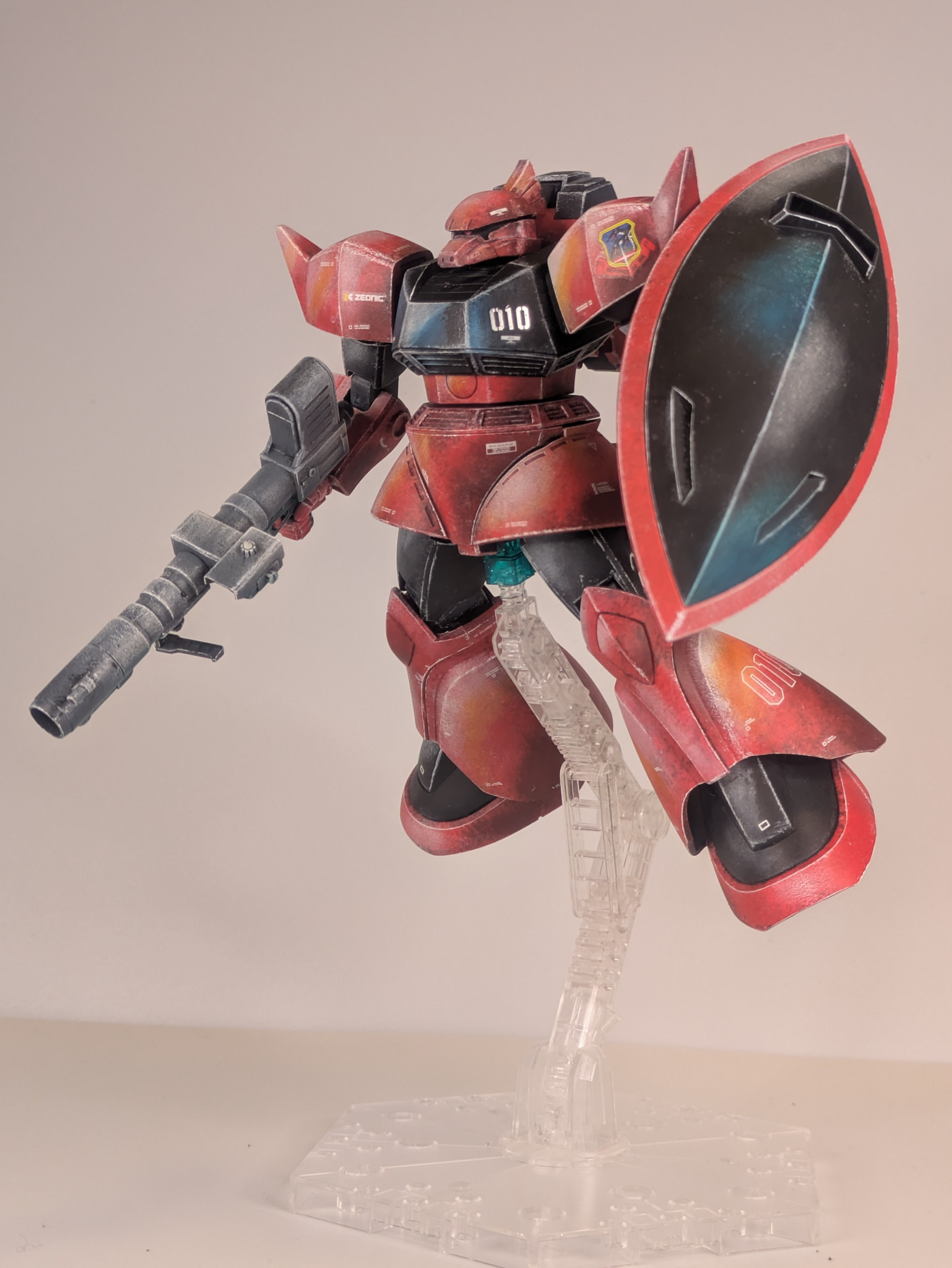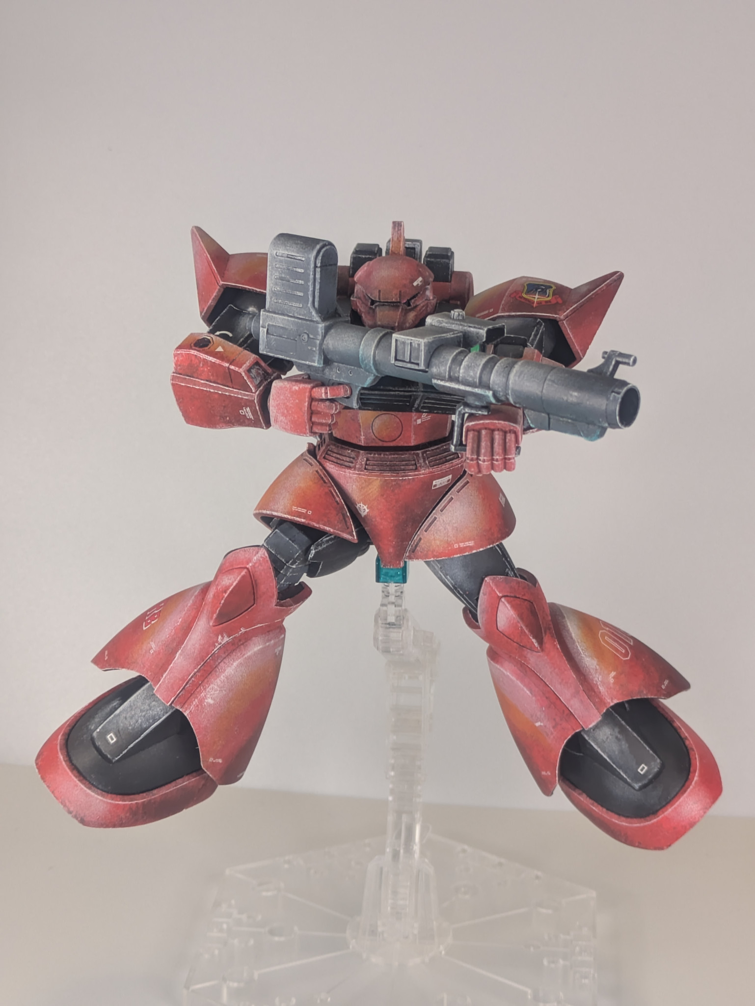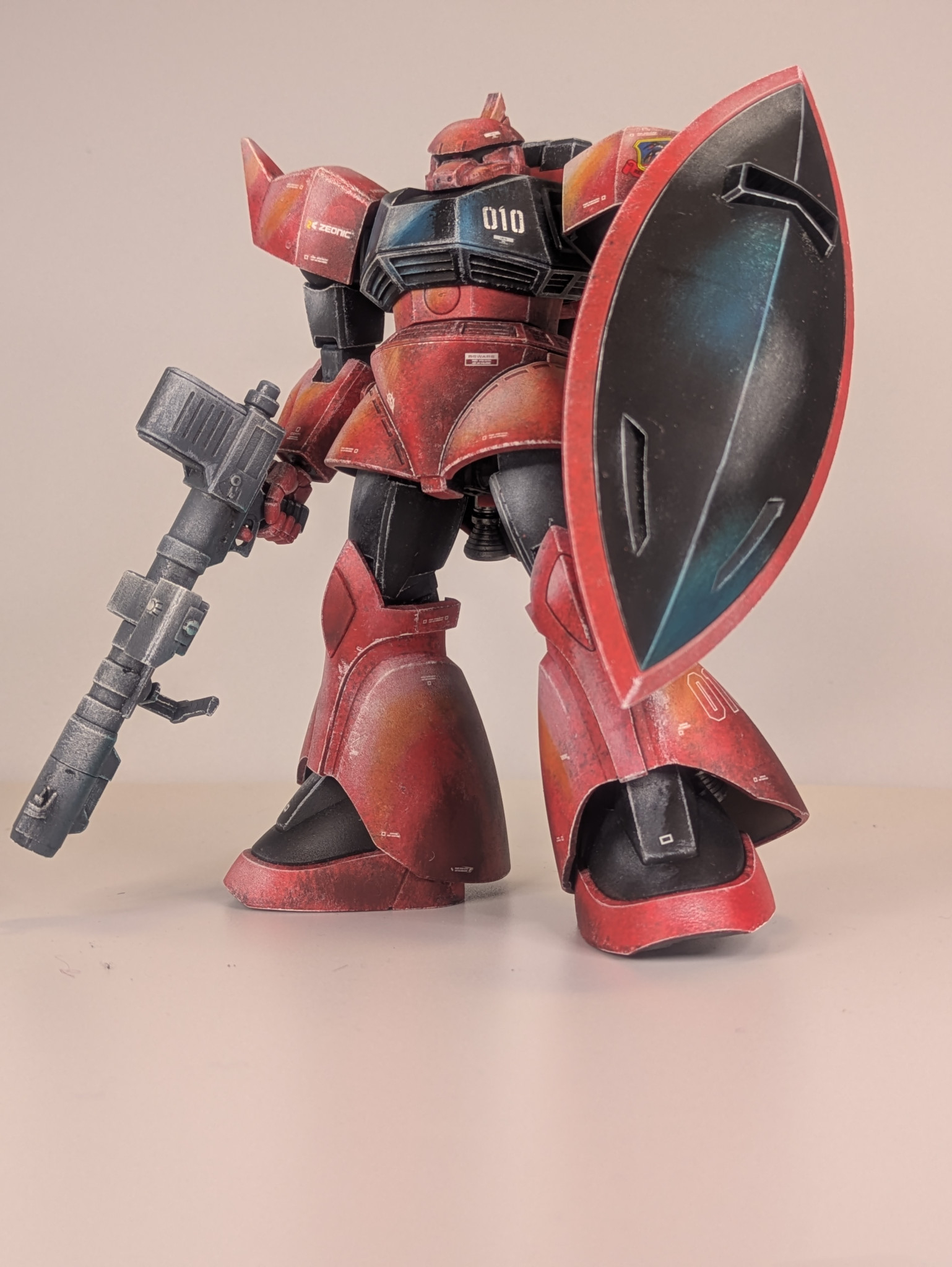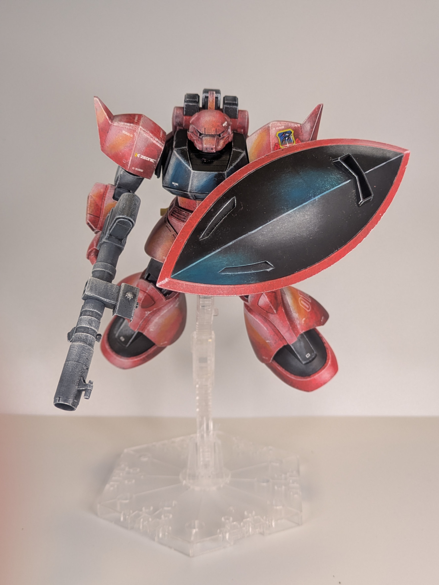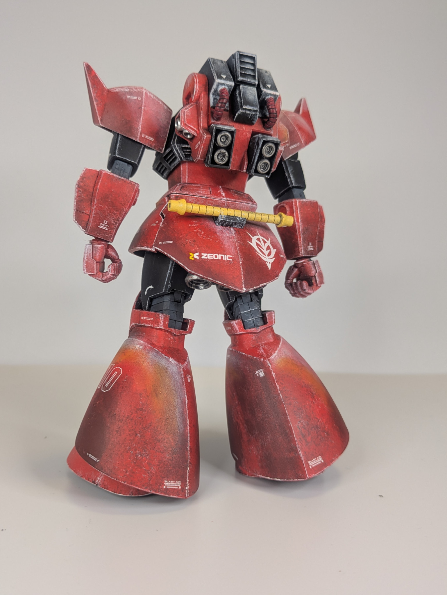 良い意味で一枚絵🖼️のような説得力に満ちた陰影、塗装方法が気になる🥳 ポージングもゲルググらしい躍動感👏😁
