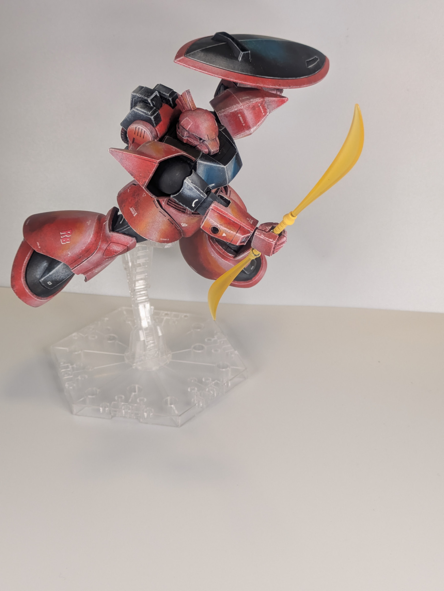 そういえば@okkiさんの宇宙世紀機体は久しぶりですね〜😄立体感のある絵画のような塗装がゲルググにもマッチしていて素敵です😆✨ビームナギナタを振り回すポージングがカッコ良い!