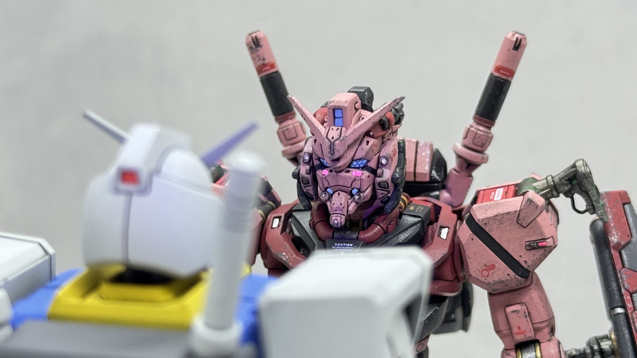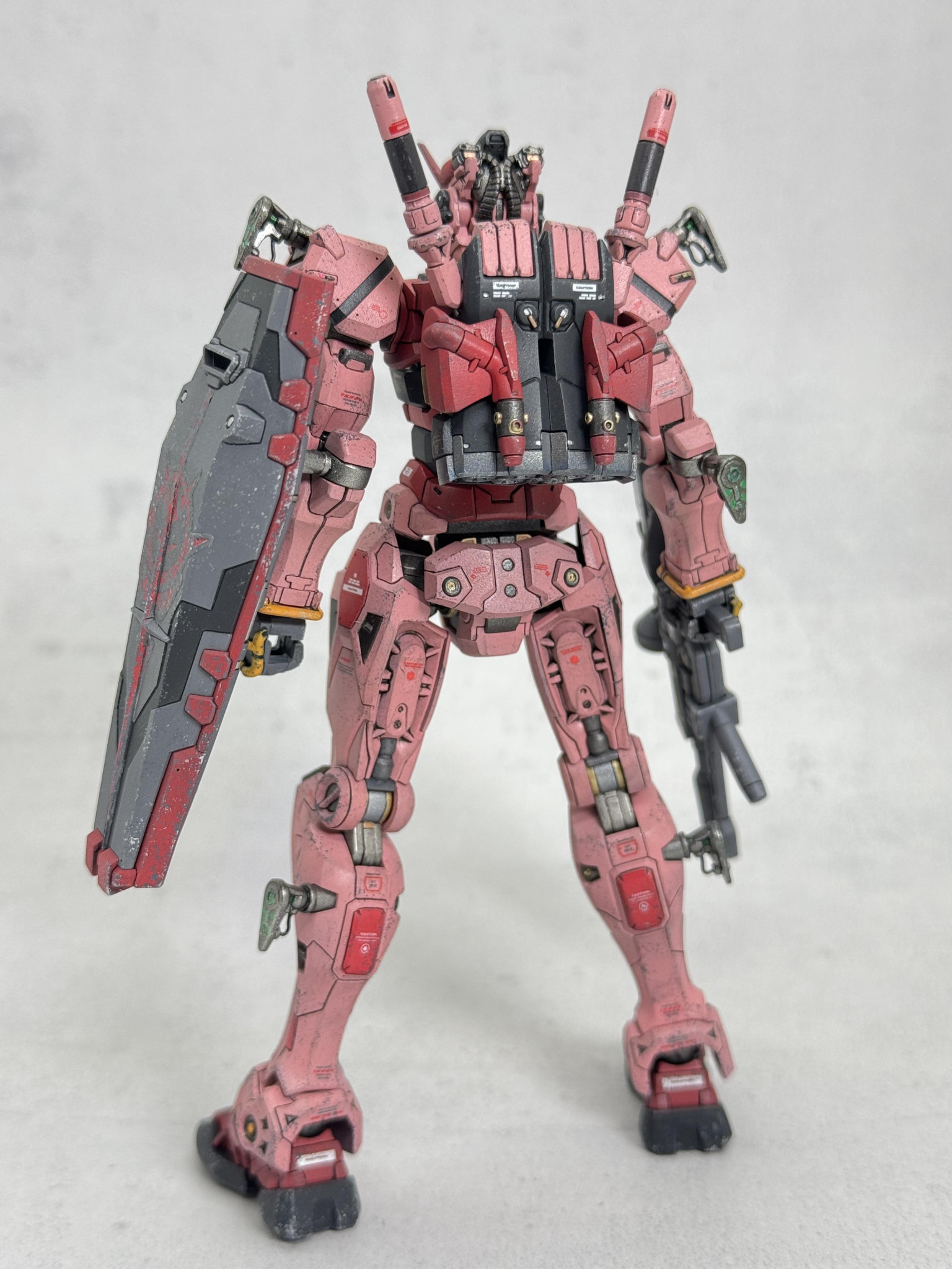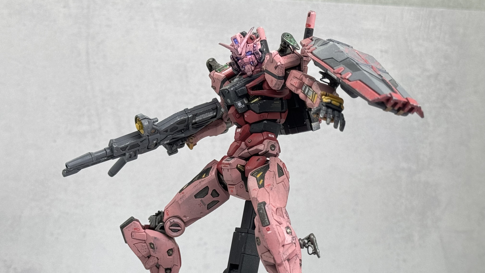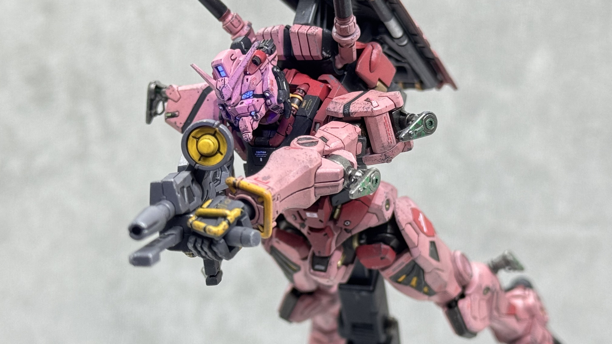 今回の個人的なテーマ・目標は“おもちゃっぽさの脱却“で、劇中のストーリーを意識して「ろくな整備環境がない状態で使い込まれた兵器感」がでるように汚し塗装を丁寧に行なってみました。
