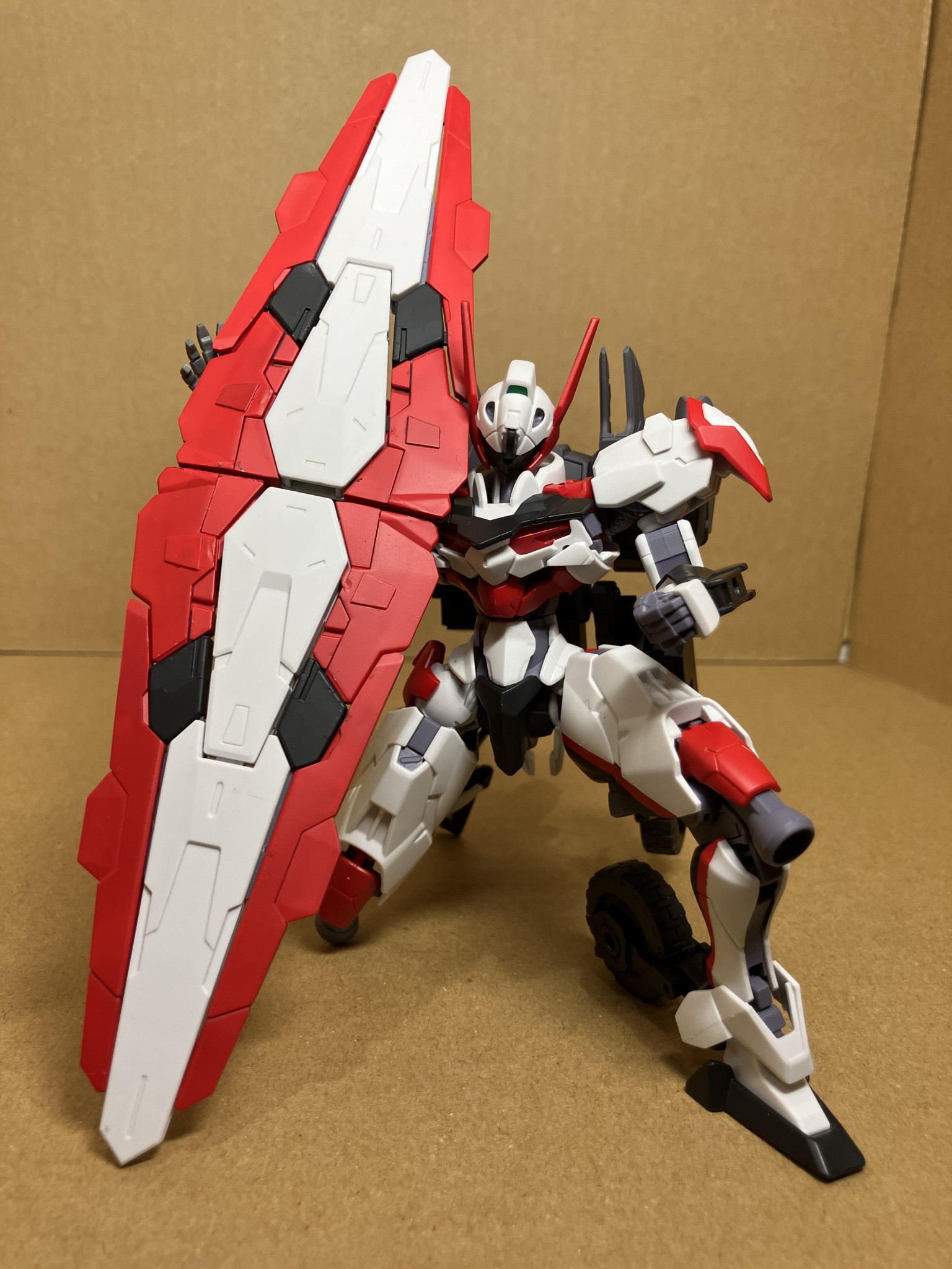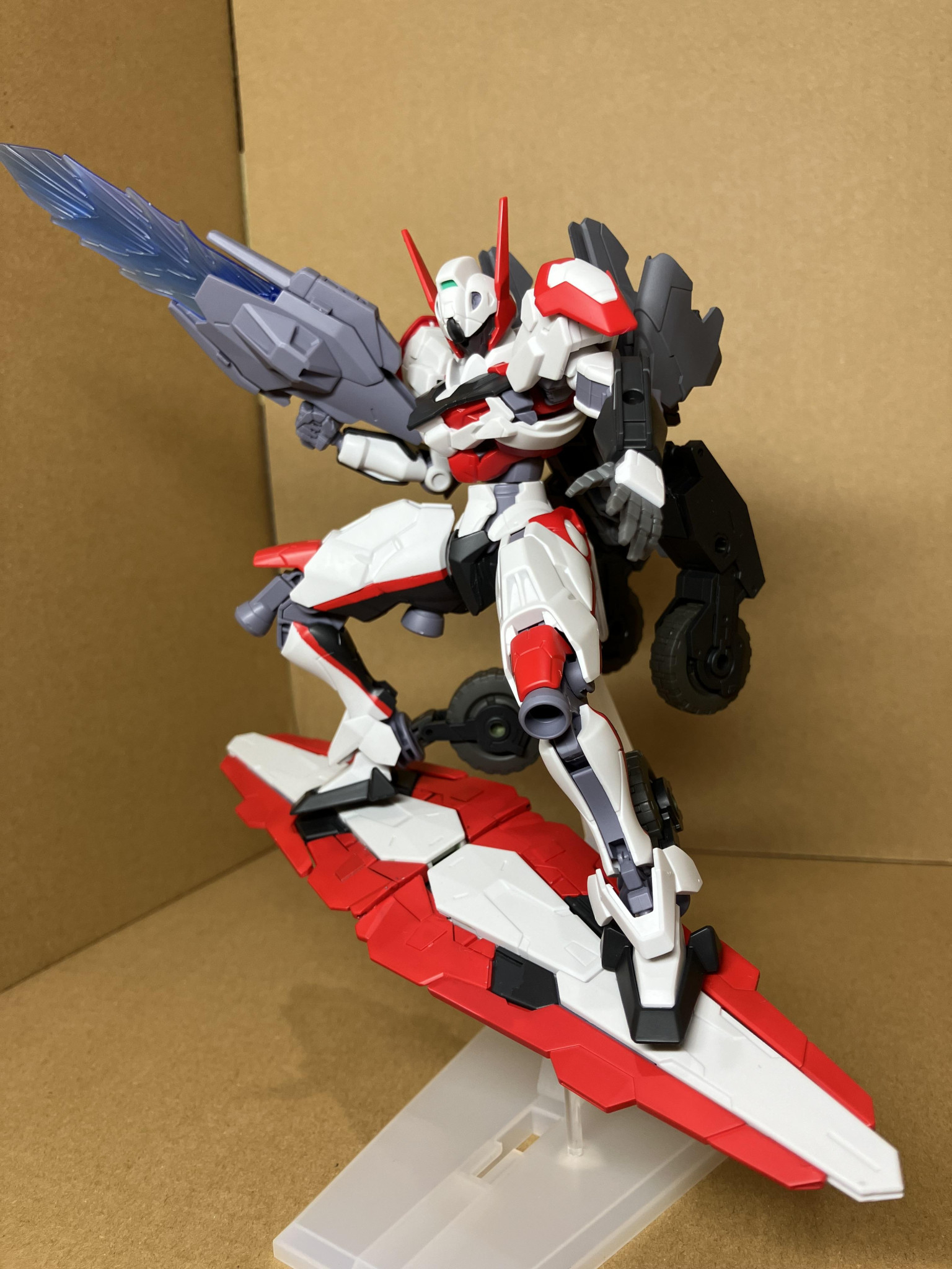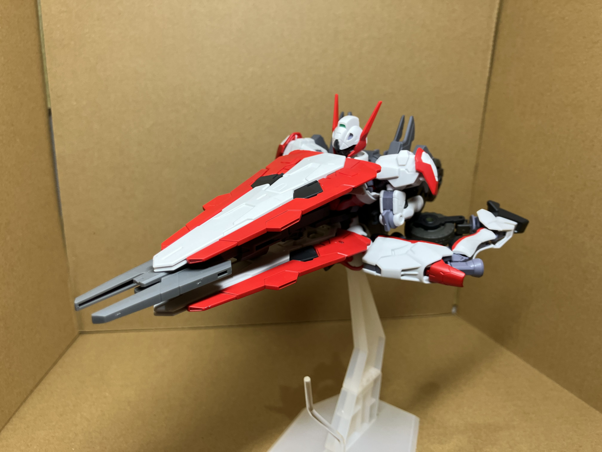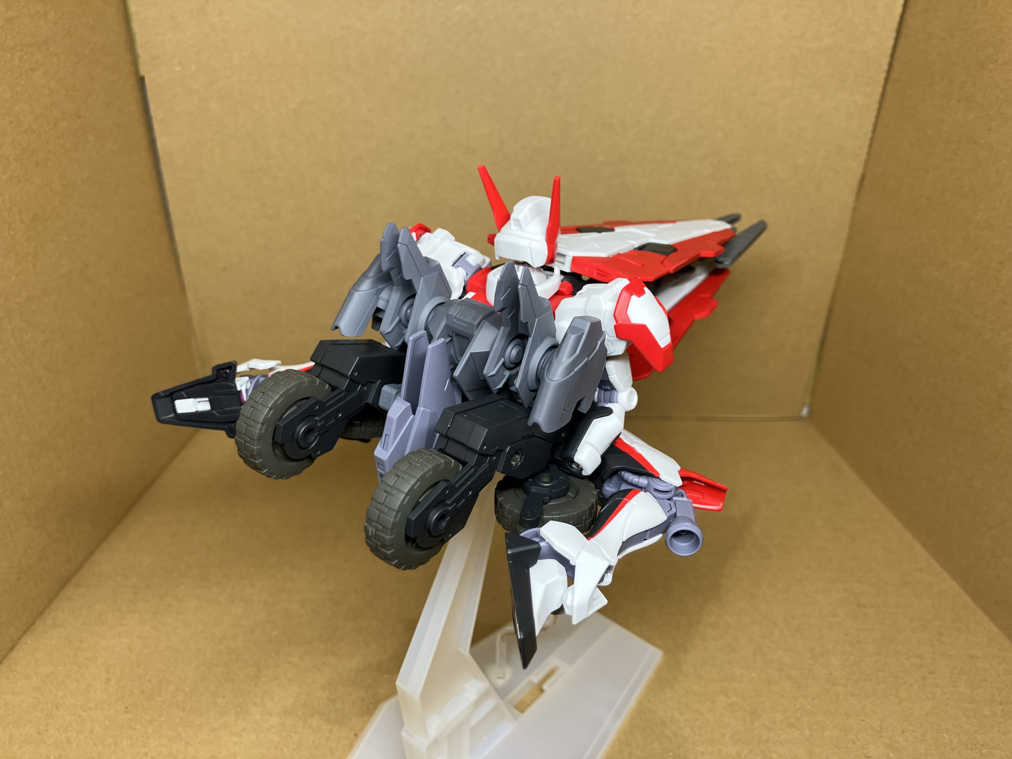 自作した変形用パーツを使いますが、高速飛行形態にも変形します。