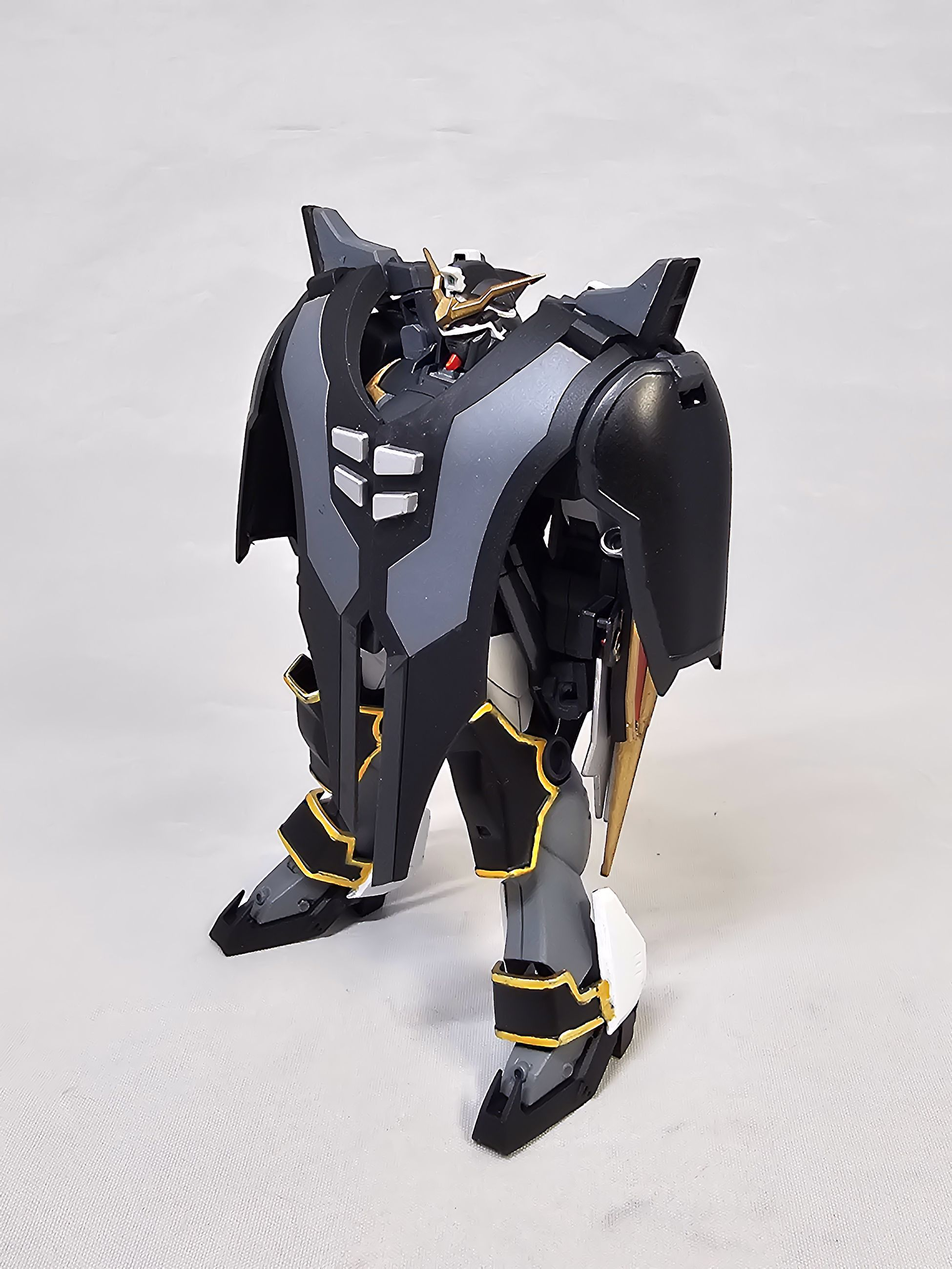 一方でアクティブクローク展開時はステルス関係なく高機動格闘機として敵を破壊するモードと解釈。アクティブクローク内側は敵を威圧するようにゴールド部を追加、さらにアクティブクローク前面をグレーにした裏パーツが肉抜きになっているパーツ構成を逆手にとって白をそのまま残す選択。