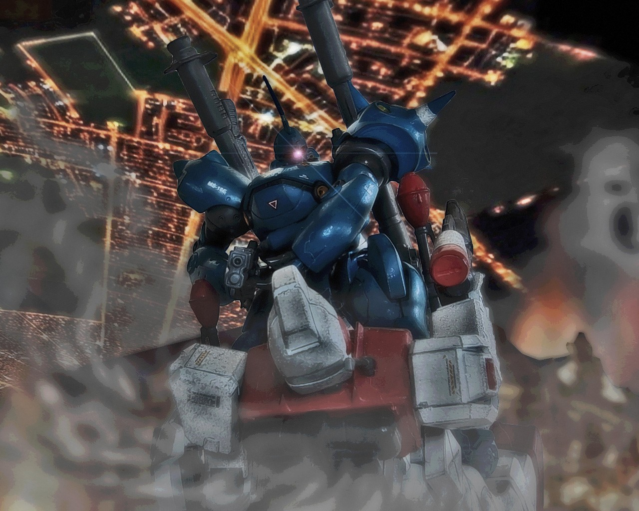 別の僚機から無線が入ると、夜の闇に紛れた蒼いMSが流星のように噴射剤の尾を引く。