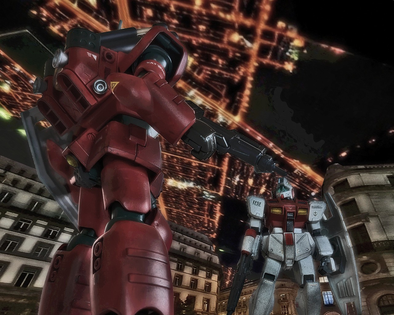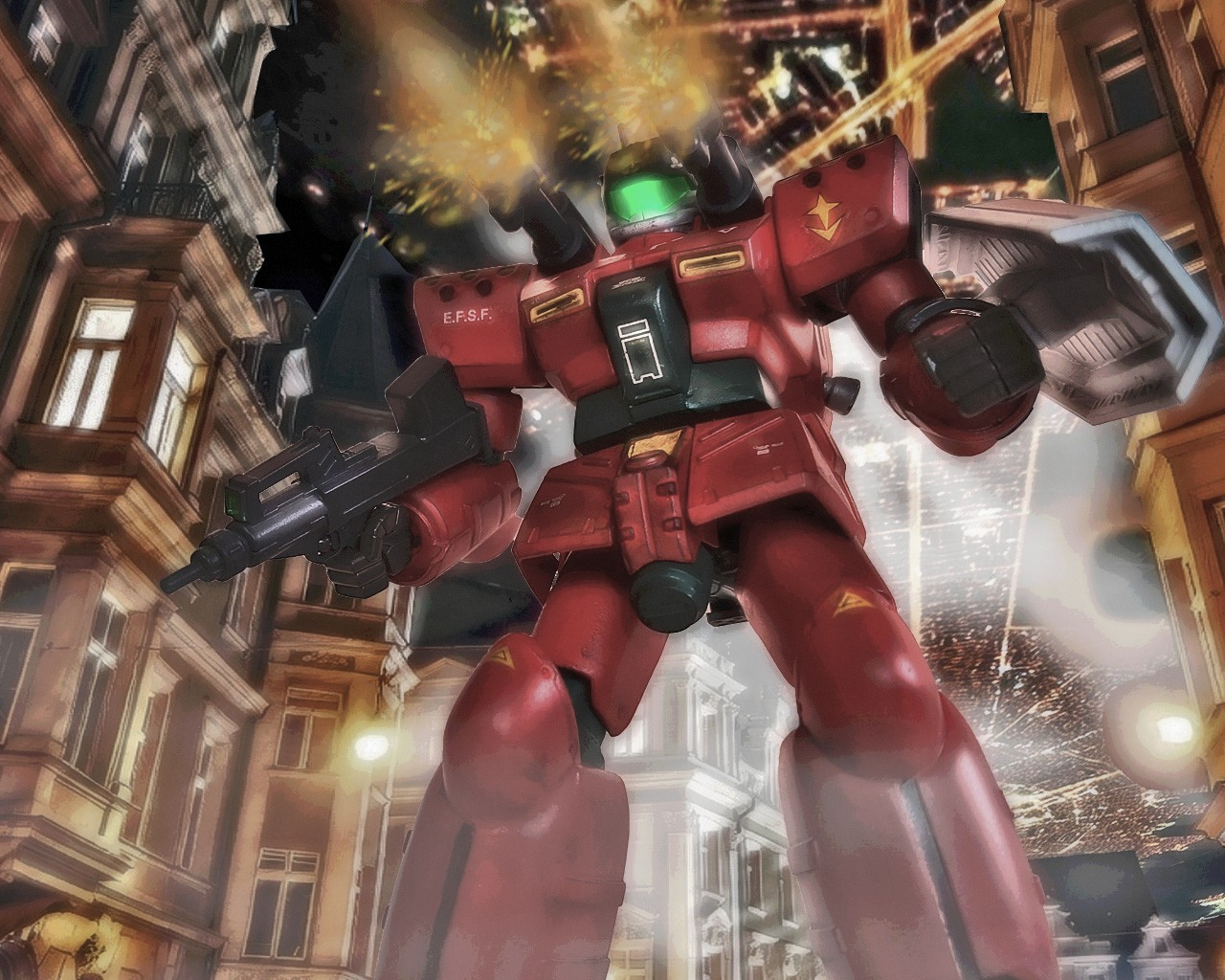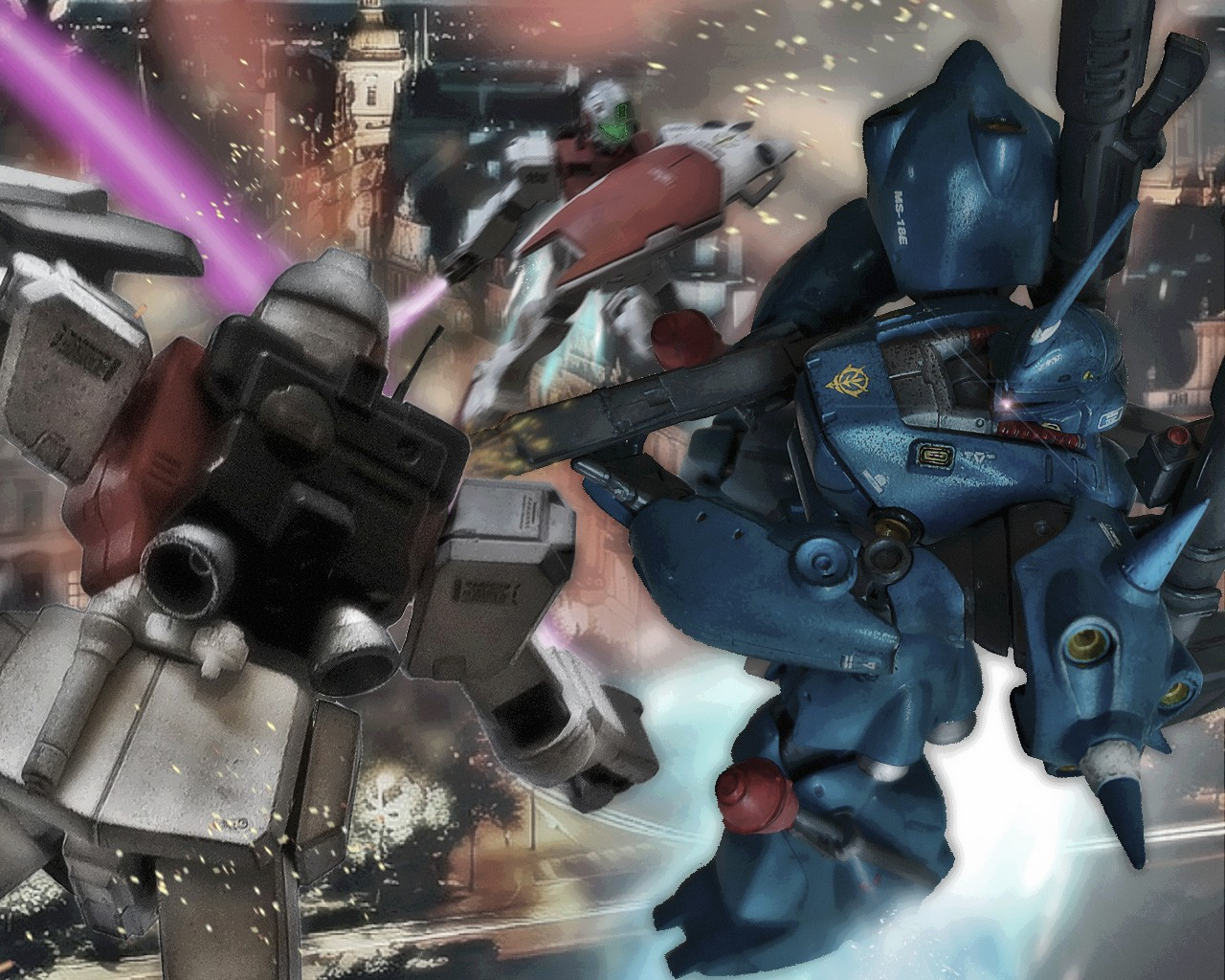 そして今回は作りかけの消化と製作リハビリを兼ねて作ったケンプファー&量産型ガンキャノンをメインに読み切りデジラマ物語で紅組に華を添えたいと思います!