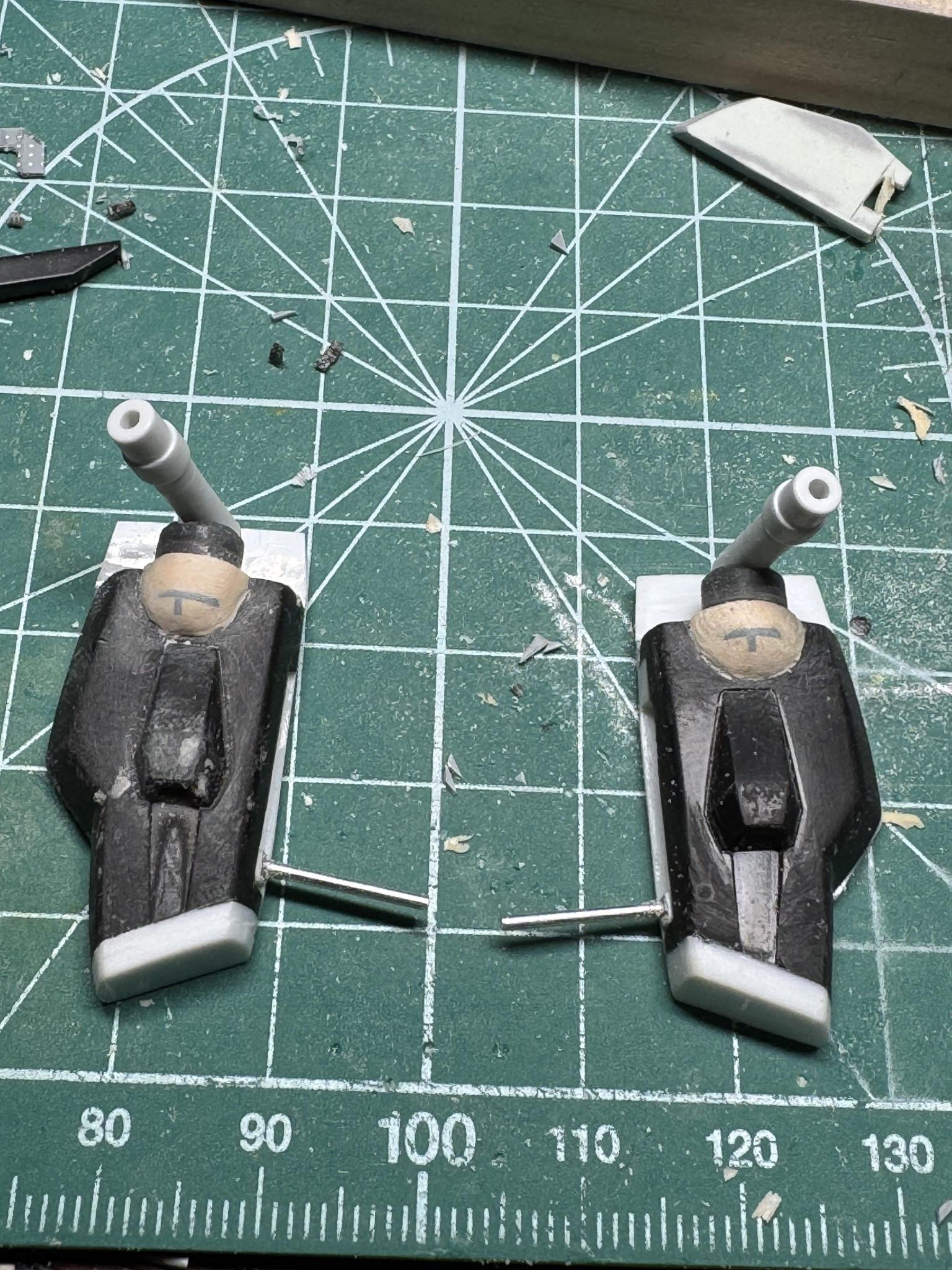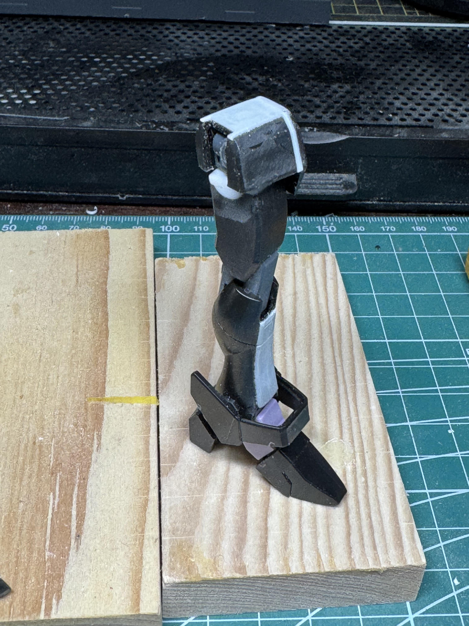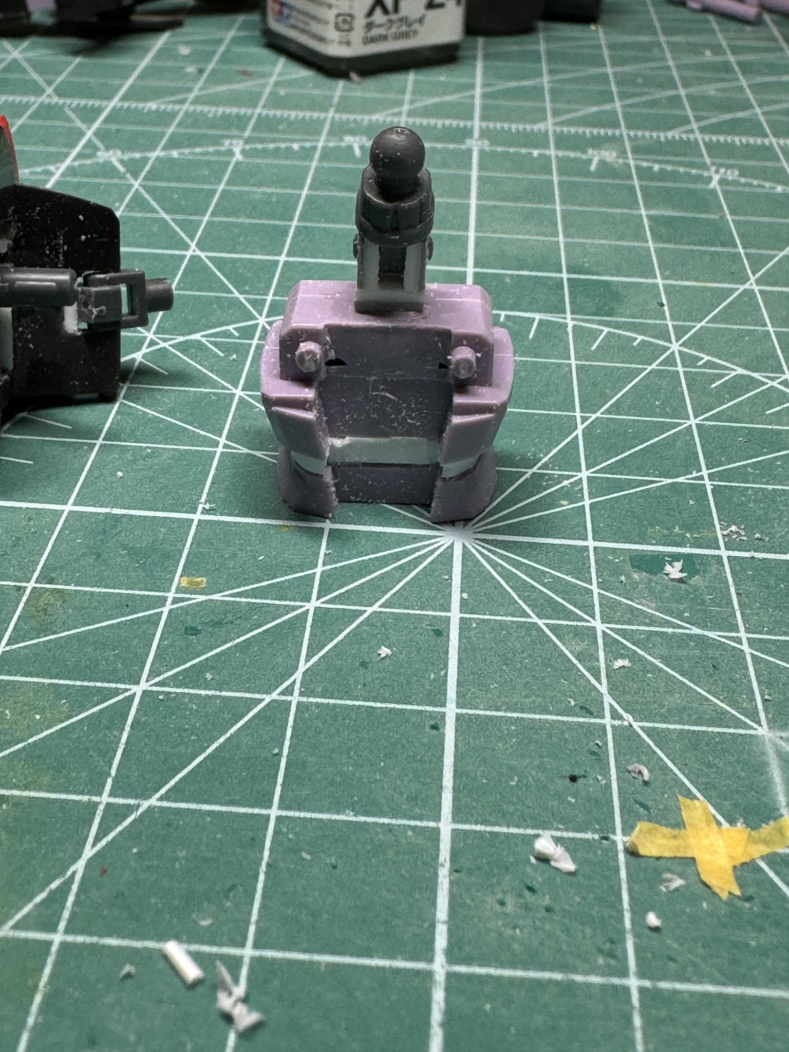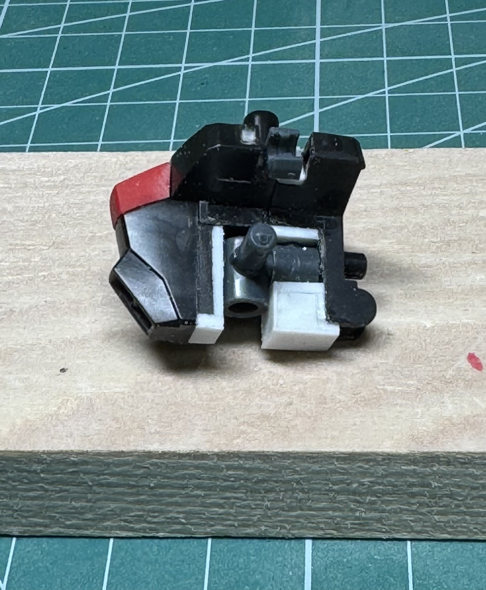 首パーツをプラ板で可動できるようにし、ついでに腹を2㎜ほど延長しました。