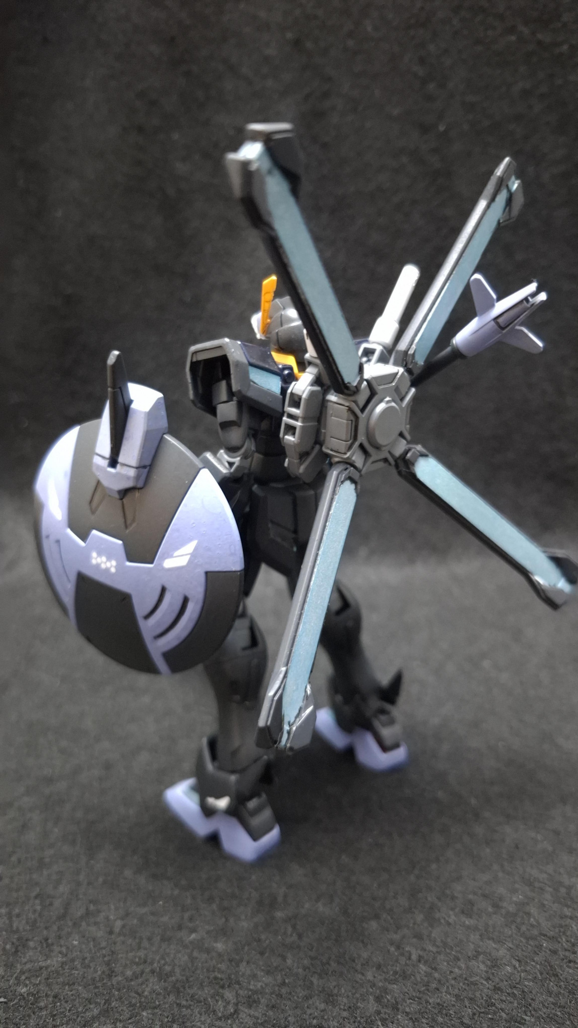 前述の通り基本的には頭部を入れ替えただけなのですが、追加武装としてインジャスティスウェポンズからライテイショットランサーとサークルシールドを持たせてみました。やはりX2には槍が似合う。魔王化でこっそりビームシールドも撤去されているので、実体盾を持たせるのも無理のない設定だったりします。リフレクターミラーユニットが受信したエネルギーはガンダムXの時点でサテライトキャノンのみならず推進力にも使える設定なので、それを利用したランスチャージをすればさぞかし威力が出るだろうと妄想してみたり。