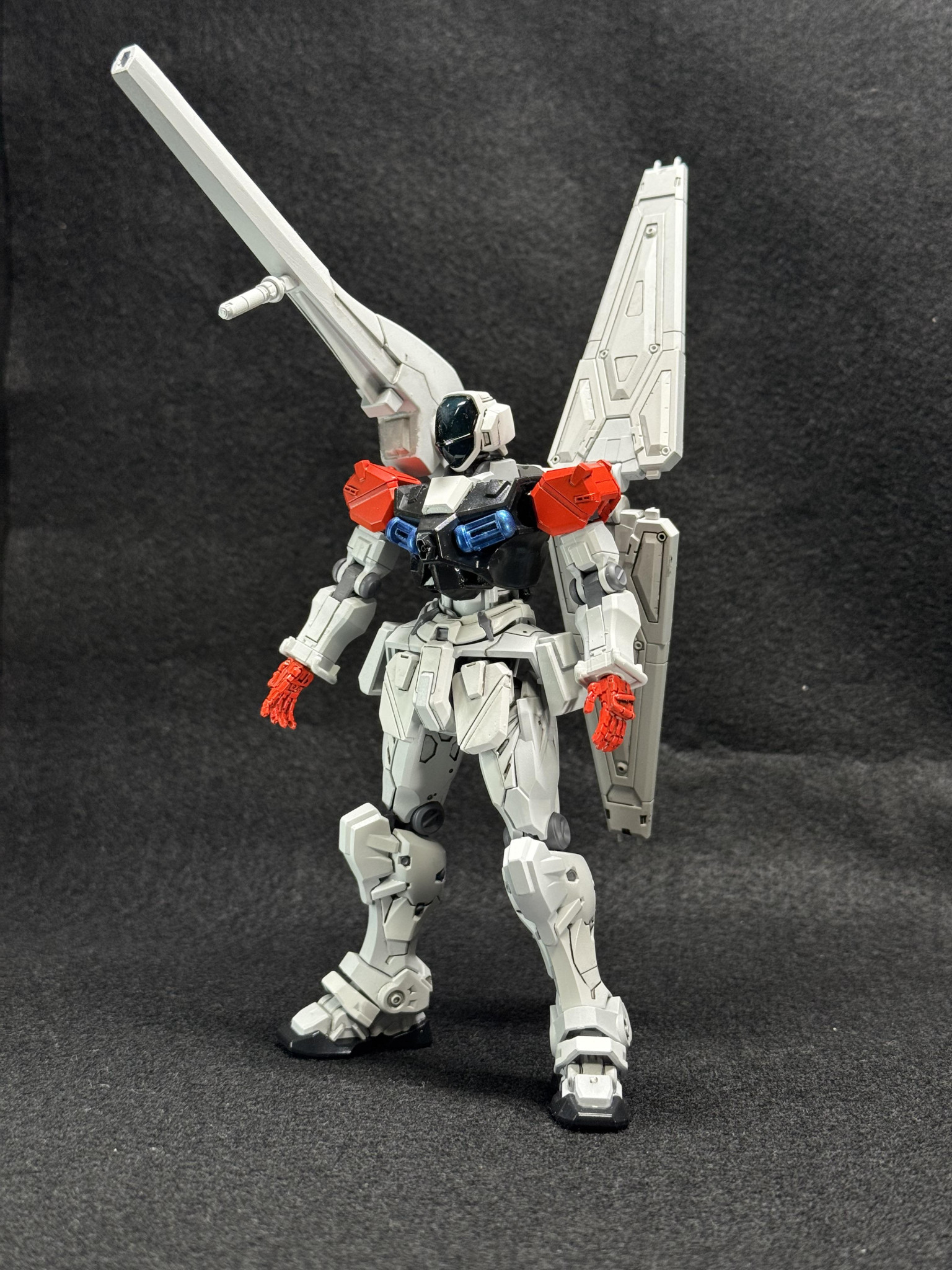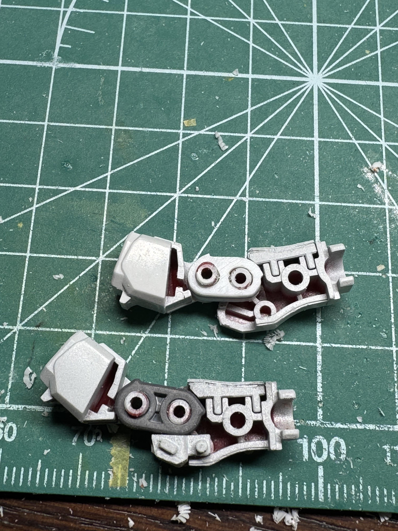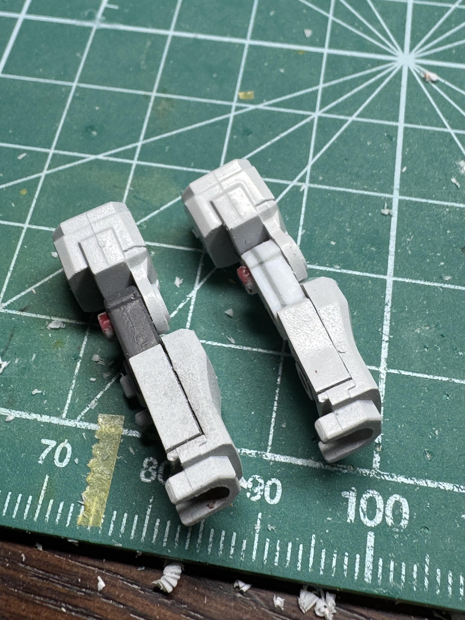 途中で片方の肘関節パーツをなくしてしまった為、急遽プラ板から自作しました。
