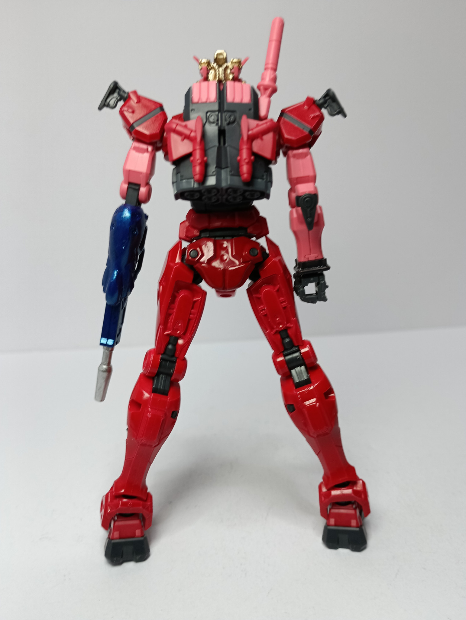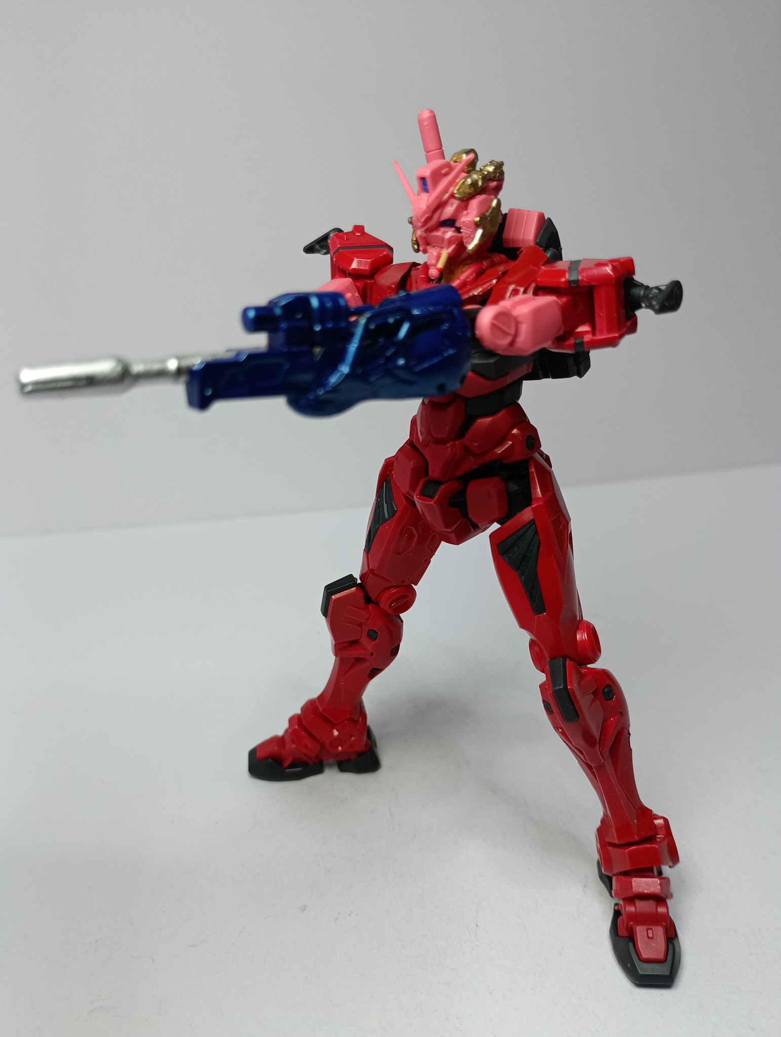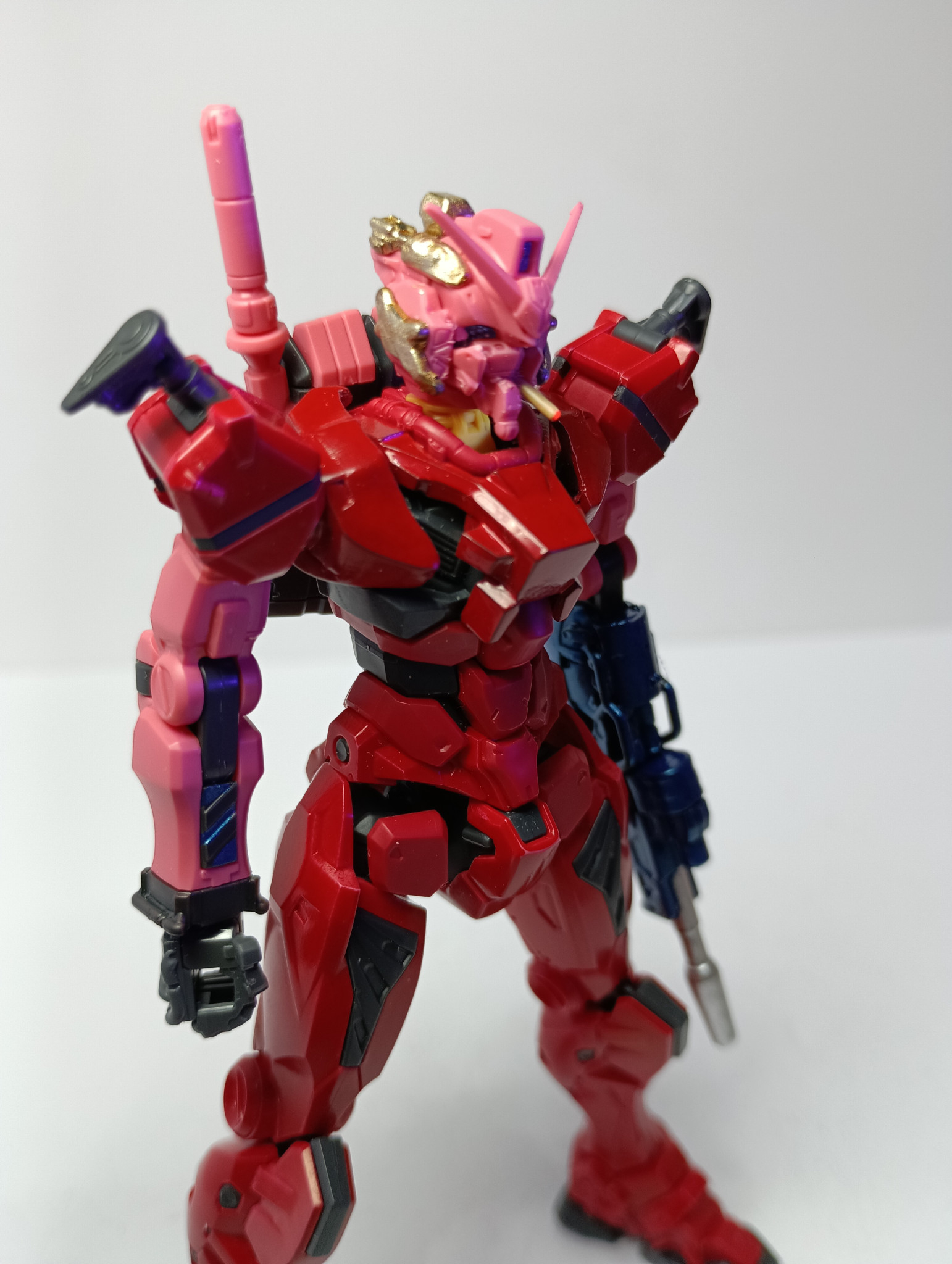 そもそも赤は個人的にそんなに好きでなく、赤い機体でも普段なら別の色にしているのですが、赤いガンダムをどう改造しようかと思った際にふと「赤いままのほうが格好いいもの」ということを考え、思いついたのはカウンタックとCOBRAだったので、COBRAを選択。