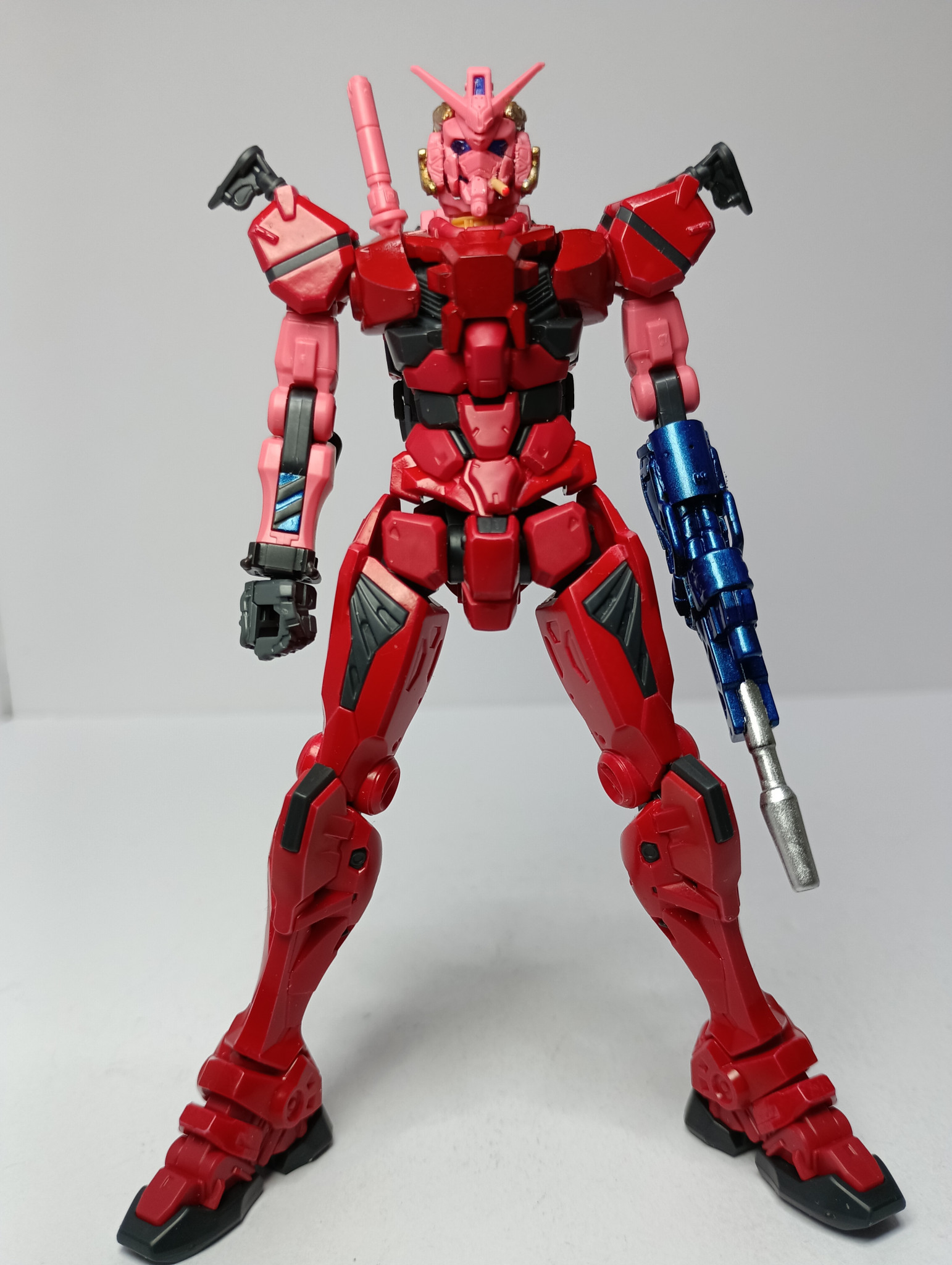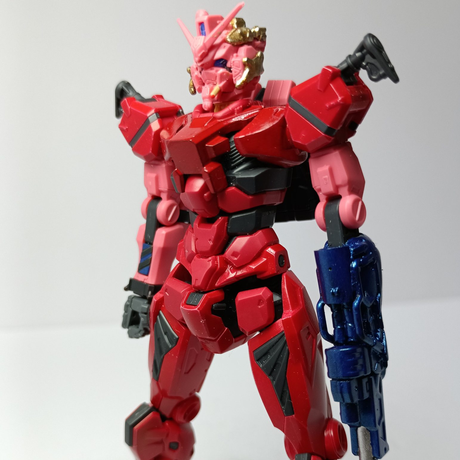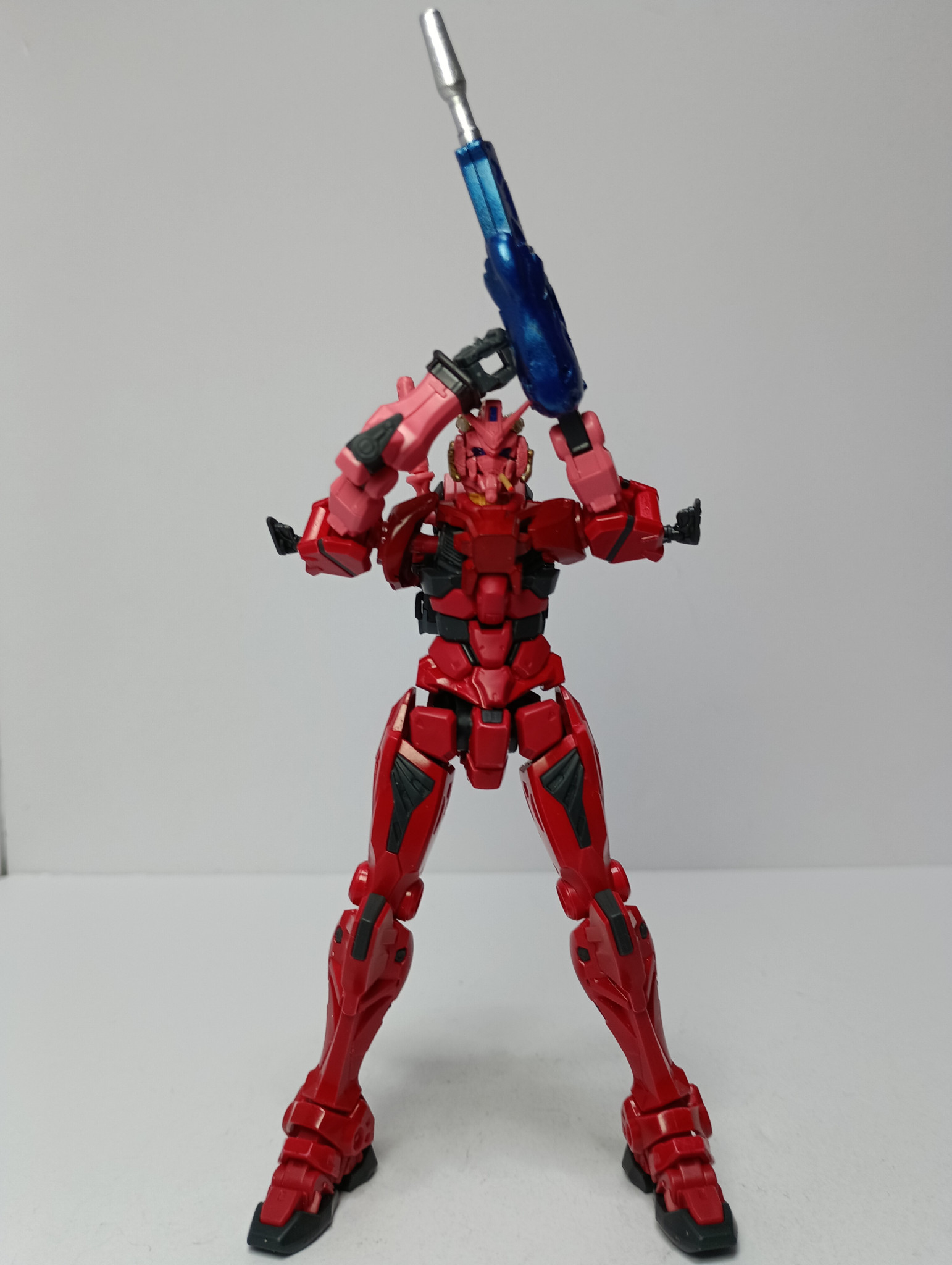 そもそも赤は個人的にそんなに好きでなく、赤い機体でも普段なら別の色にしているのですが、赤いガンダムをどう改造しようかと思った際にふと「赤いままのほうが格好いいもの」ということを考え、思いついたのはカウンタックとCOBRAだったので、COBRAを選択。