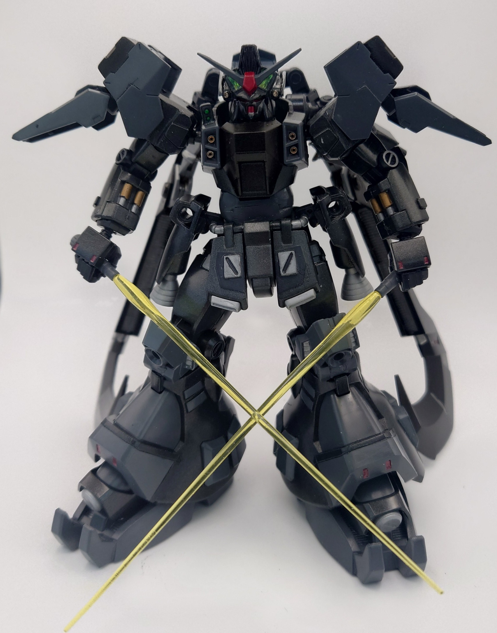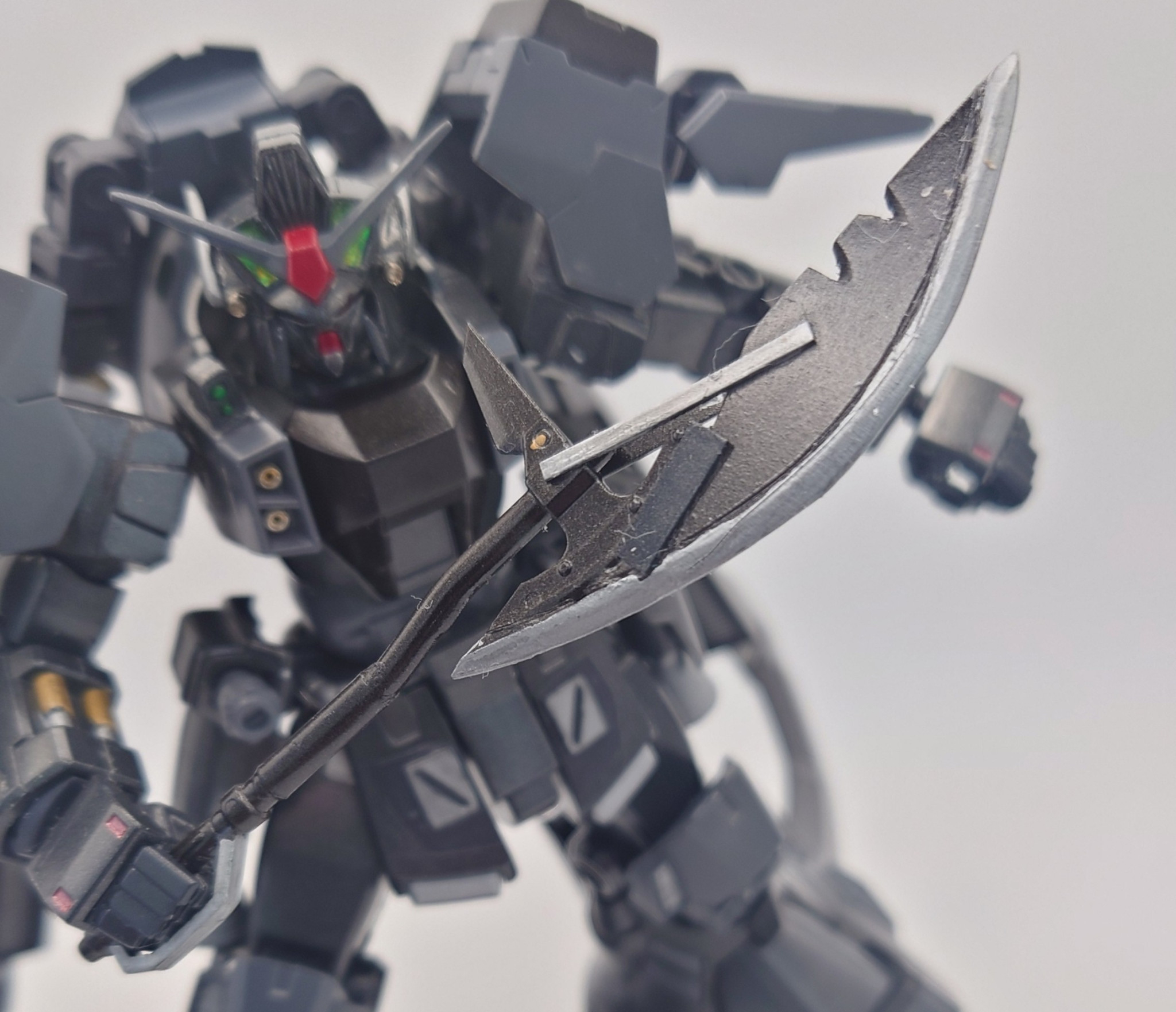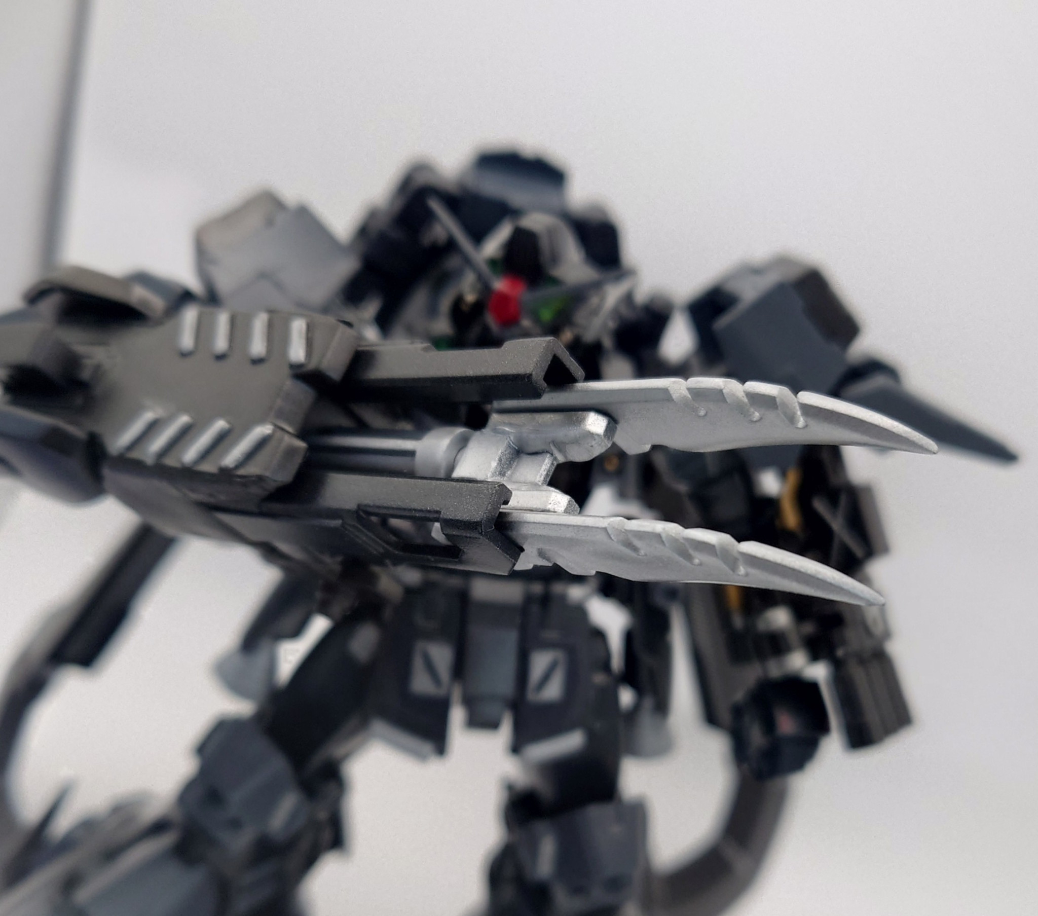 飛行時の姿勢制御だけでなく、鋭利な実体剣として対象を攻撃可能。ブースターで加速しつつ、振られる一撃はMSを容易く両断する。