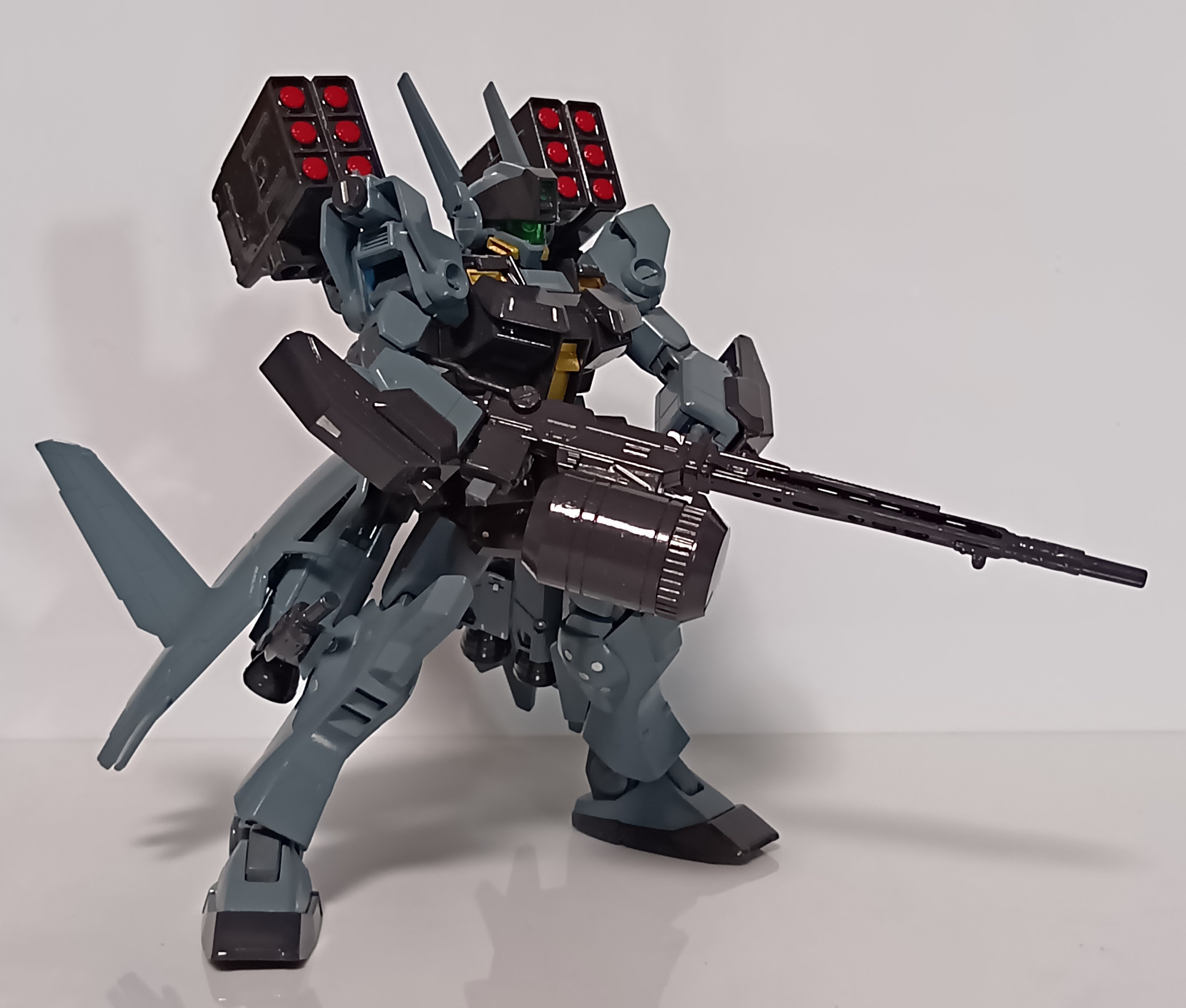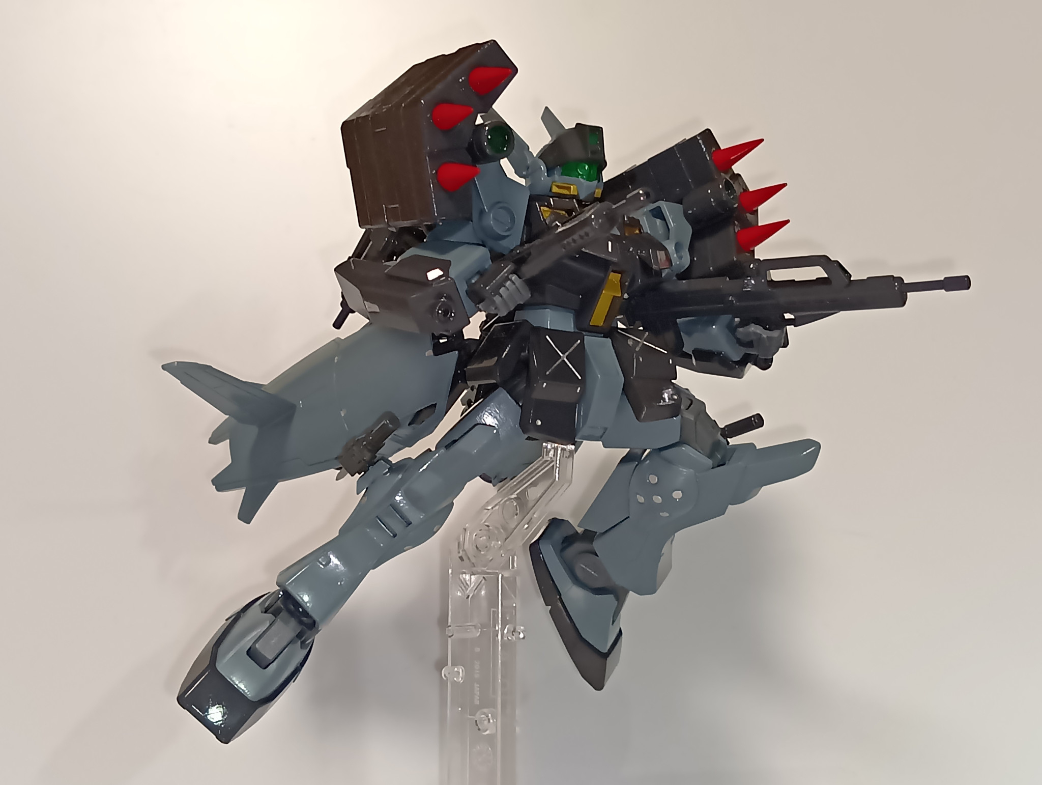 ジムライフルとシールド、バックパックに稼働式ウェポンラックを装備し、ラックには90mmマシンガンを搭載した形態。