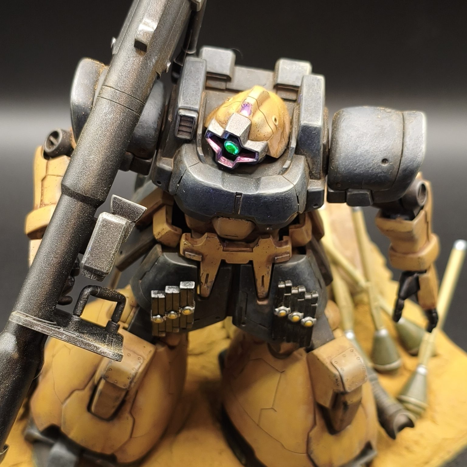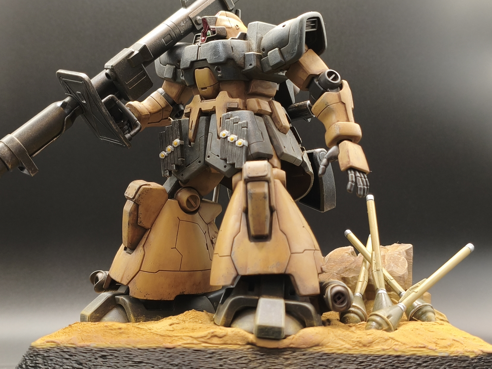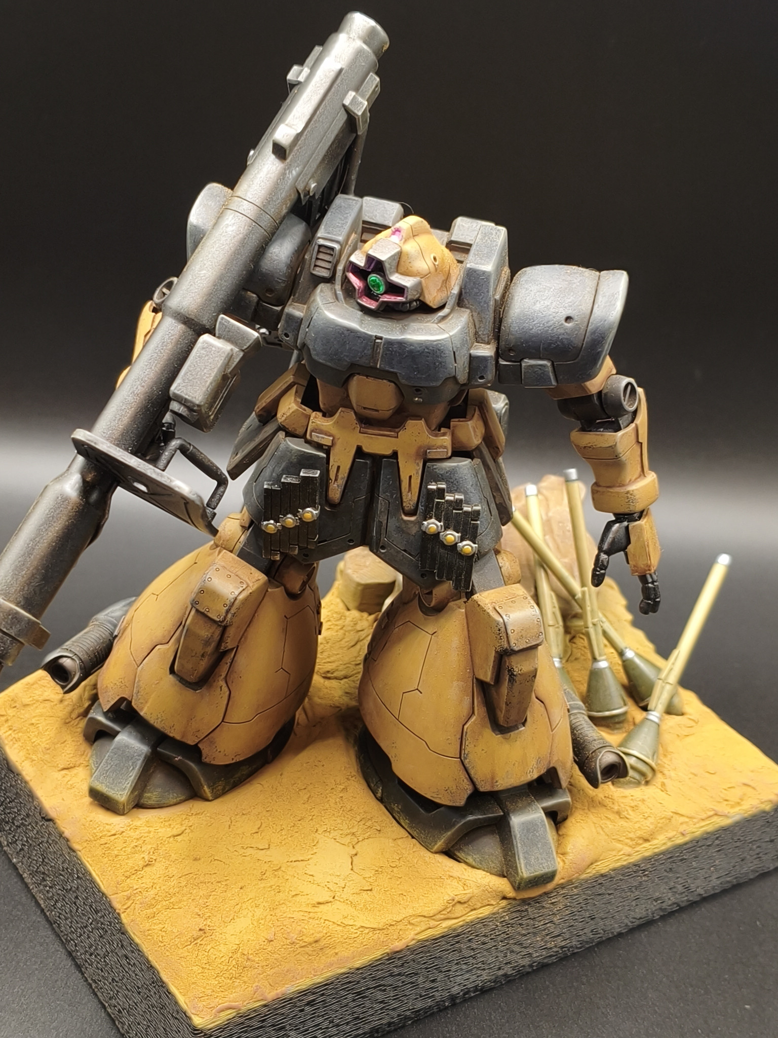 HG MS-09F ドムトローペン(サンドカラー)をヴィネット風ジオラマで製作しました。