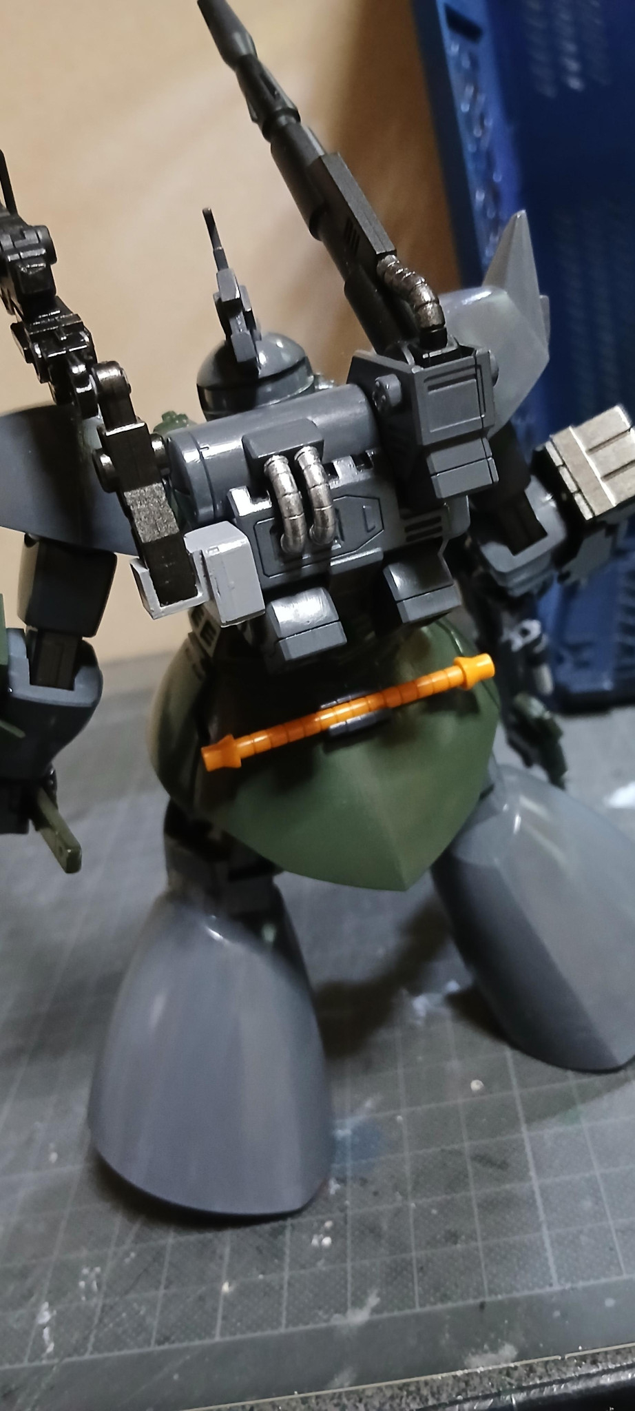 バックですが、ふくらはぎの合わせ目消し以外はいじってません😒しかしゲルググキャノンのバックパックって、武骨でカッコいいですよね✴️私もいつか武骨な「漢」になってみたい……。