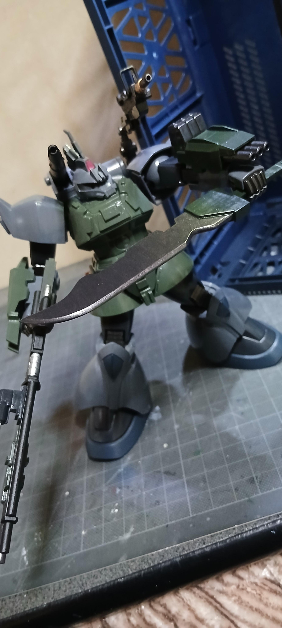ショルダーマシンガン追加とバックラーを爪付きに、あとちょこっとお遊びで大型ナイフを作ってみました✨「対MS用ナイフ」ってな感じです😜