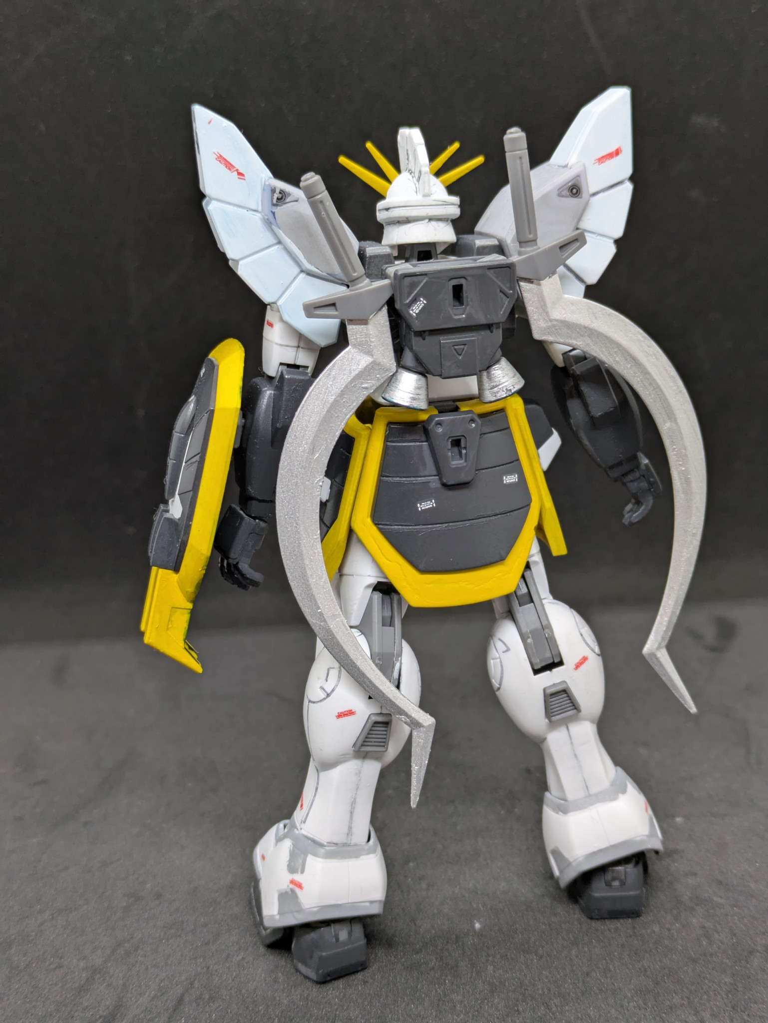 今回作成していても、やっぱりデスサイズ、かっこいいなーと思いましたもん。劇中だとデスサイズヘルに進化し、背部にアクティブコートが配備され、マントのように展開するため非常にカッコイイのですが、プレバン限定発売のようです。なんでー?