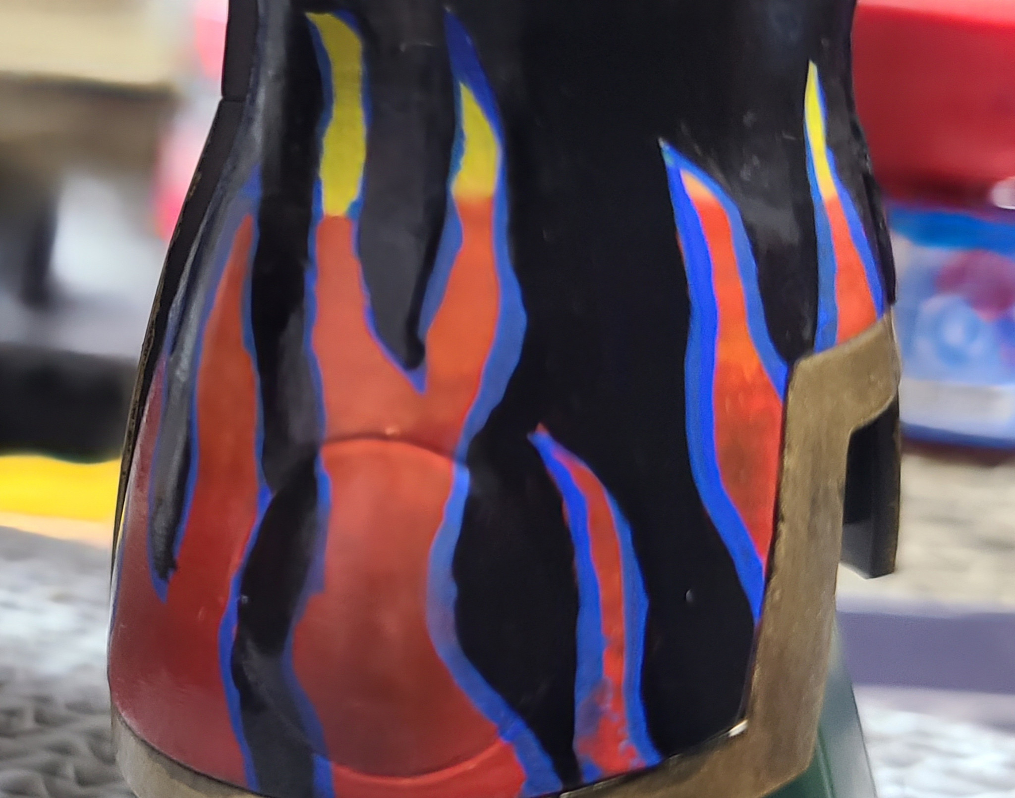 青の縁どりは最初ファイヤーパターンを始めた時はやってなかったんですがカーモデル系の模型を見た時にティンっときまして最近取り入れてます!もっとその縁取りを綺麗に塗れたら良いんですけどね…