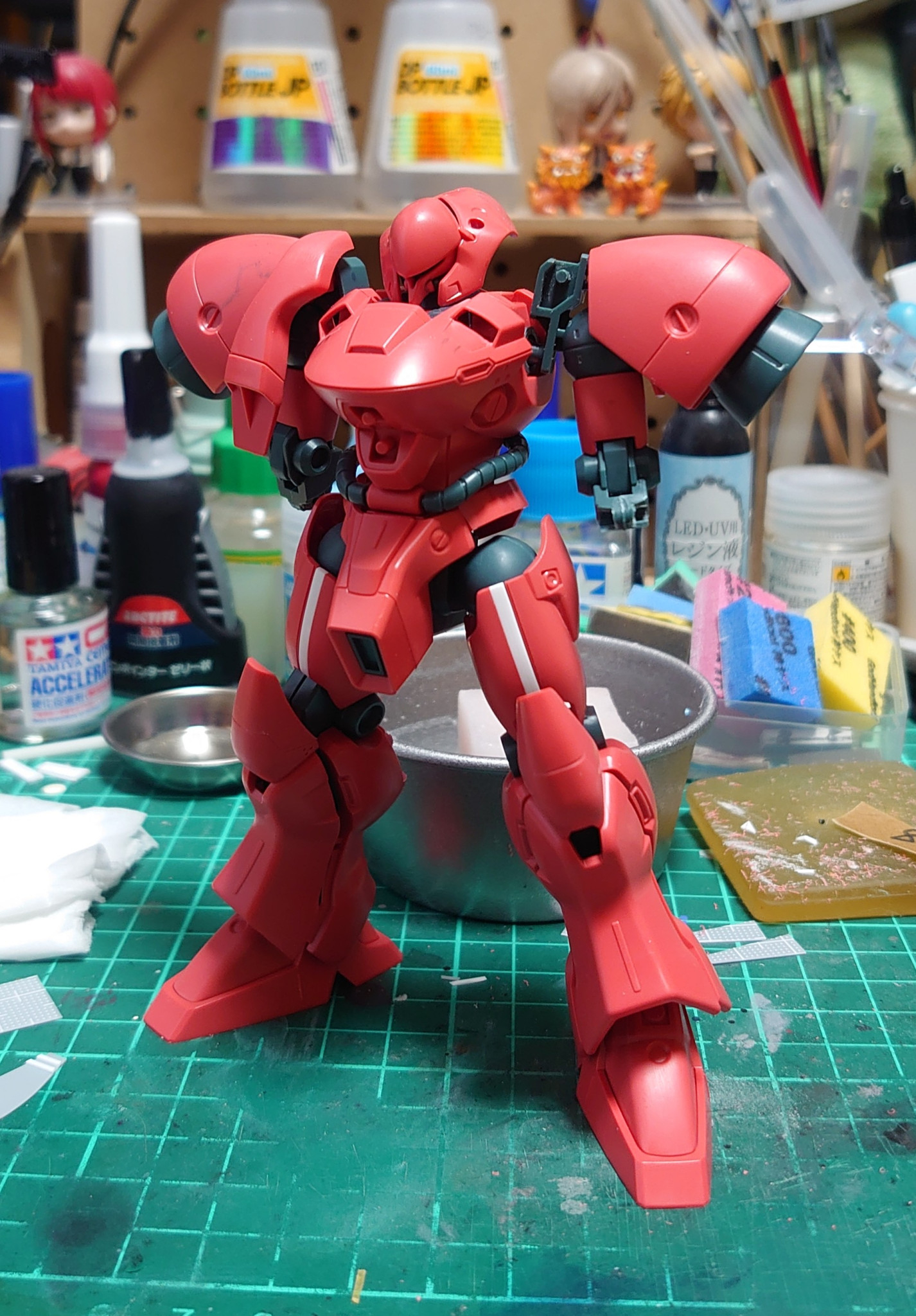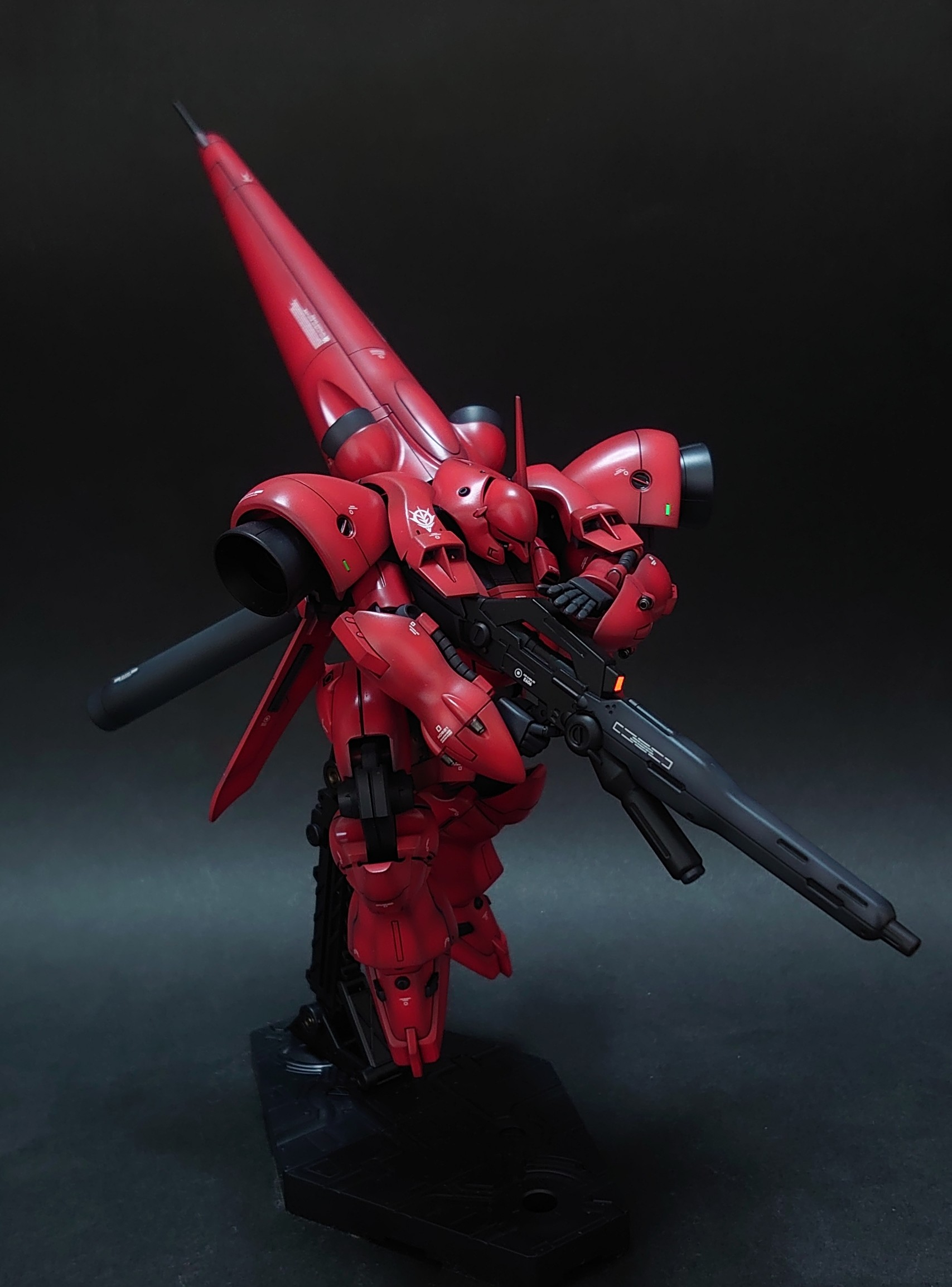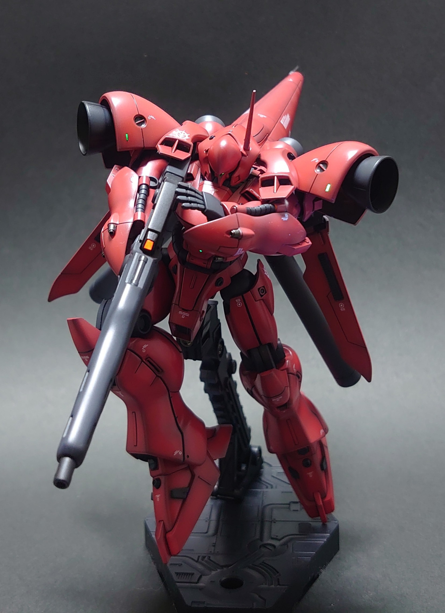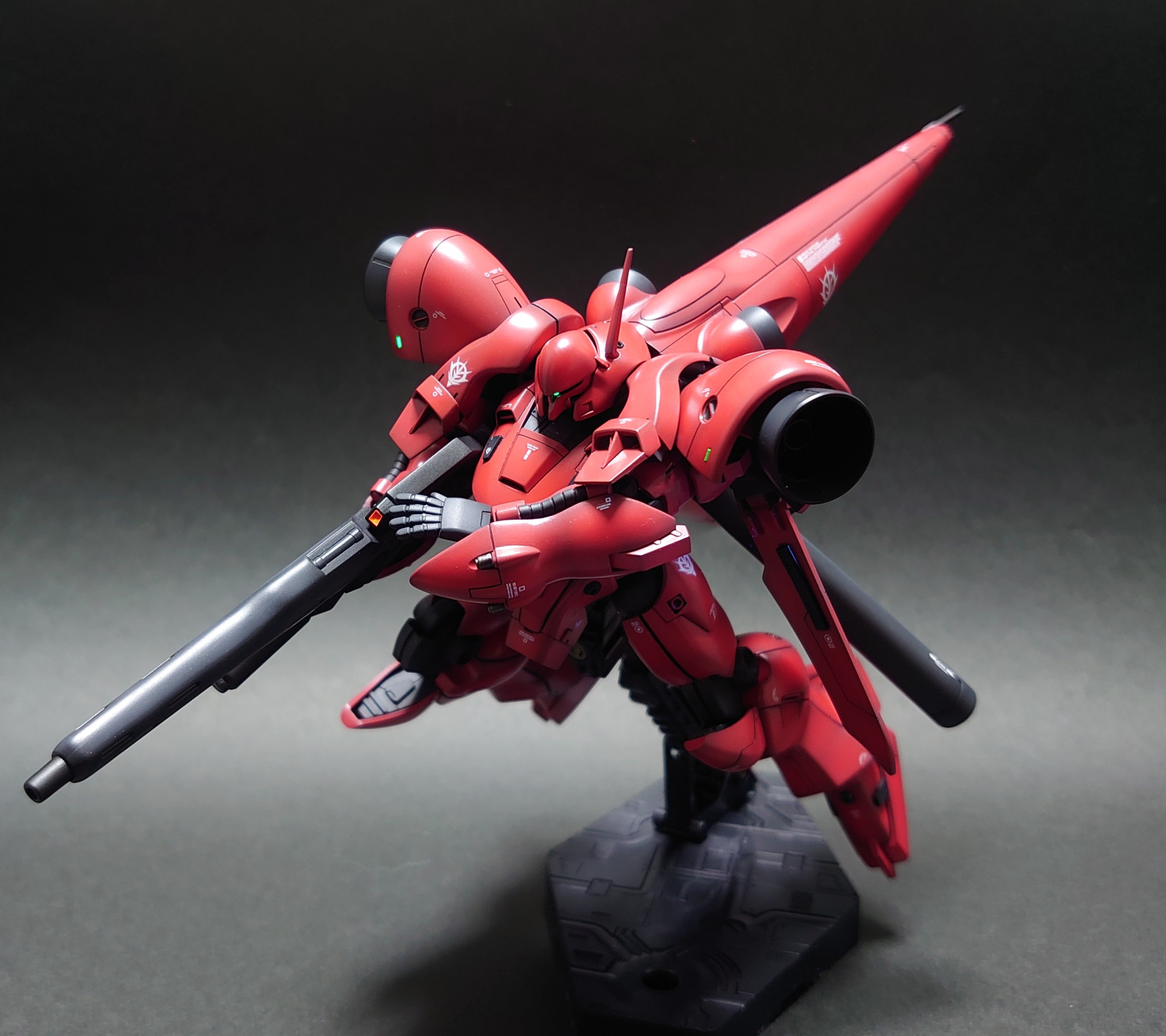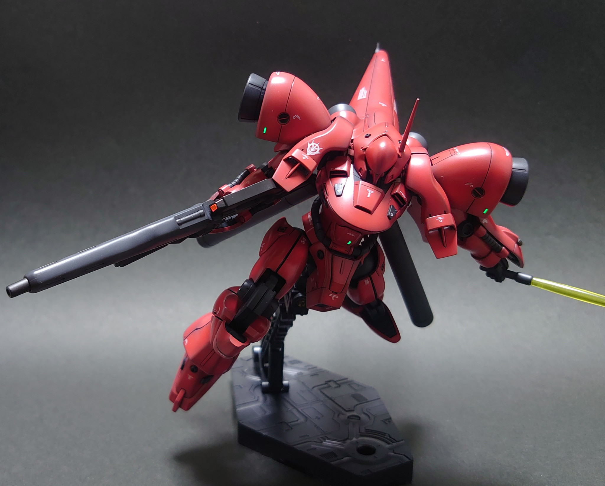 ジオン系はおおいにあるあるですが、目の部分を細めにする事で、ちょっと間の抜けた感じから、キリッと凛々しくするだけで引き締まったと思います。