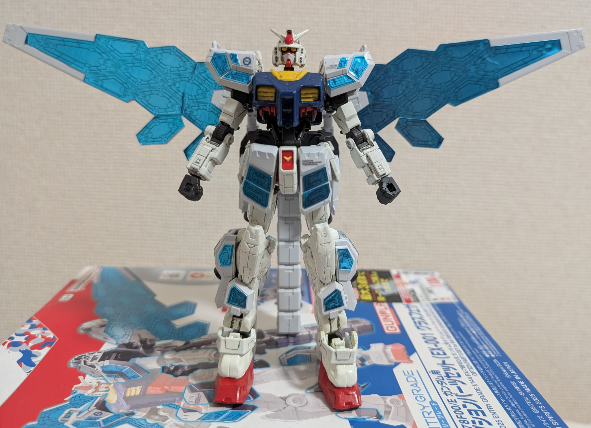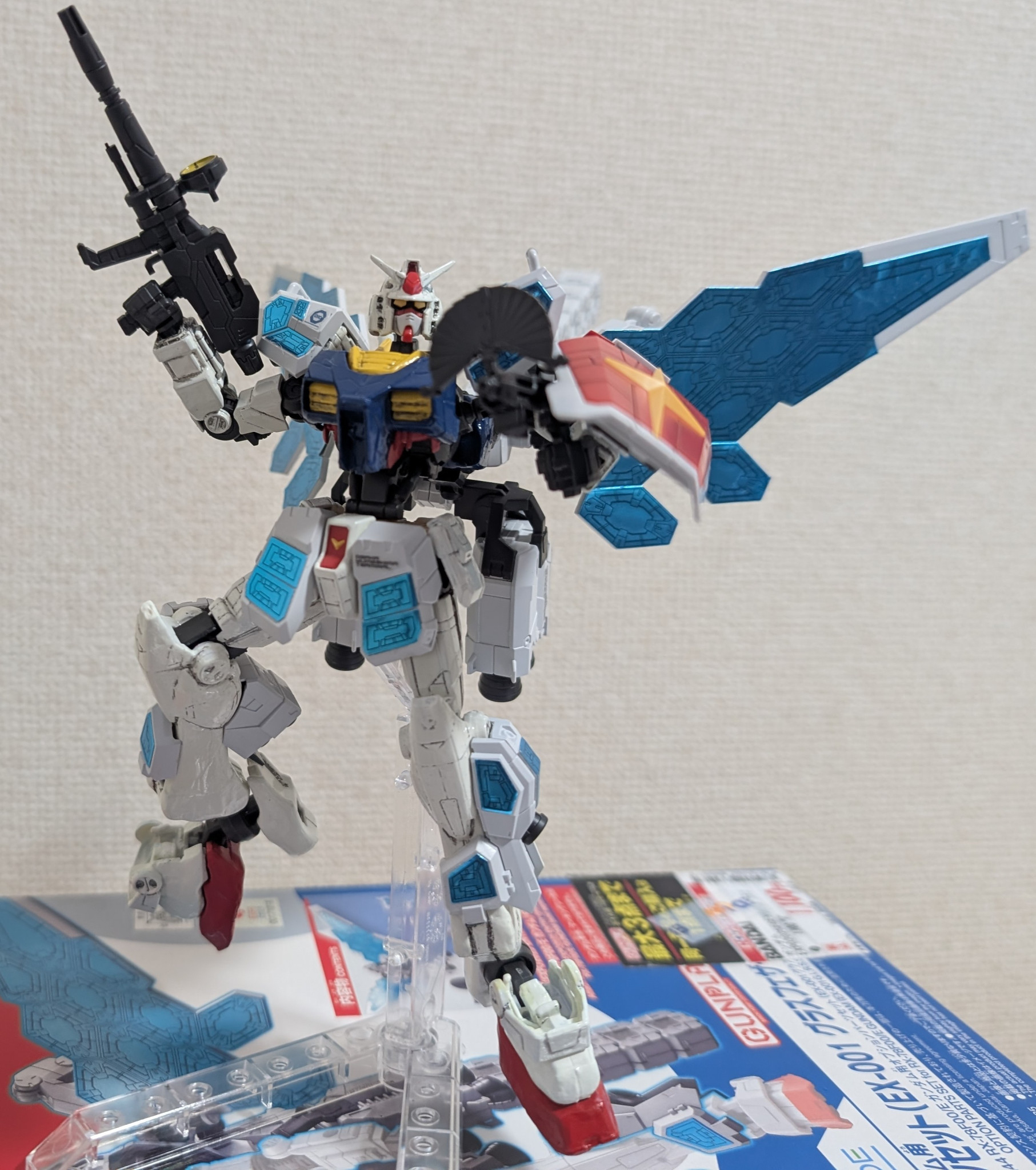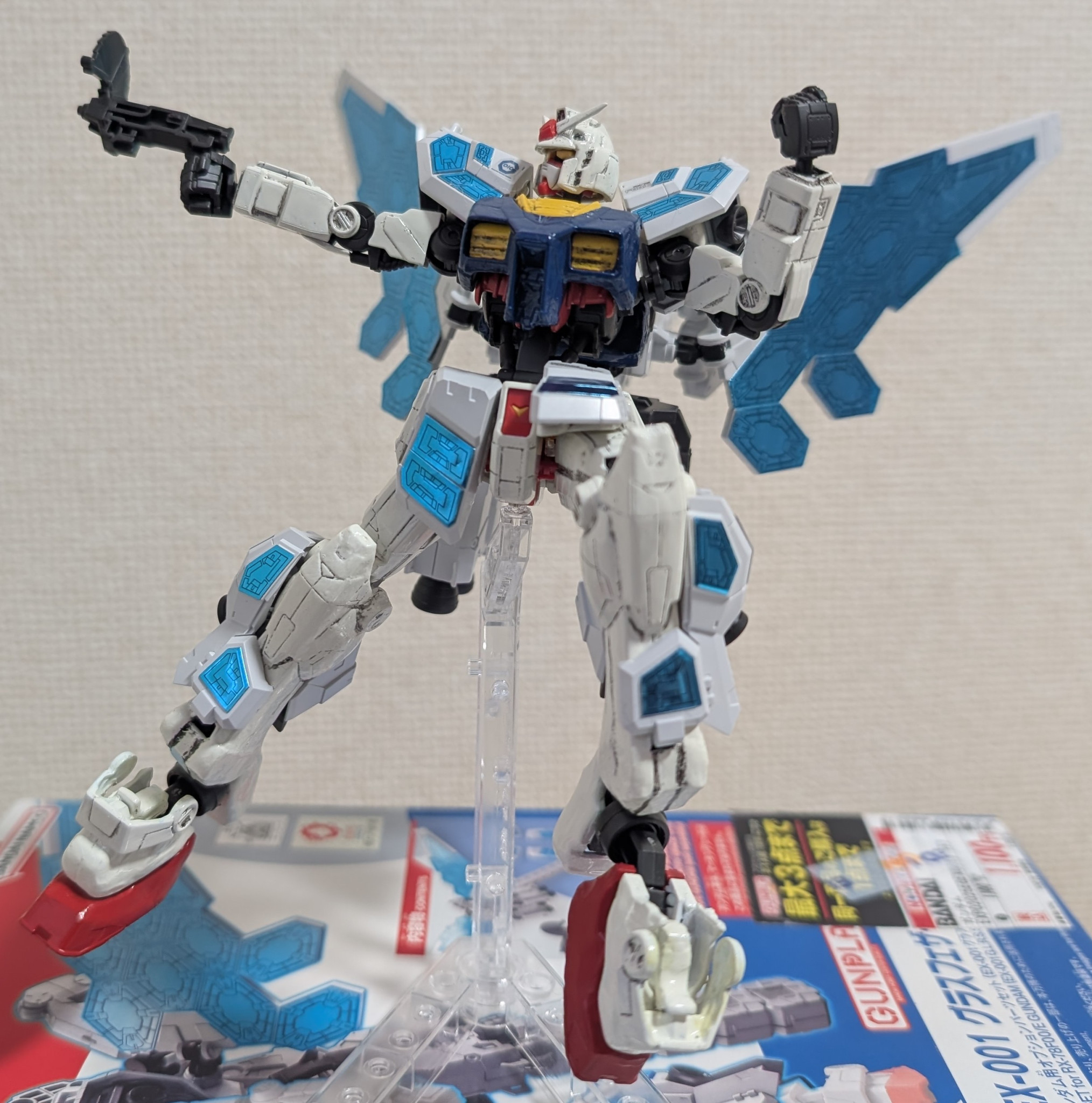 設定としては、「ガンダムフレームの試作機」という立ち位置で、型式が「00」なのもそのためです。その時期はモビルスーツもモビルアーマーも、ナノラミネート塗装されていなかったため、ビーム兵器も使われていたことにして説得力を持たせてます。
