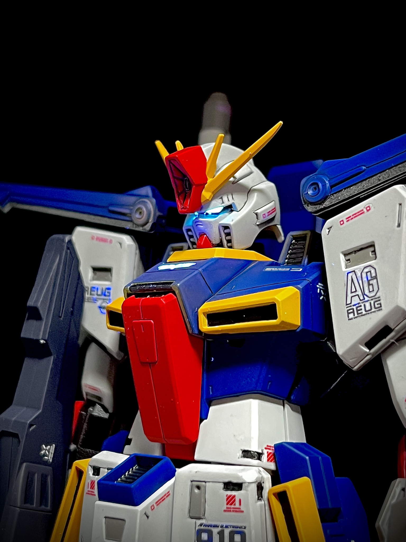 純正顔をなんとかしたくてなんとしたくてずっと積んでたんですが、正月連休てことで気合い入れて初めてここまでやってみました🤔MGカトキや皆さんの作品を参考にしながらRGに負けないくらいに全部乗せにしました✨