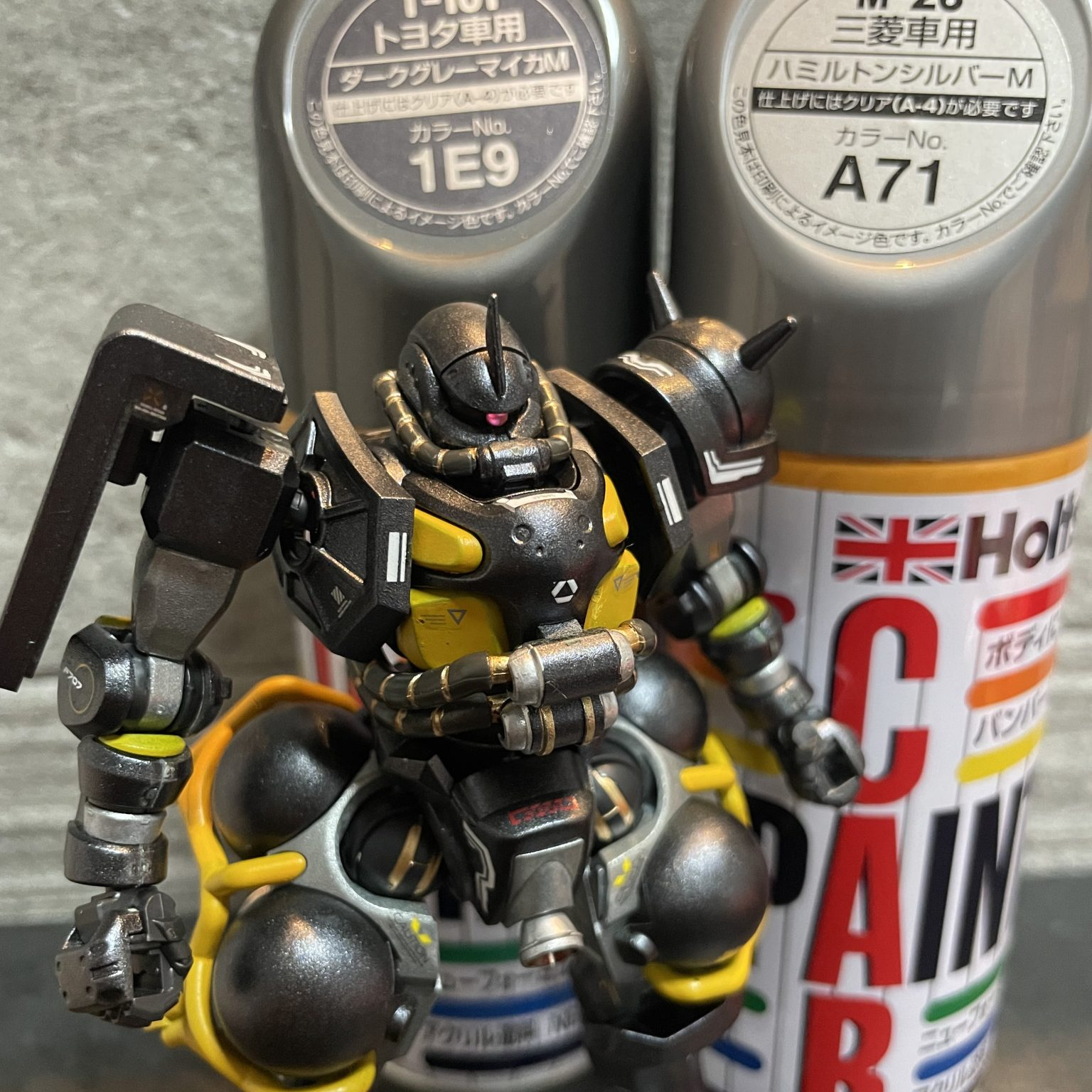 本当はグレーはキャップの色くらいの薄さが良かったんですけど、塗装時のムラで何回も吹いて色が濃くなっちゃいましたね。シルバーは3回位で丁度良かったです。