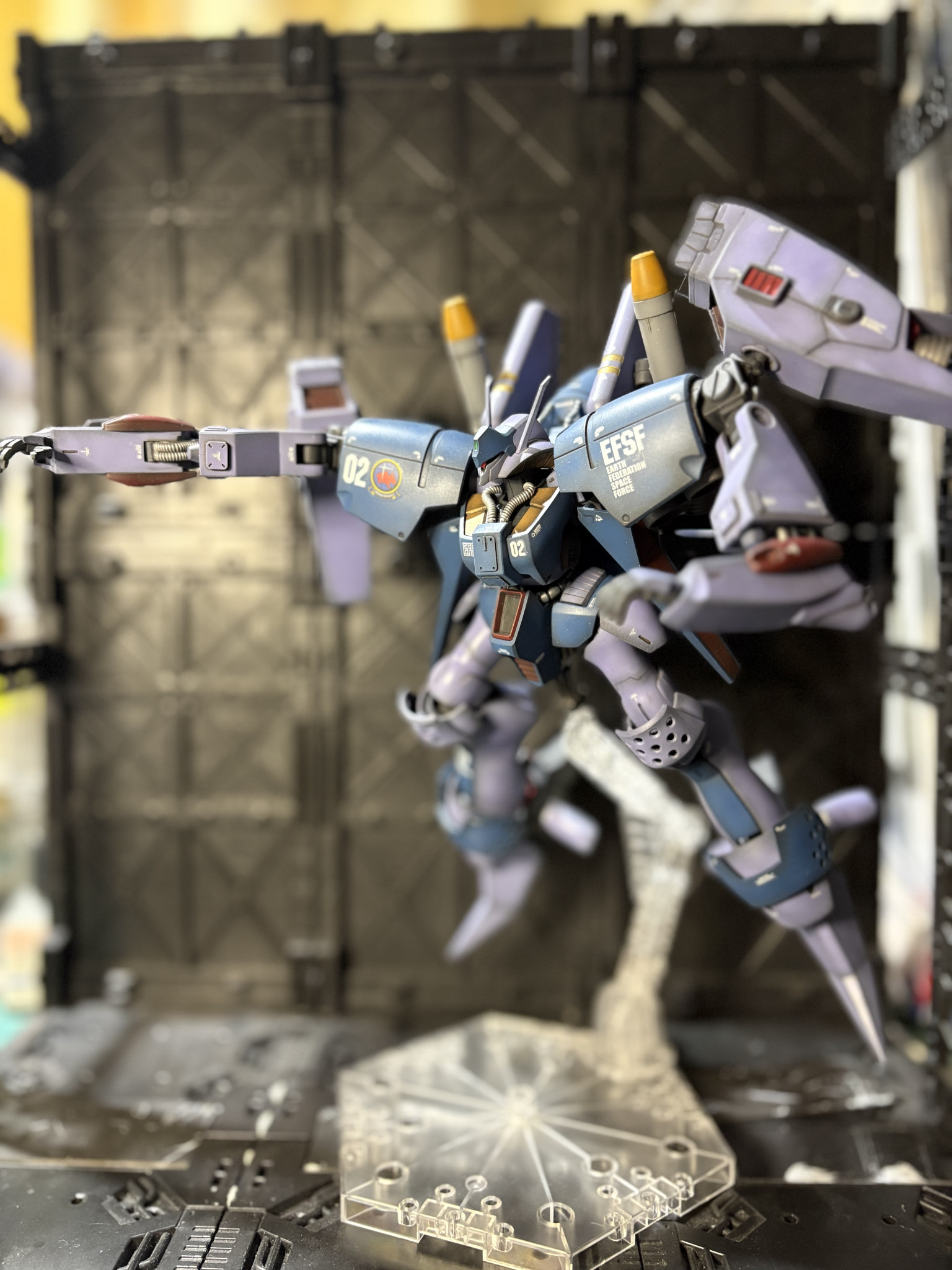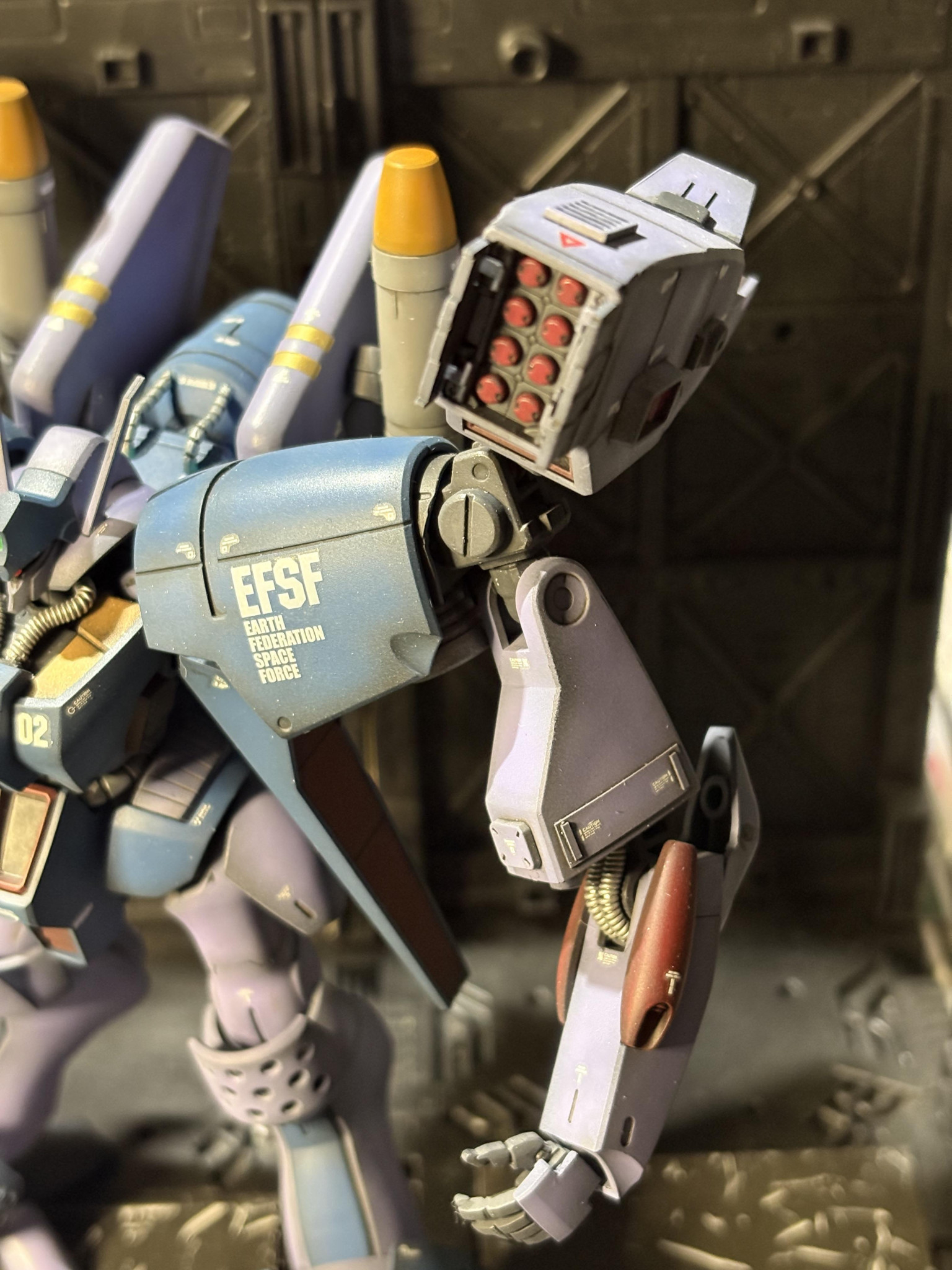設定として、トリントン基地所属の機体。成層圏での運用をするため、試験的に脚部の変更、背中に追加ブースターとプロペラントタンク、スラスターの補強、肩のスラスターにミサイルポッド追加、マニュピレーターの変更を行っている。